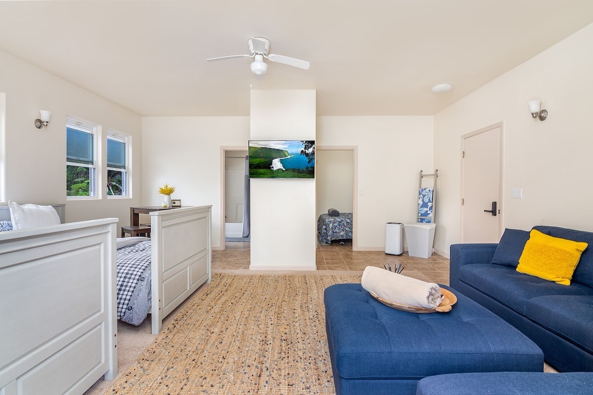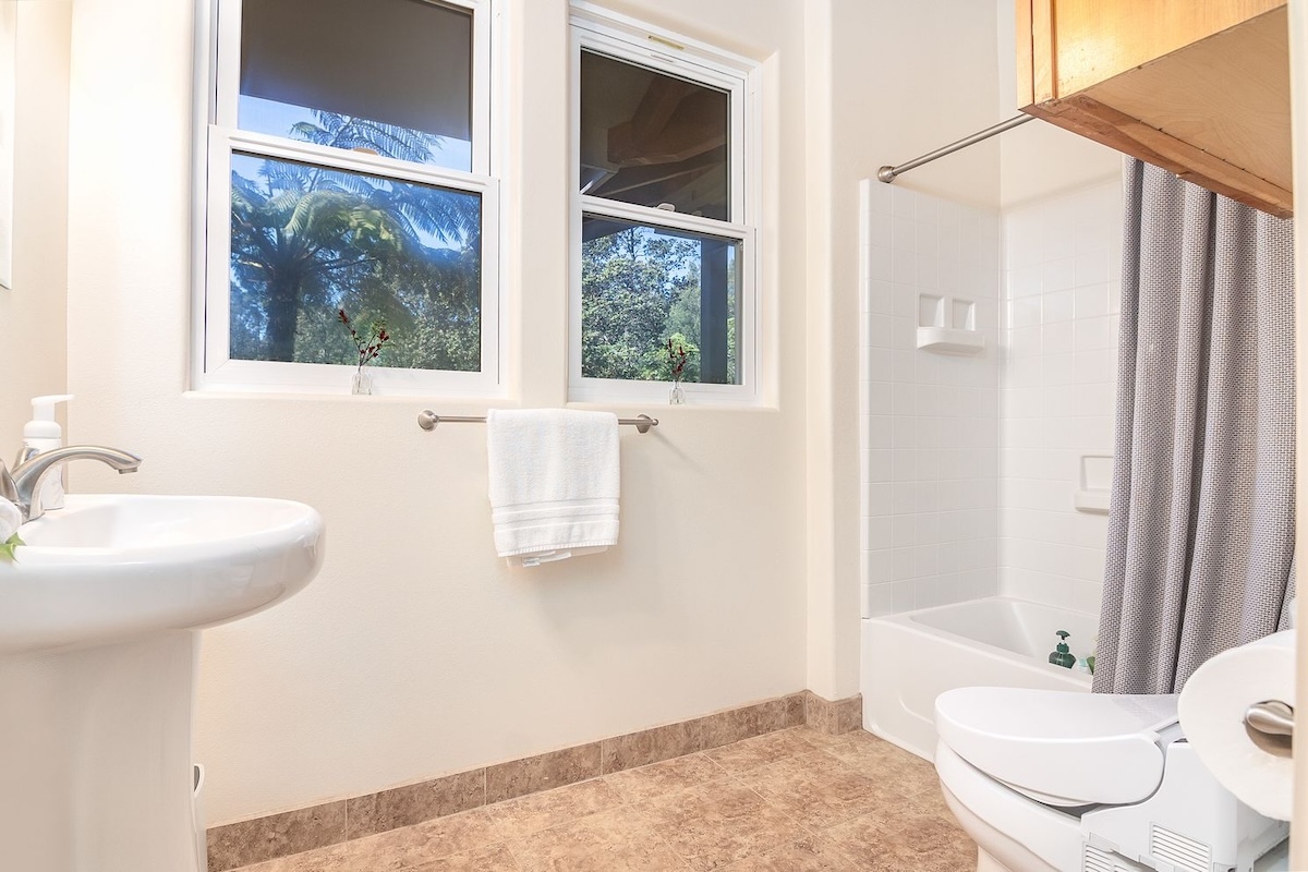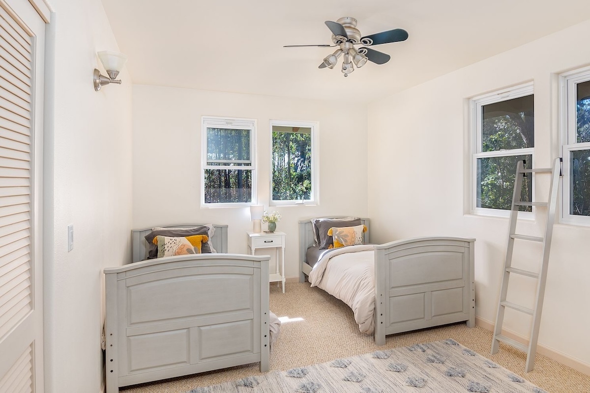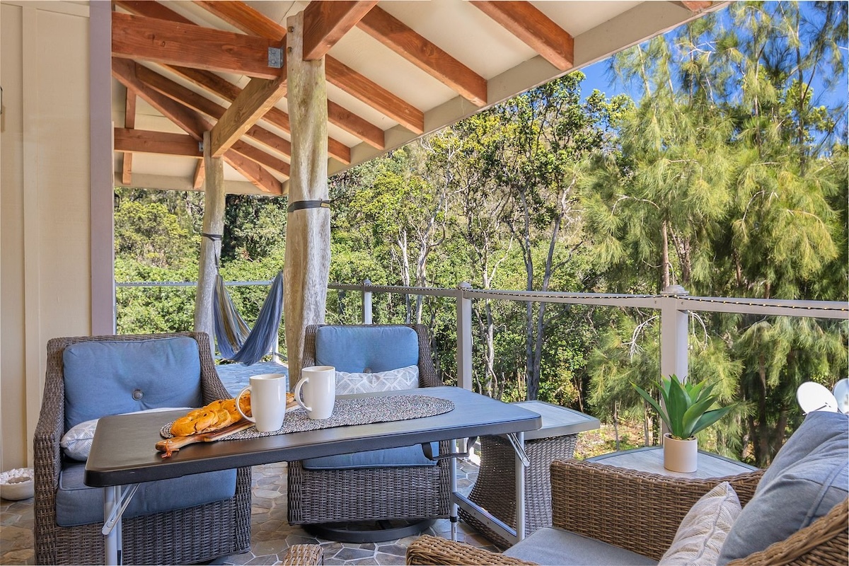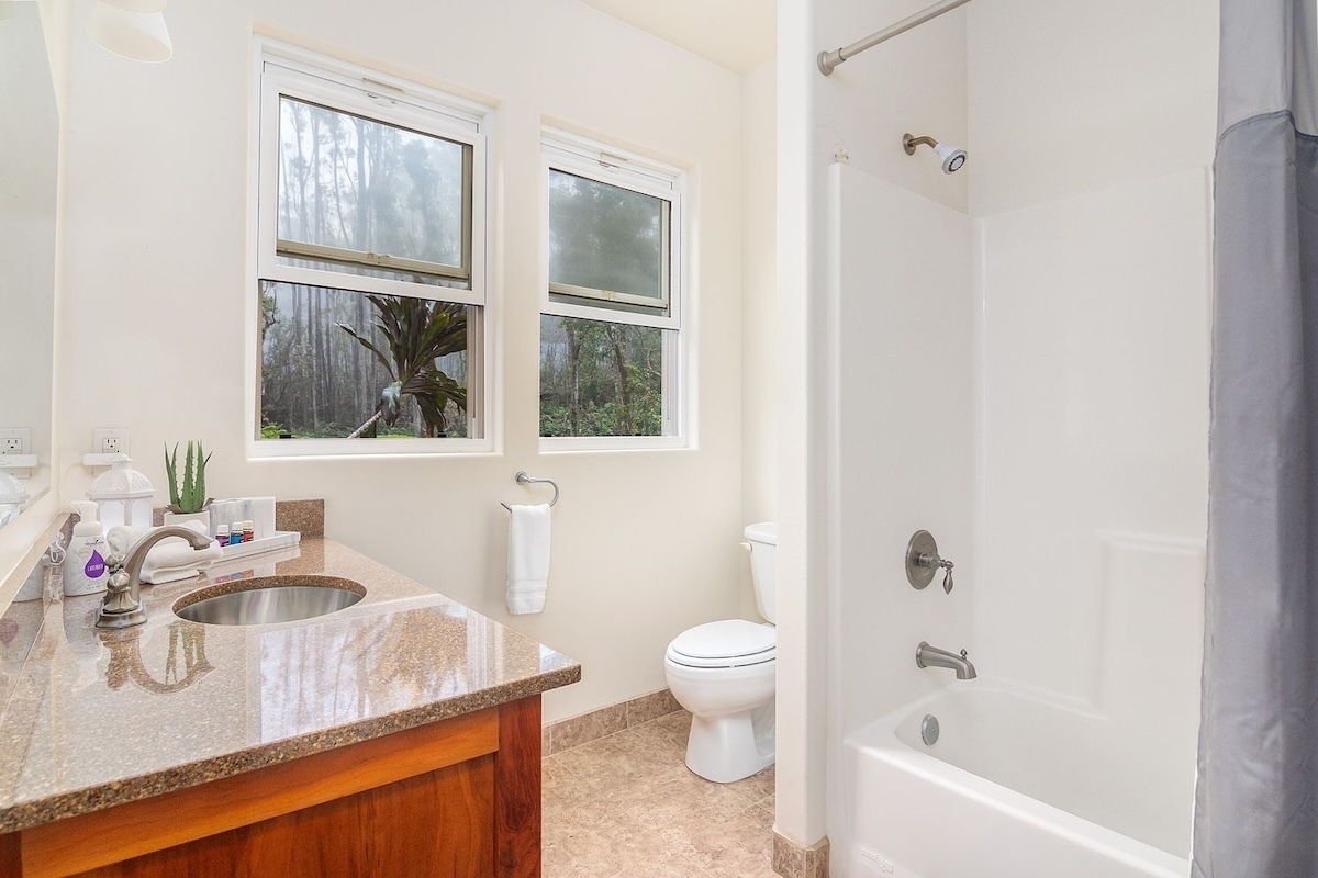 Experience exceptional dual-living flexibility in this serene 3-bedroom, 4-bath residence set on over 7 acres of private native forest in Ahualoa. Located just 12 miles from Waimea and 6 miles from Honokaa, this sanctuary offers a rare opportunity to live amidst a private forest reserve. Property Highlights: - 7+ acres of lush native forest with ‘Ohi?a hardwood trees, Hapu?u ferns, ginger, and strawberry guava. - Split-level design with high open-beam ceilings and abundant natural light - Eucalyptus hardwood floors in the main living and kitchen areas - Large windows throughout framing serene forest views and enhancing the natural ambiance - Wellness and outdoor living features, including a private spa area and a large freestanding deck - Underground electric, county water, and high-speed internet–rare conveniences for Ahualoa living. Main Level: - Open living, dining, and kitchen area designed for seamless indoor—outdoor flow, along with a conveniently located laundry area. - Covered lanai with wood-burning fireplace, slate floors, and handcrafted ‘Ohi?a posts - Two bedrooms and two bathrooms, including a spacious primary suite featuring: dual sinks, granite counters, jacuzzi soaking tub, separate shower, and a walk-in closet. Lower-Level Separate Living Area: One bedroom with bathroom and closet, plus an additional space staged as a bedroom, along with a full kitchen and separate washer/dryer. Wellness & Outdoor Amenities: - Dry sauna, wet steam sauna, and Classic Barrel Cold Plunge for a true at-home spa retreat. -Expansive freestanding entertainment deck set among the trees–perfect for gatherings or peaceful relaxation. This rare Ahualoa property offers a private forest sanctuary with flexible living spaces, resort-style wellness amenities, and a tranquil setting just minutes from town. A unique opportunity to enjoy quiet, spacious, and rejuvenating Big Island living.