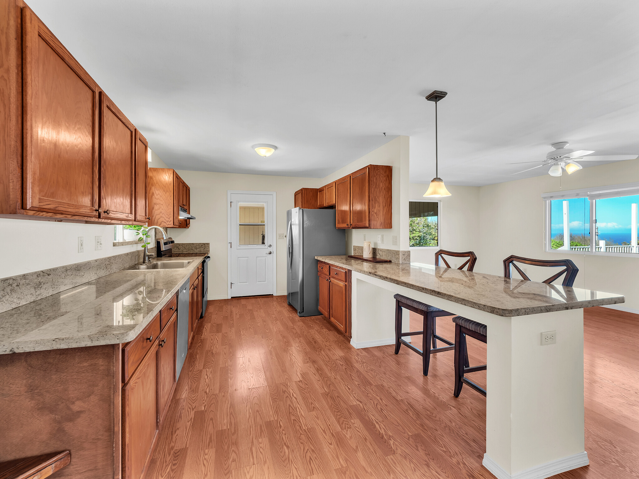 Built in 2000, the main home features 3 bedrooms and 1 bathroom, along with an open-concept kitchen and living area designed to maximize natural light and capture the incredible ocean views. A large deck extends your living space outdoors–perfect for enjoying morning coffee, evening sunsets, or hosting gatherings in true Hawai?i style.