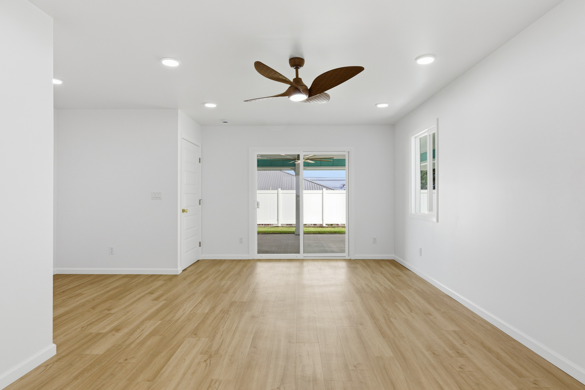 Additional highlights include a cozy corner nook off the living area - ideal for a home office or mudroom - a large enclosed garage, ample storage, and a generous outdoor lanai for enjoying the breeze. The private yard features hand-stamped concrete walls, a privacy fence, and a manicured lawn that welcomes you home!