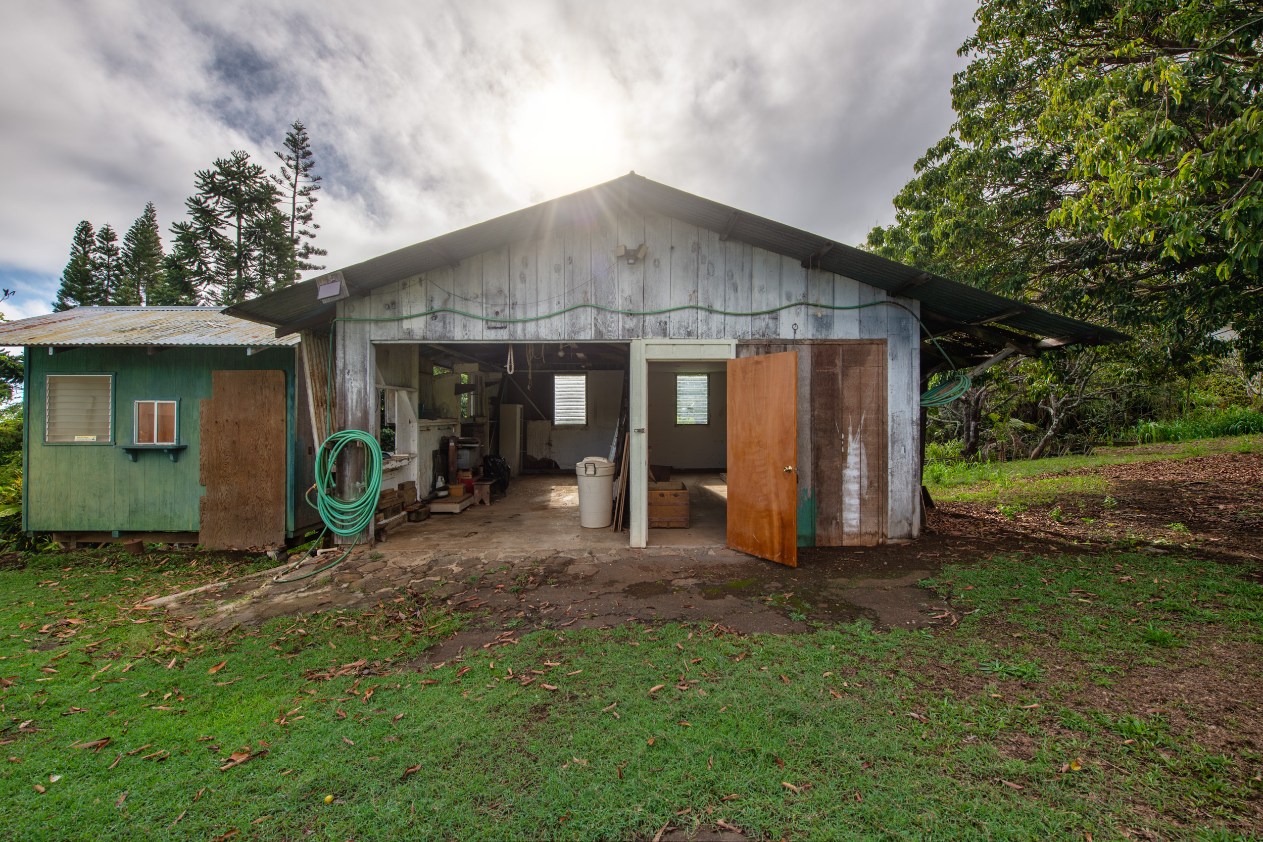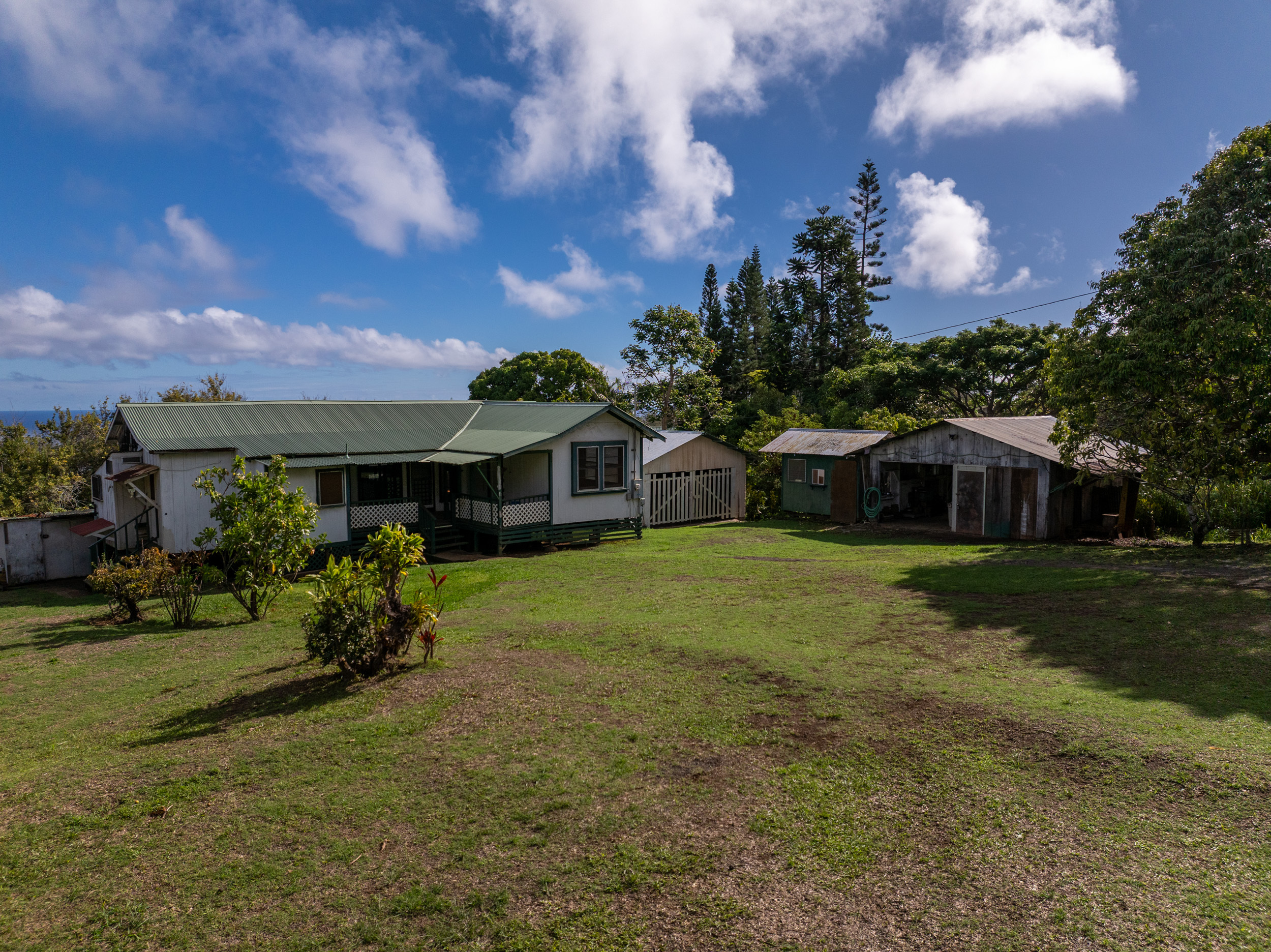 Discover the charm of old Hawaii on this 5 + Acre property along the scenic Hamakua Coast of the Big Island. On the sunrise side of the island, this unique estate offers partial ocean views and the soothing rhythms of country living, while still providing easy access to the main highway. Honokaa town is just minutes away providing shopping, dining, hospital and schools nearby. Fully fenced macadamia nut orchard anchors the property, complemented by lychee, jakaranda, plumeria, palm and puakenikeni trees, surrounding an older 4 bedroom, 1 bath plantation style home, Ready for renovation, its the perfect fixer- upper opportunity to restore or reimagine. Additional features includes covered garage and two storage sheds, ensuring practical space for vehicles, tools and equipment.
