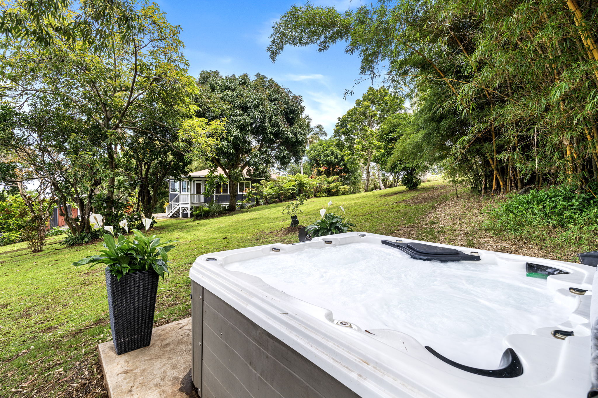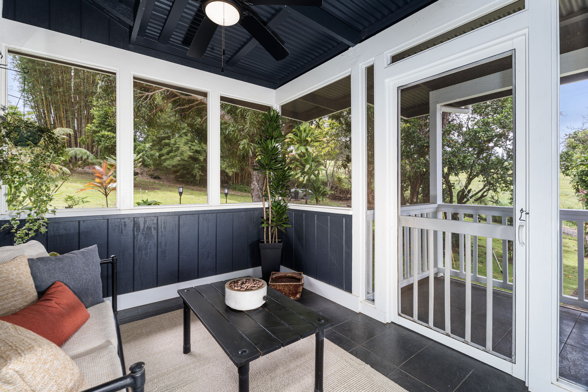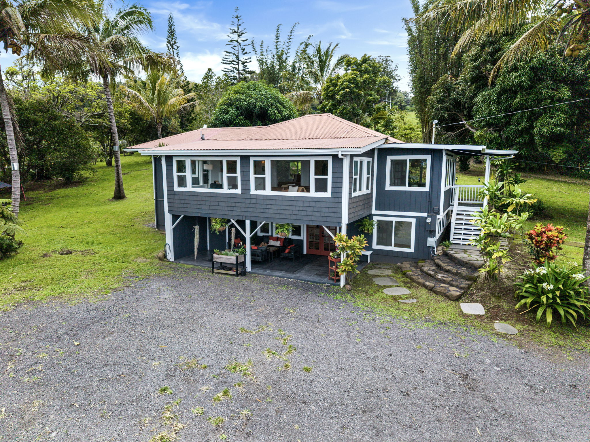 Live your dream life in this fully renovated, turnkey mini Hawaiian Farm. Four bedrooms plus office/meditation room, 2 baths, 2 living areas, mud room with indoor laundry, 2 covered lanai’s- one is fully screened, dining room, huge kitchen with gas range, on demand hot water and ocean views. The property feels like a tropical paradise with anthurium gardens, picnic areas, fire pit, hot tub, container barn, small animal pen, meditation areas and swaying bamboo. Growing on the land you’ll find mango, avocado, oranges, tangerines, tangelo’s, papaya, bananas, mac nuts, Brazilian cherries, strawberry guava, guava, jackfruit, fig, starfruit, various lemon and lime varieties, coconuts and white pineapple.