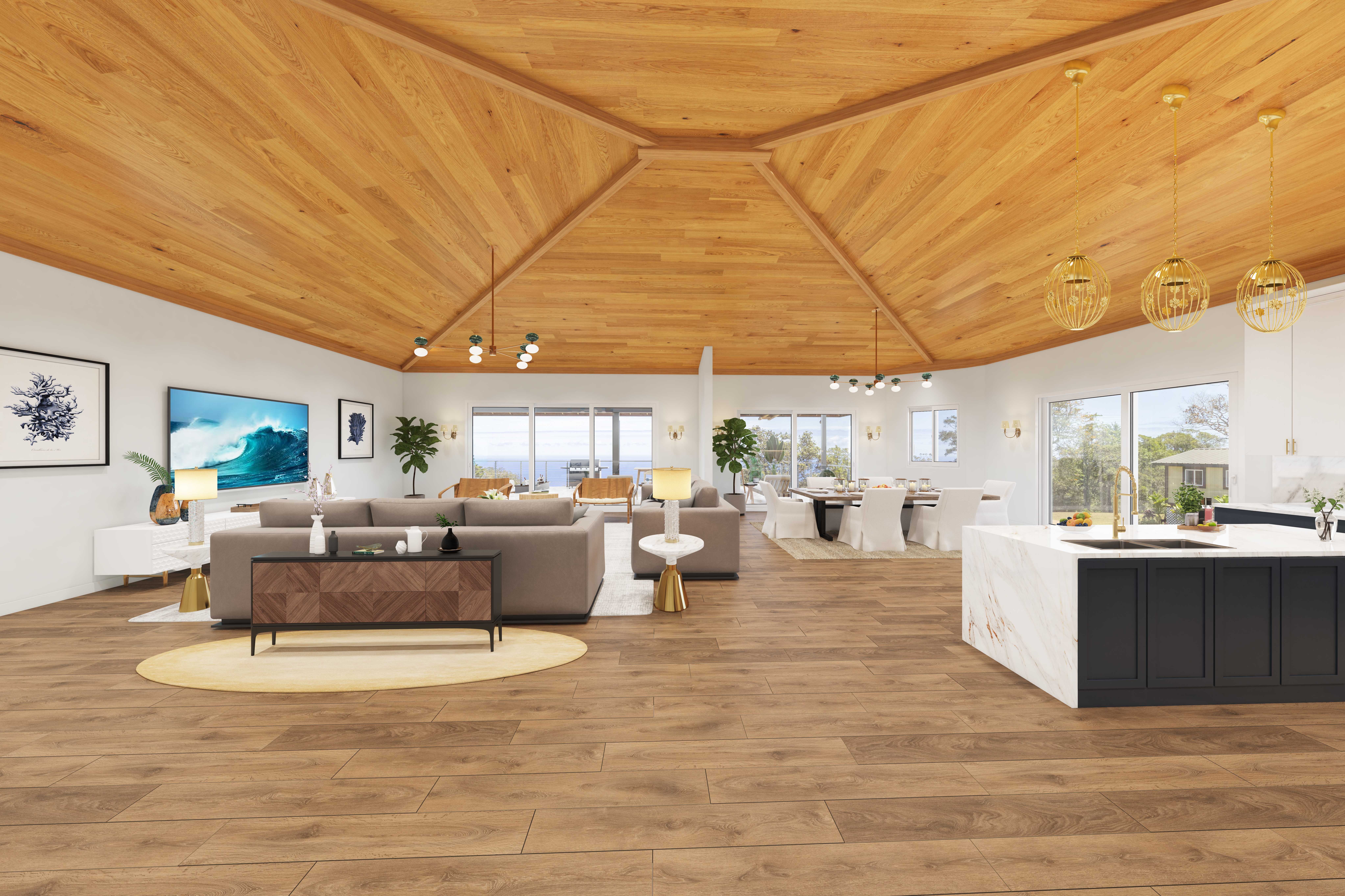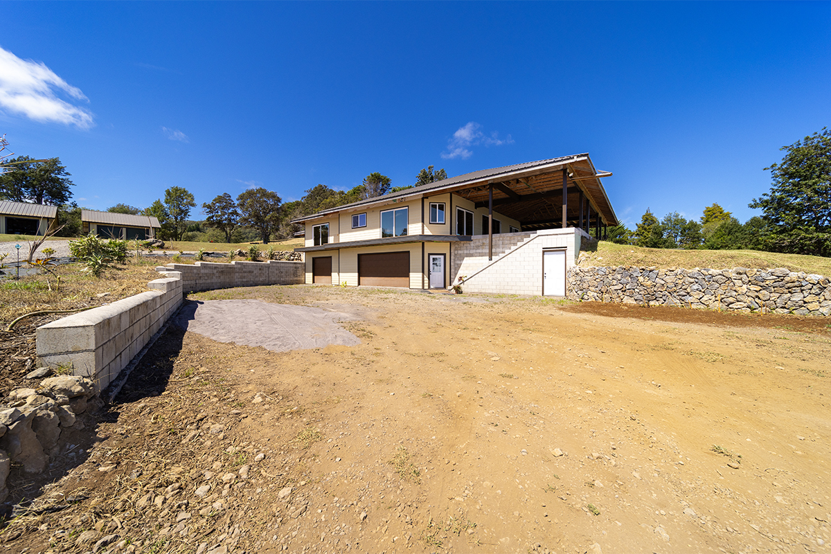 ENJOY THE VIDEO! Complete your one-of-kind estate on the Hamakua Coast! This spectacular, partially constructed, 4134 sq ft off-grid residence sits on 7.5 majestic acres in the enchanting ranching and farming town of Pa‘auilo. Designed with entertainment in mind, enter the two-story main residence through the porte cochere and into the 480 sq ft open concept kitchen, dining and living room, with soaring vaulted ceiling and breathtaking views of the Pacific Ocean. The primary bedroom/ensuite, 1st and 2nd guest bedrooms/en-suites, powder room, and laundry facility are located on the first floor. The 1150 sq ft covered lanai, accessed from the living space and primary bedroom, features a to-be-added sunken bar and pool/ jacuzzi area, and offers ample seating and unobstructed ocean views. The 3,069 sq ft lower level provides parking for multiple vehicles, possible in-law suite with ensuite or office, plus amazing storage. Nestled within the native Ohia Forest, this multi-faceted estate includes a separate ohana with covered, outdoor kitchen and detached bathroom, and 40' container. Perfect for guests, extended family, caretaker, or potential rental income. Two versatile outbuildings, set on cement slabs with solar, are ideal as livestock barns, workshops, or commercial kitchens. The 7.5 acres lends itself to farming, ranching, or equestrian pursuits, with fertile soil, generous rainfall, and the year-round growing conditions the Hamakua Coast is known for. Mature trees, open pastures, and the forest canopy create both beauty and function, while the elevated location captures trade wind breezes and stunning sunrises over the Pacific. Enjoy privacy yet close access to schools, markets, and conveniences in Honoka‘a and Waimea. The property’s scale, location, and construction quality make it an exceptional find for those seeking a lifestyle rooted in both island living and self-sufficiency.
