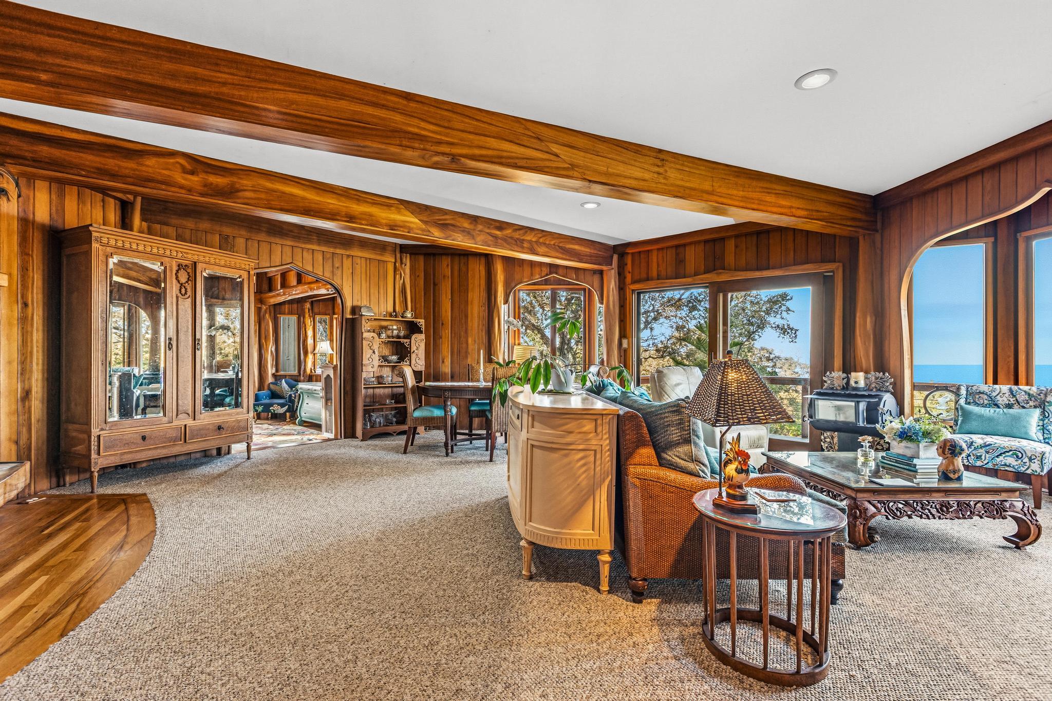 OWN YOUR PERSONAL HAVEN | UNPARALLELED CRAFTSMANSHIP | OCEAN VIEWS Hale Hui–“The Gathering Place” was envisioned in the 1970s and brought to life over a decade by a Maui shipwright whose expert craftsmanship shines in every detail. Live the off-grid lifestyle with solar, water catchment and satellite! Grow your food, enjoy your animals, and enjoy the serenity this historic Big Island property provides! EAT IN KITCHEN: Koa cabinetry Walk-in Butler’s Pantry Vaulted ceiling with skylights LIVING/DINING Tree top views across the property and ocean beyond Flagstone wood burning fireplace and koa shelving PRIMARY BEDROOM_ENSUITE + 1/2 BATH Expansive windows Hidden ship-inspired storage Indonesian furo tub Tiled walk-in shower Dual pedestal sinks Walk-in closet Concealed laundry 2ND FLOOR GUEST SUITE Soaring cupola ceiling Walk-in closet Bird's Nest landing with raised closet SECOND GUEST ENSUITE Expansive windows Sleeps four Full bathroom “THE LOOKOUT” SEPARATE GUEST QUARTERS Raised captains bed with under storage Wrap-around windows Vaulted ceiling with skylight Wrap-Around lanai Perched atop the vintage cement water catchment GARAGE/CARPORT - 640 sq ft GARDEN SHED - 400 sq ft 37,500 Gallons of water catchment 20 Solar panels with back up generator The manicured park-like settling features mature orchards of avocado, citrus, white pineapple and Cherimoya. Wander lush tropical gardens, gather fresh eggs and enjoy cool breezes and warm sunlight. Two seasonal ponds and waterfall, equestrian structure with she-shed, detached workshop/carport, garden shop, imu, generous front and rear lanais, and sweeping Pacific Ocean views complete this extraordinary setting. Eight minutes off Highway 19 through the eucalyptus forest on a paved country road brings you home every day! (First time offered on the MLS in 45 years!)