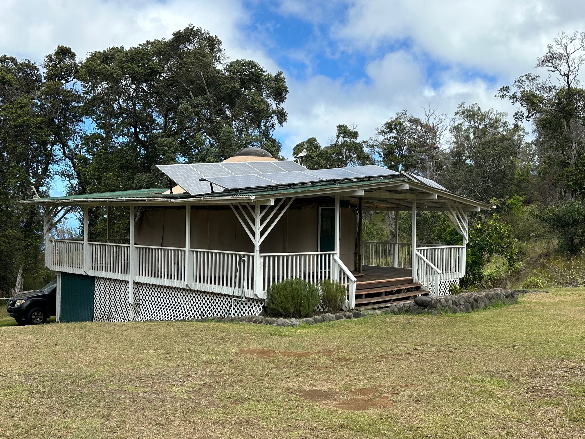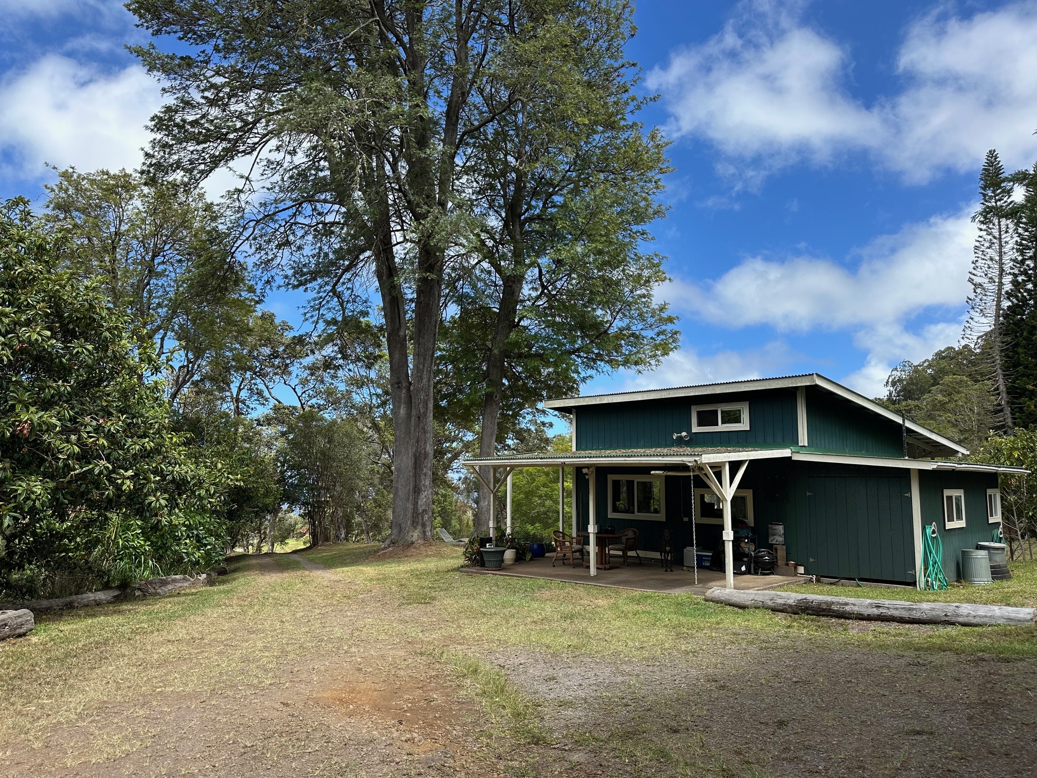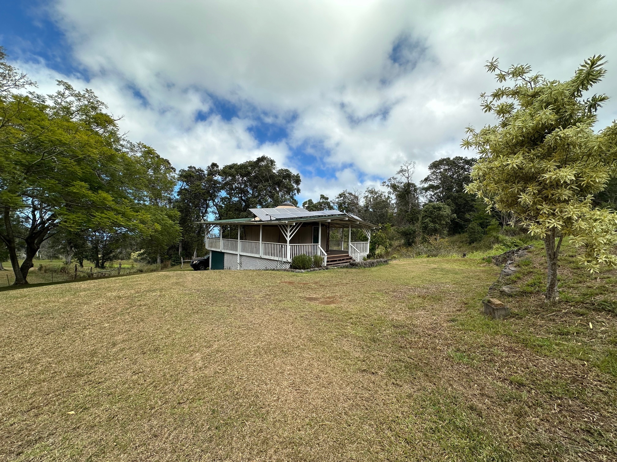 The off-grid property incudes a vintage yurt and ohana studio. Direct access onto a gravel driveway, off a paved road approximately 2 miles from the highway, leads you past a 3.75 AC parcel, also available for sale. (Please see MLS 724282)