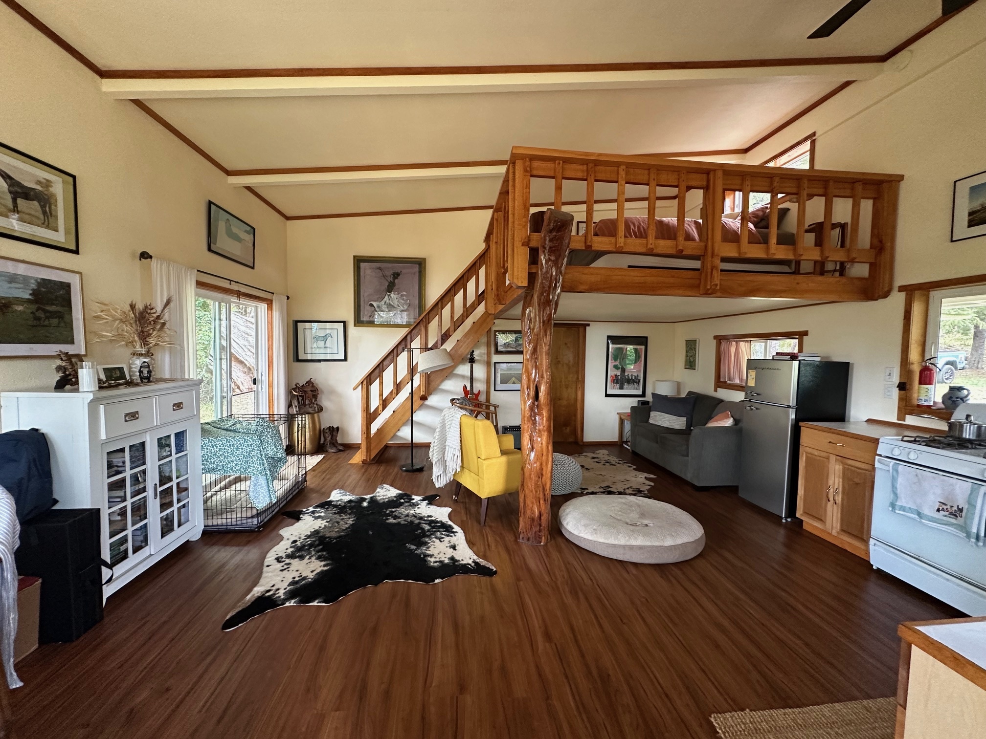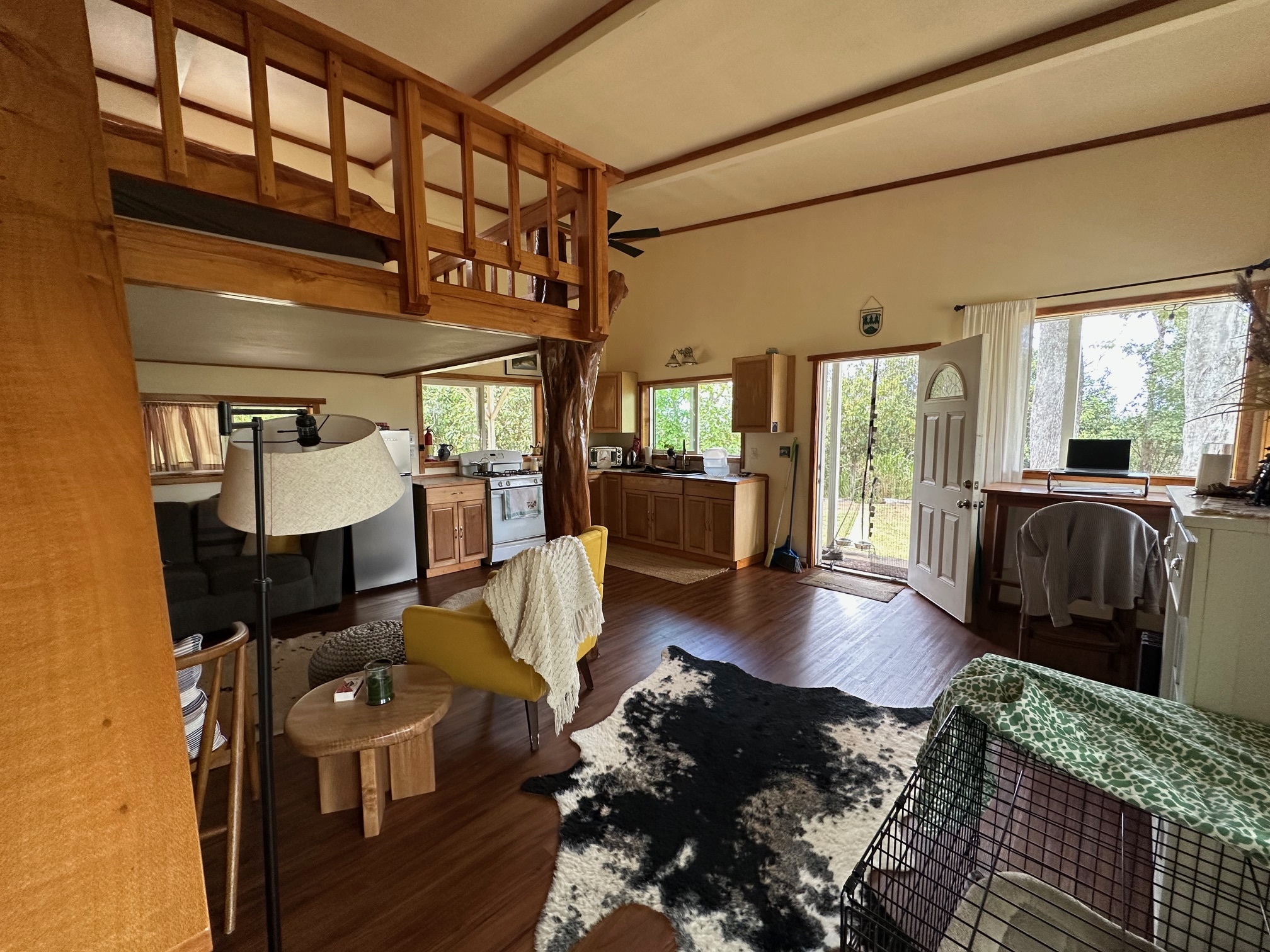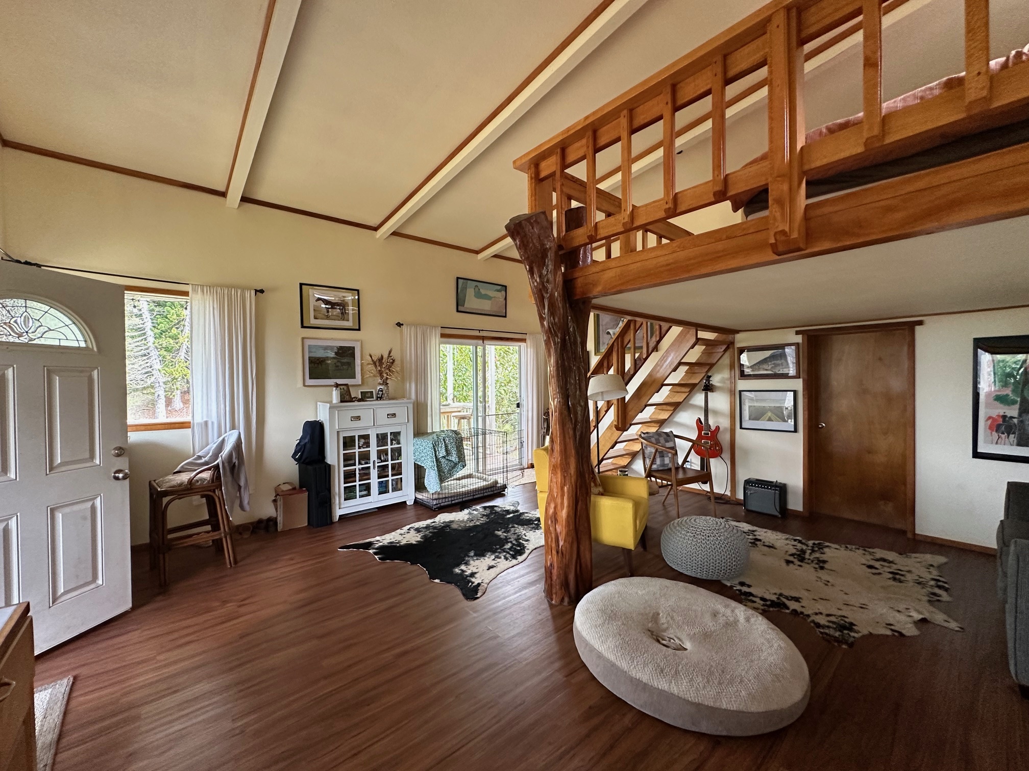 The off-grid property incudes a vintage yurt and ohana studio. Direct access onto a gravel driveway, off a paved road approximately 2 miles from the highway, leads you past a 3.75 AC parcel, also available for sale. (Please see MLS 724282)