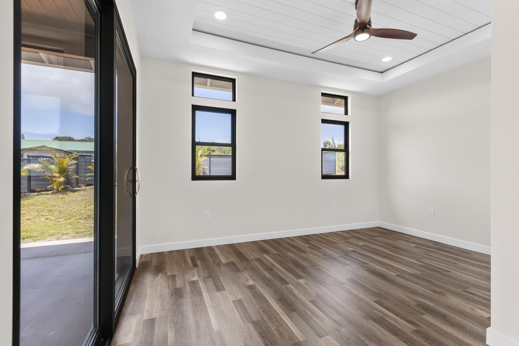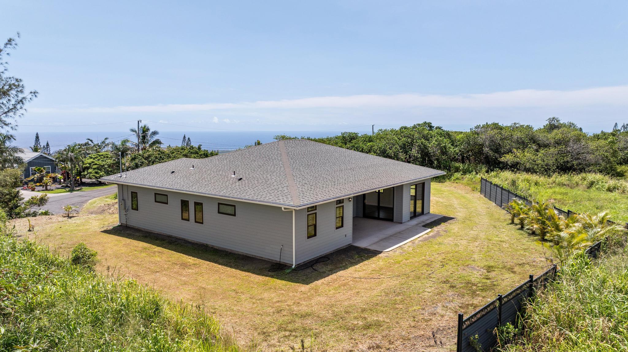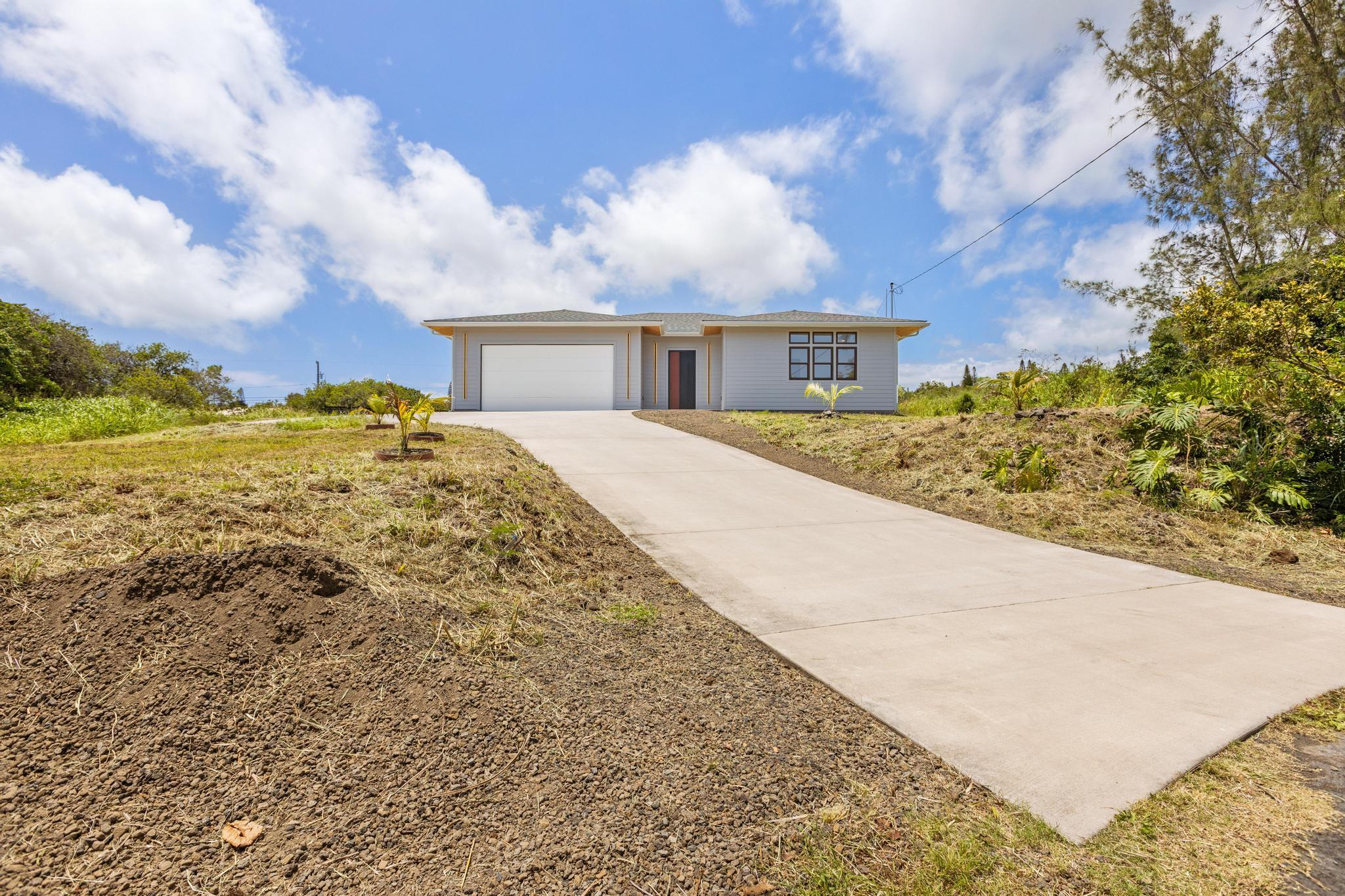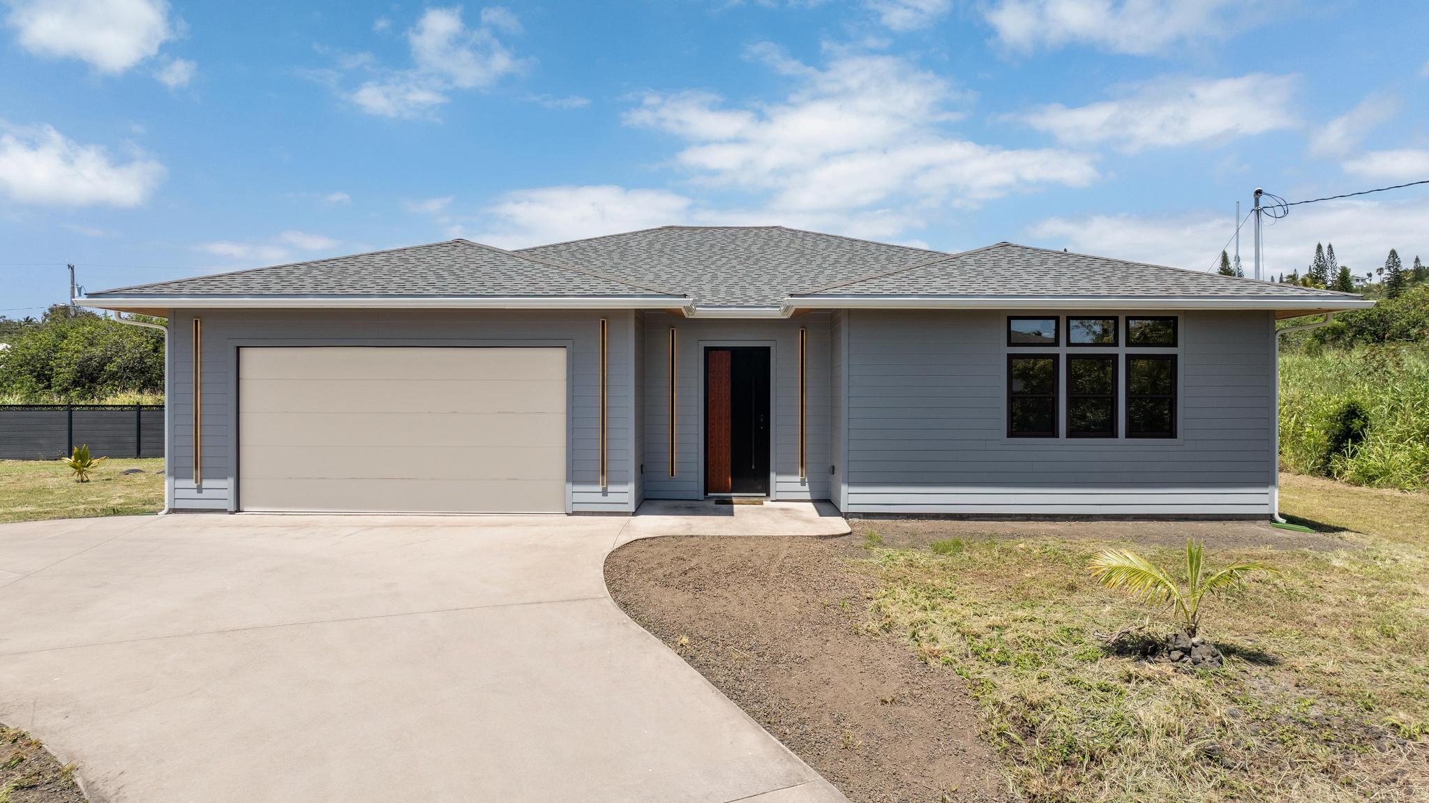 Discover modern island living in this newly built home in Discovery Harbour. Designed with both style and durability in mind, this property features low-maintenance, long-lasting exterior materials including Hardie cement fiberboard siding and a laminated asphalt shingle roof–ideal for Hawaii’s climate. Step inside to a thoughtfully designed interior with 10-foot ceilings throughout and elegant tray ceilings in the bedrooms, creating an open and airy feel. The stunning front entry door makes a bold first impression and includes a built-in camera and fingerprint entry for added security and convenience. The spacious primary suite is a true retreat, featuring two sets of custom sliding doors that flood the space with natural light and provide seamless indoor-outdoor flow. Enjoy a spa-like ensuite with a stone soaking tub, walk-in shower, and a large walk-in closet. A well-designed floor plan includes a second suite with its own private bathroom–perfect for guests or multi-generational living–while the third bedroom offers flexibility as a home office, creative space, or additional guest room. Features & Highlights: - New construction with modern design - Durable Hardie cement fiberboard exterior - Laminated asphalt shingle roof for longevity - 10-foot ceilings with tray ceilings in bedrooms - Luxurious primary suite with stone soaking tub & walk-in shower - Large kitchen pantry - Large walk-in closet in primary bedroom - Two sets of custom sliding doors for natural light - Second suite with private bathroom - Flexible third bedroom / home office - Smart front door with camera & fingerprint entry - Low-maintenance construction–ideal for island living - Portion of backyard fenced with Eureka Palms recently planted for privacy - Close to golf course, shopping, dining, and South Point Modern comfort, smart design, and durable construction come together in this exceptional Big Island home.