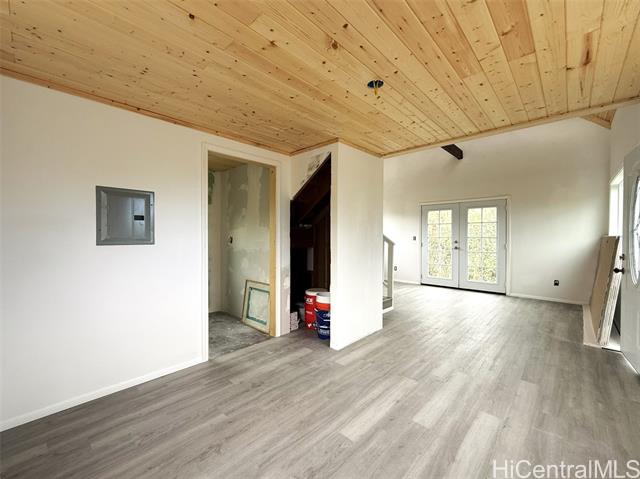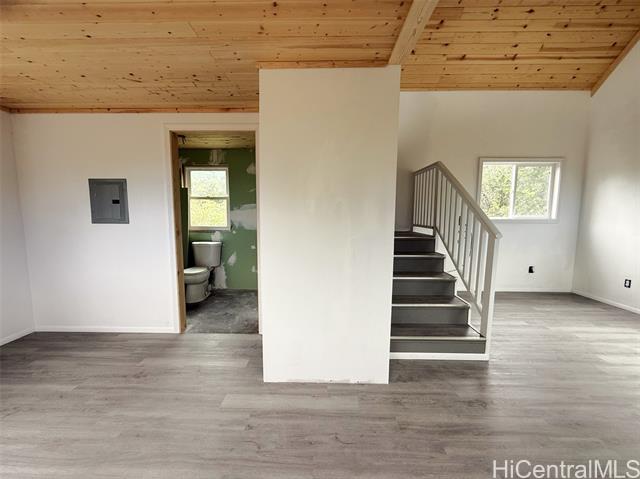 Discover the potential of this thoughtfully updated home, located in lava zone 6. Just minutes from world-famous beaches, hikes, and marine sanctuary, this 1 bed, 1 bath residence offers an incredible opportunity to bring your dreams to life! Construction began in 2017, with the kitchen, bathroom, and final plumbing still left to complete, this is your chance to step in and customize the finishing touches to suit your personal style. Recent updates include: *Added insulation for improved energy efficiency & climate control *Wood-slatted ceilings, adding charm, texture & highlighting the lavishly tall cathedral ceilings *New staircase, designed for better functionality & use of space *LVP flooring throughout *Framing completed, drywall finished & window sills installed While not complete, the construction was done to exceptional standards, with simple elegance in mind. It's not a large house, so thoughtful use of space was essential. With an open concept design, plenty of windows, double french doors, and a loft-style bedroom with a view of the ocean, this home utilizes every square foot. Don’t miss your opportunity to shape this home into something truly special!
