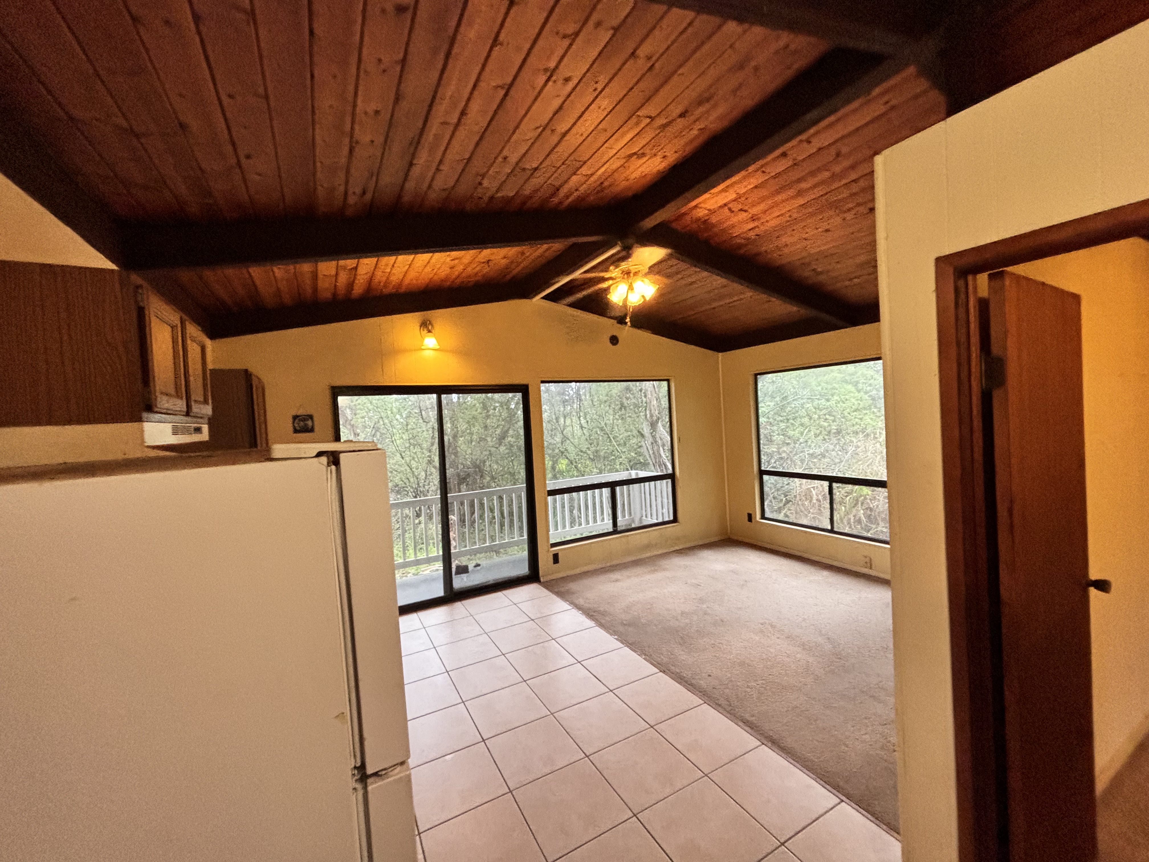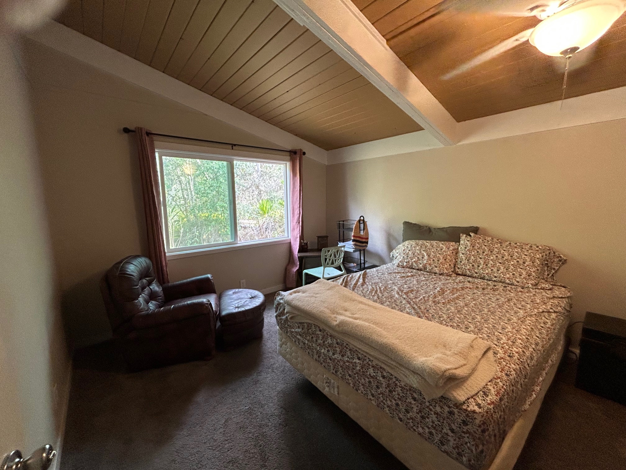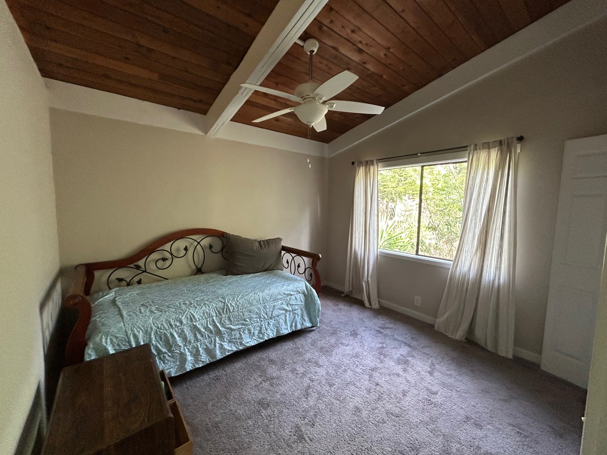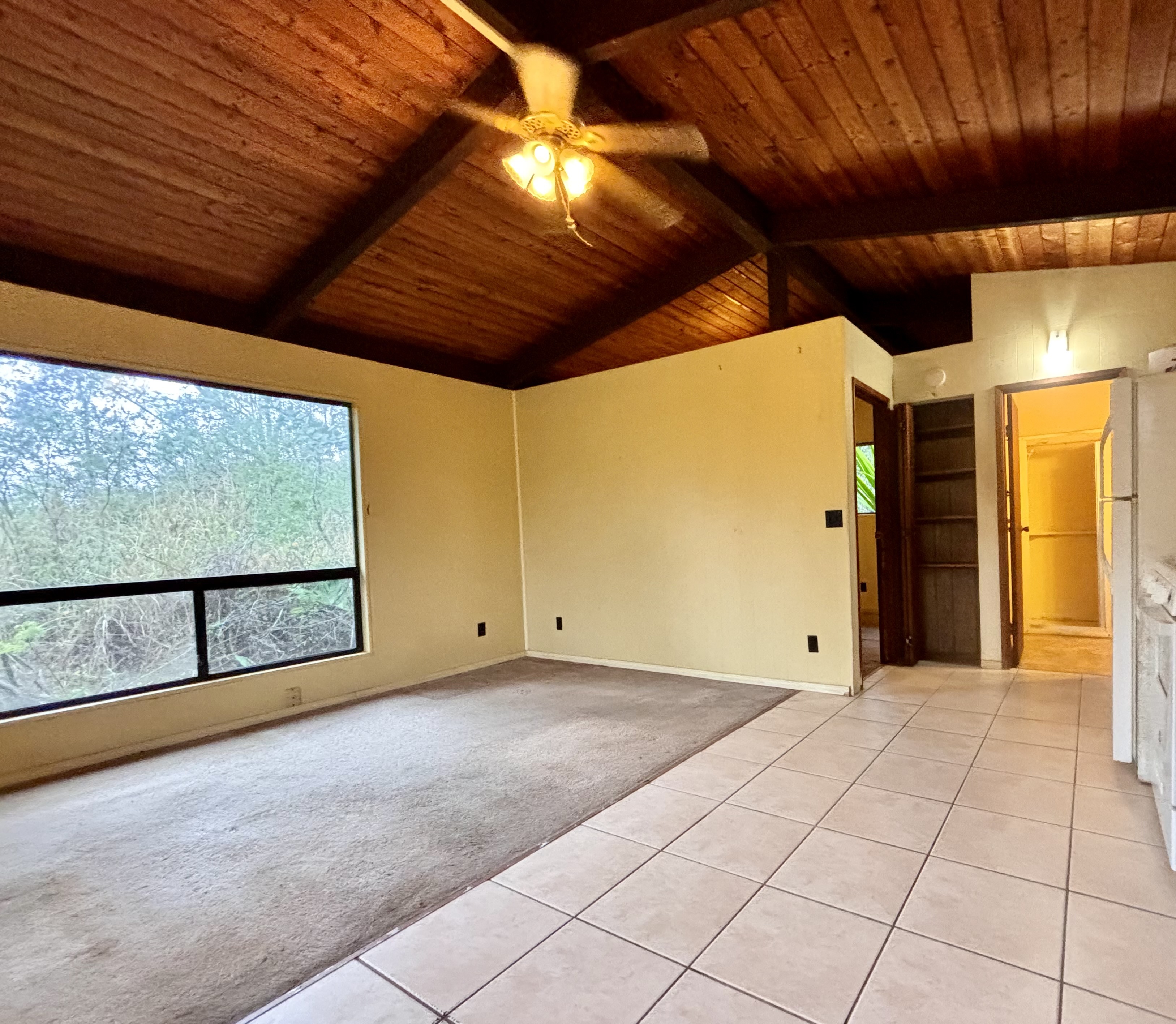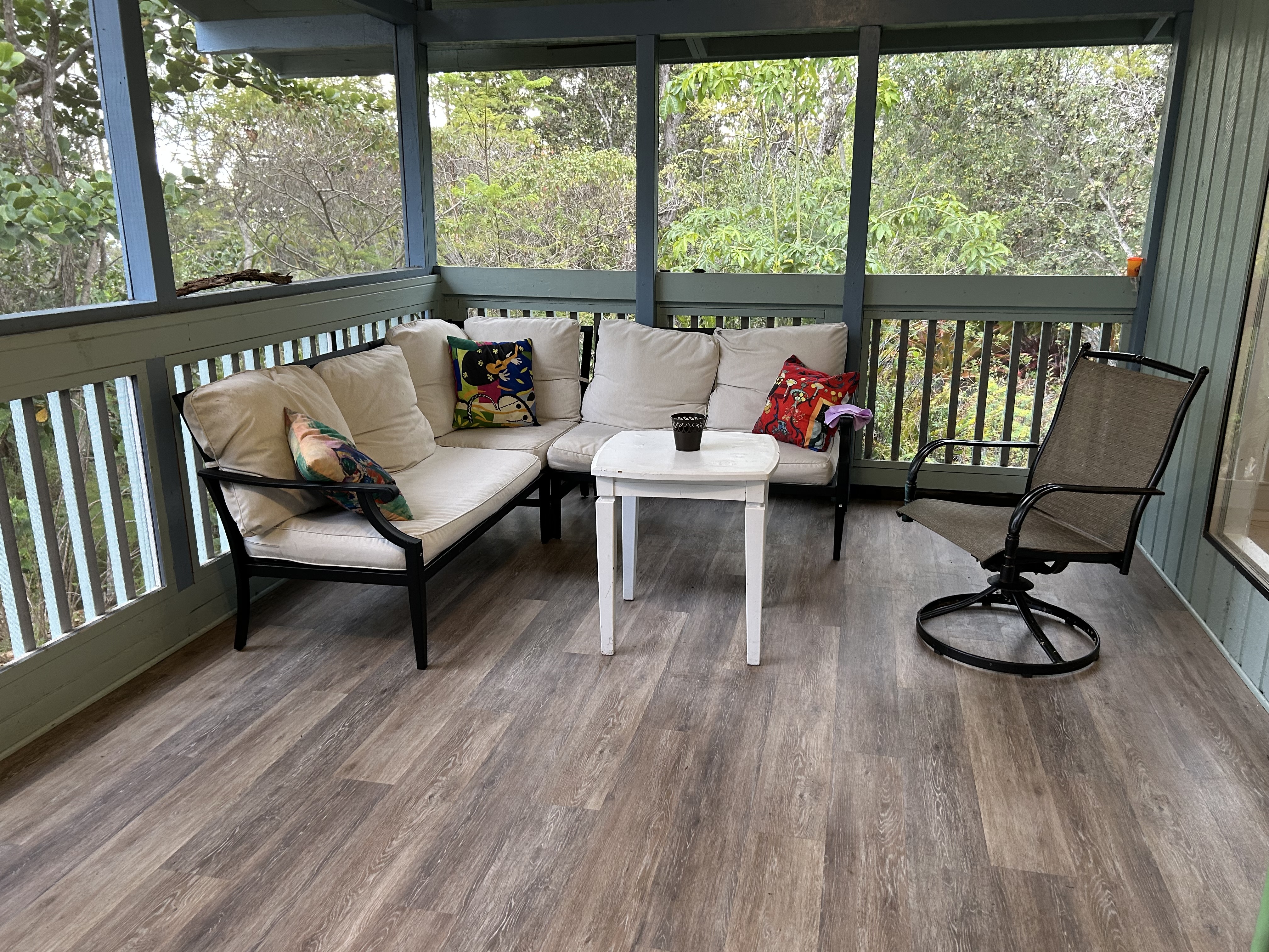 Private, gated and tucked away on 1 acre of land surrounded by lush vegetation. Main house consists of an updated 2 bedroom, 1 bath home which features vaulted ceilings, granite countertops, soft close cabinets, newer appliances, newer floors, a tiled bath and laundry room. Escape onto your screened-in lanai which is an added living space of more than 200 square feet. The inside laundry room leaves ample space to add a washer and dryer, plus room for cabinets for more storage. Private pathway extends to the back of the property where tucked away is the 2nd building with a covered lanai sits. Each house has its own separate water catchment tank and circle driveway. Great for extended family, workshop or gym! Experience the privacy this hidden gem has to offer. Property is being sold As-Is. Current TIR and previous survey available with accepted offer. No showings on Saturday. By appointment only. No Trespassing.