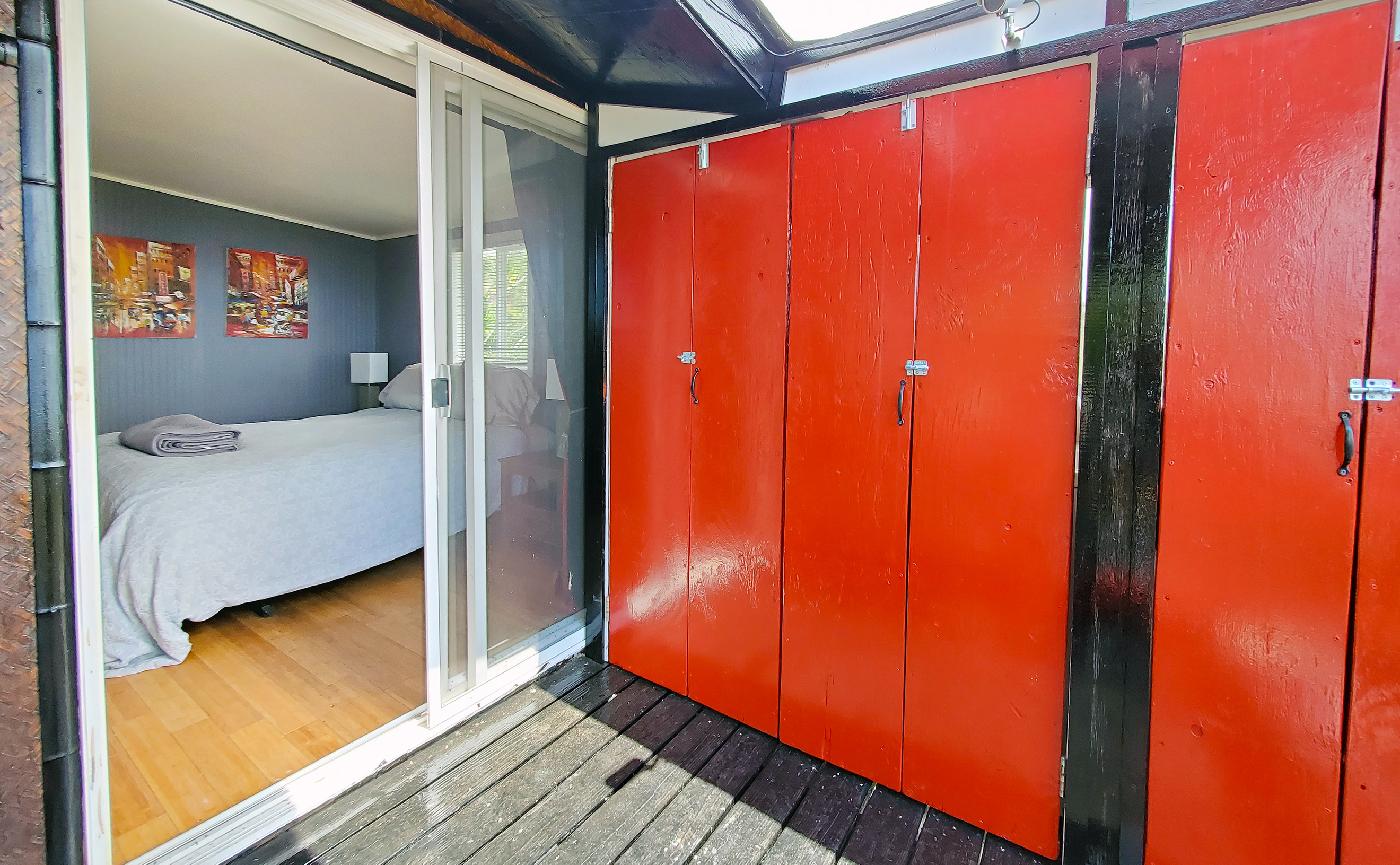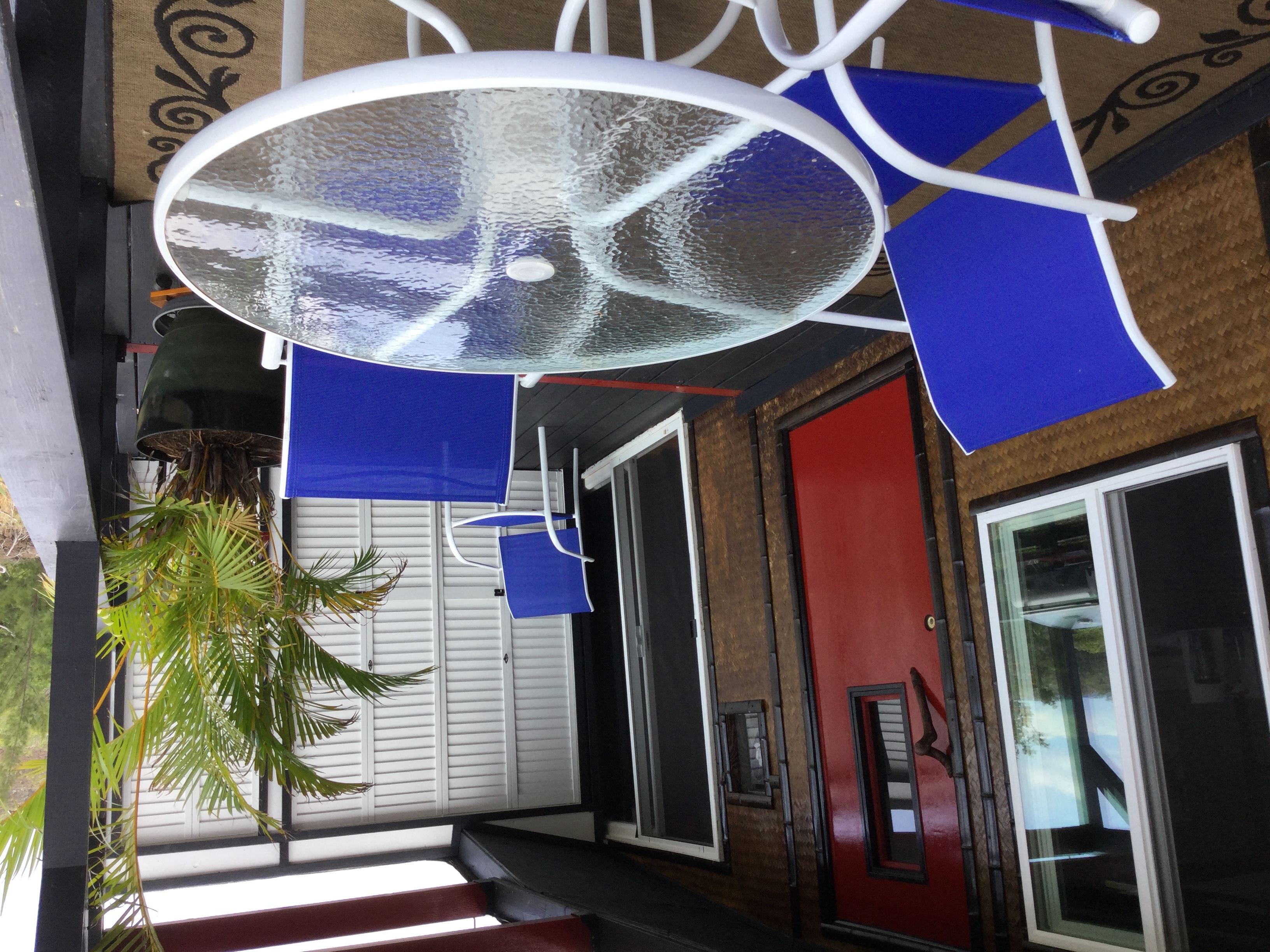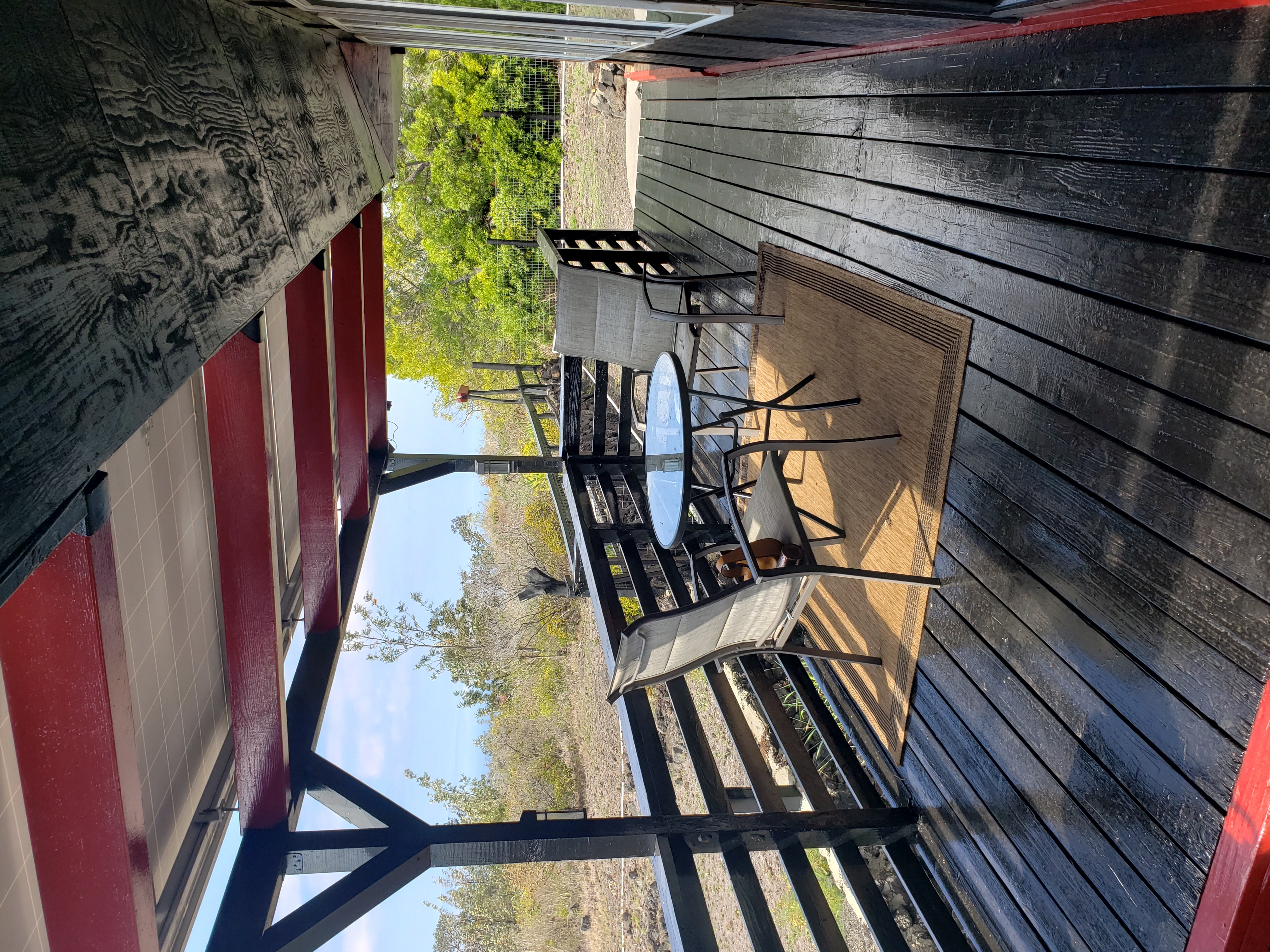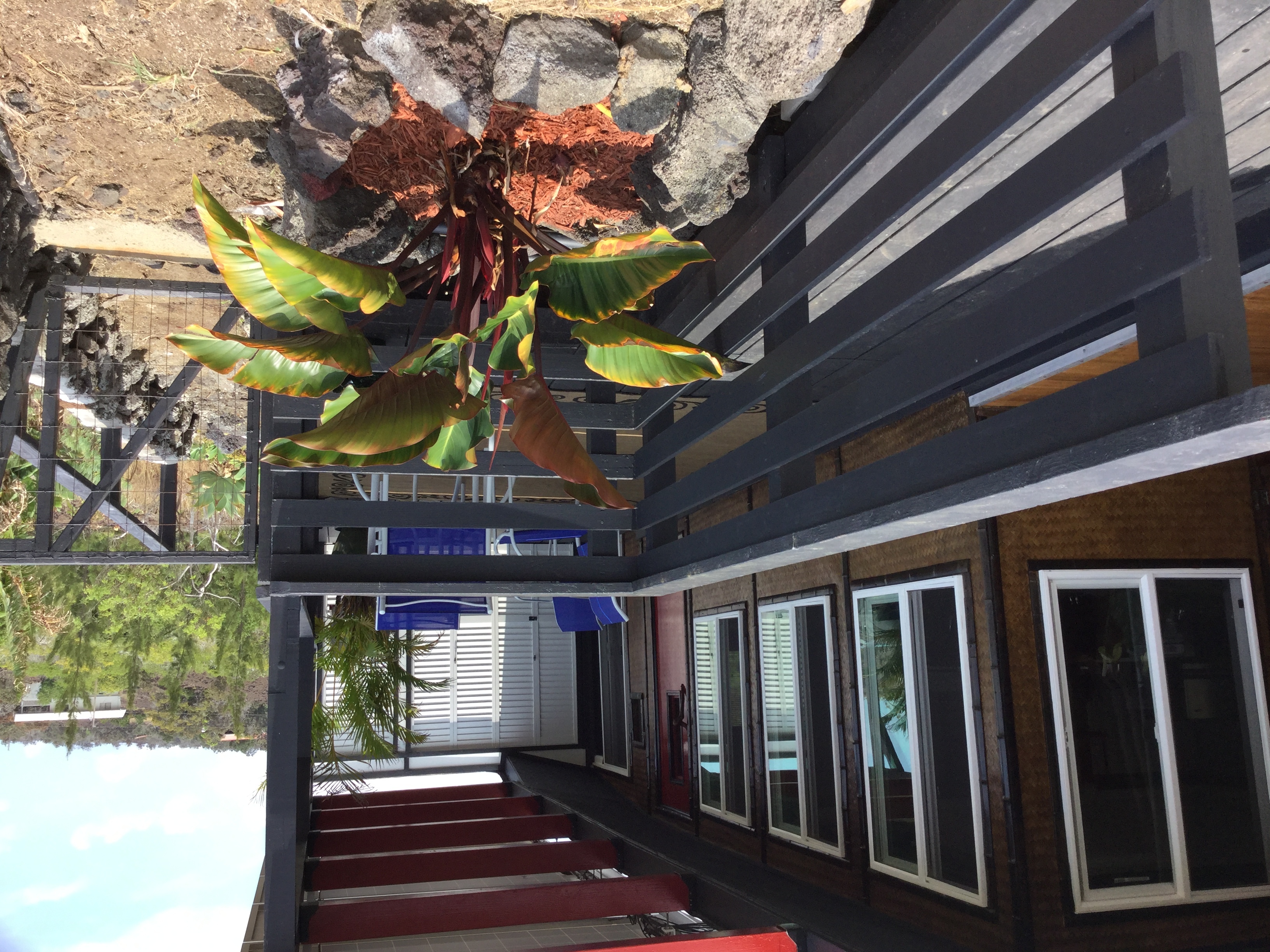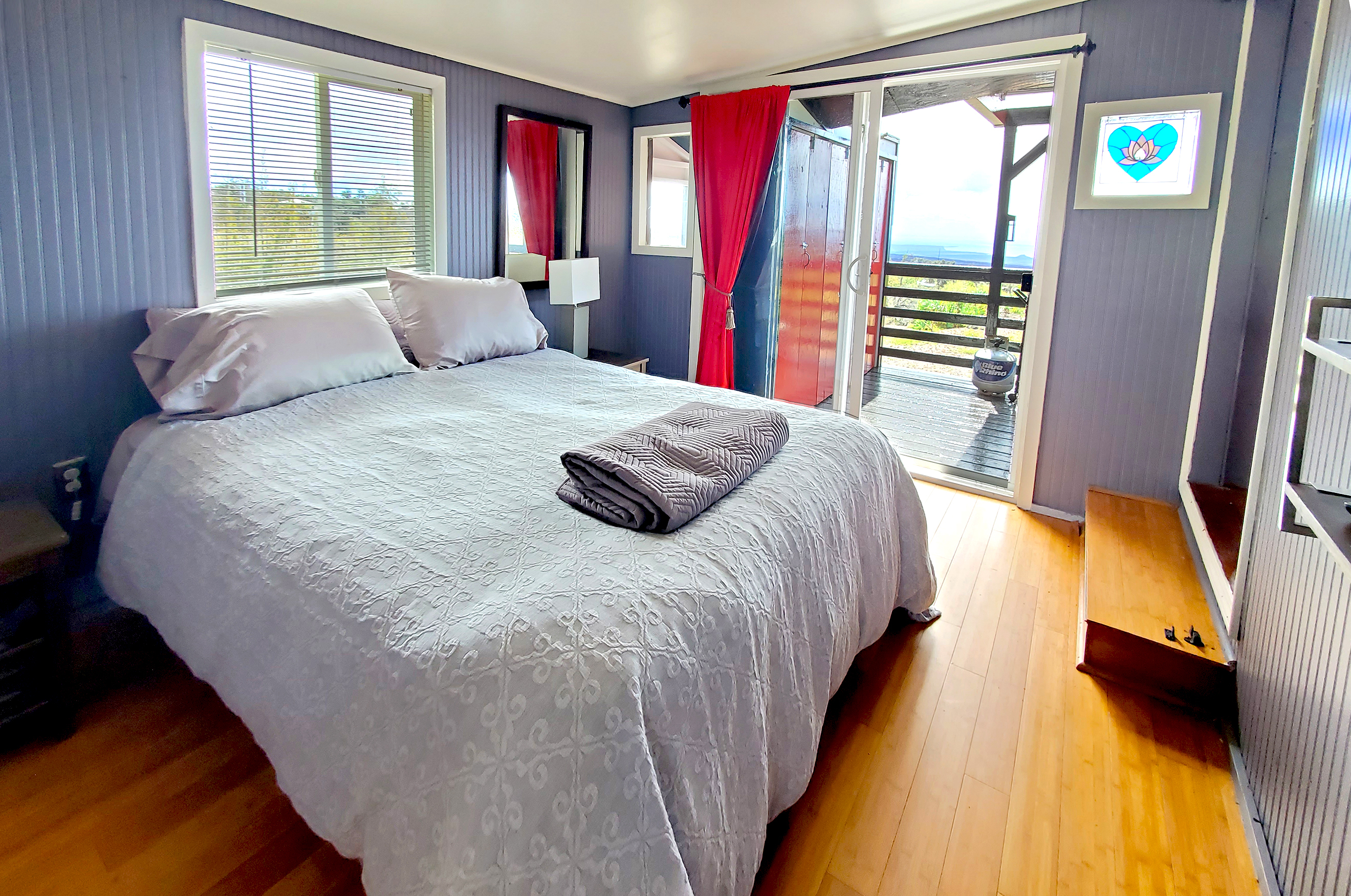 The bedroom has a sliding glass door to the Lanai. It's the perfect spot to watch the colorful pau hana sunsets every night and catch the sunrise that starts the day in appreciation for the House of the Rainbows. Such a peaceful home for a loving couple. Ohana, or vacation rental.