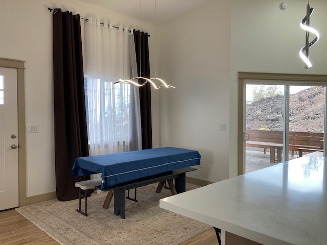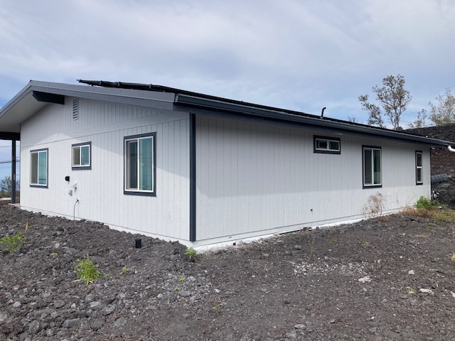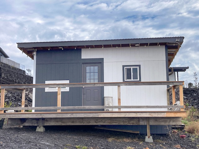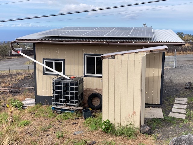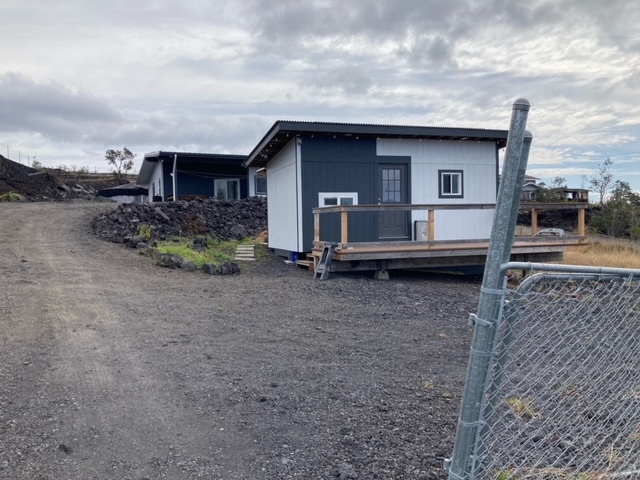 Hawaiian Ocean View Estates - Owner and contractor built 3 bedroom/2 bath home with separate 1 bedroom ohana unit. Construction began in 2021 and was completed in 2025. The attractive main house sits up on the highest place on the lot for the best vistas - sunset and ocean views for miles! Some of the best features are: * LVP flooring throughout * Custom color-changing lighting in kitchen/dining/living room areas * Both baths have porcelain tile in the showers and on the floor and also exhaust fans * Spacious hall linen closet * 14,000 gallon water catchment tank * Septic system with leach field * 36 owned solar panels with two inverters * Partially furnished * Two storage cubbies for out-of-sight utility components storage * Primary bedroom has large walk-in closet * Seamless gutters, finished soffits * Walls and ceilings are fully insulated * Double-pane windows * Patio slab is stamped concrete, 6 ft wide walkway to front door * Indoor/outdoor living with sliding glass door access to patio * Custom-built mahogany benches and coffee table on patio * Fenced one acre lot, corner staked in 2021 * Bedroom #2 has double closets and hall bath access * Only four blocks up from Hwy 11 so quick and easy access The ohana structure is approximately 12 x 20 and it has a large Trex lanai. It has 10 solar panels and a 300 gallon water storage tank. Inside is a kitchenette with space for a fridge and range, a small dining area or office, living room with futon bed and a bedroom with full-size bunk beds on one wall. Outdoor bath has a toilet room separate from the large shower. Plantings include banana, papaya, mandarin orange, macnut and mango. Ocean View Town Center has several shopping areas with markets, gas stations, a post office, hardware store, business center, restaurants and much more! Just over an hour north is Kailua-Kona with an international airport and most major services.