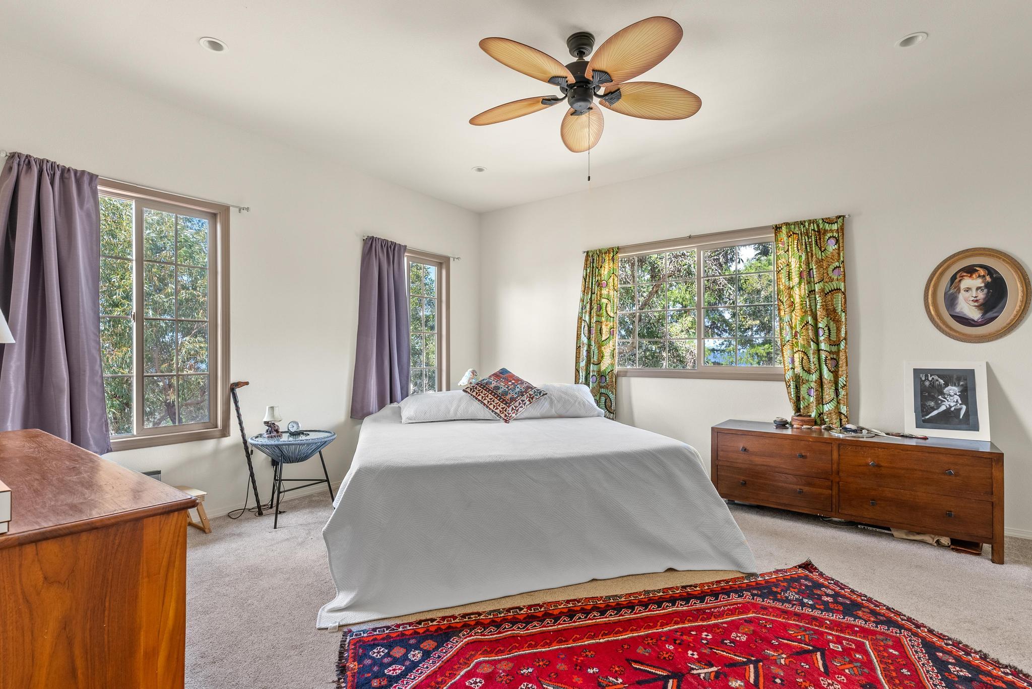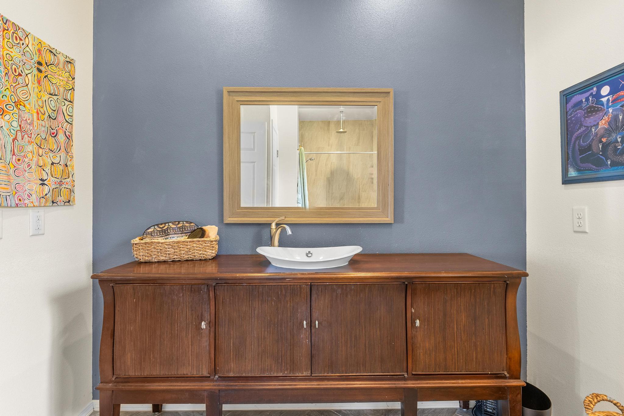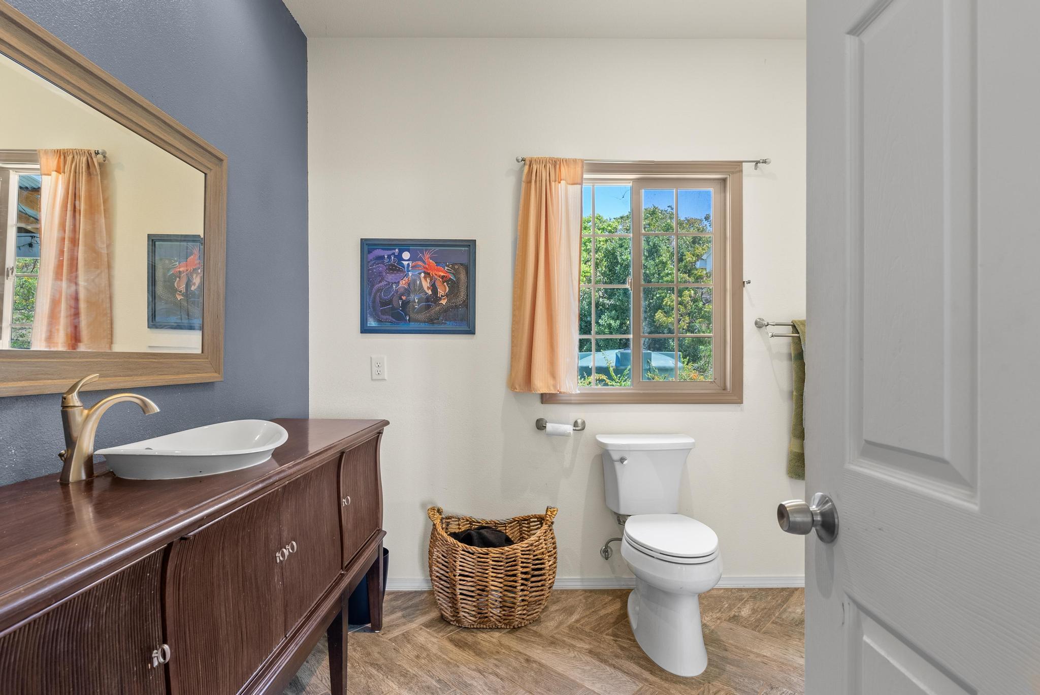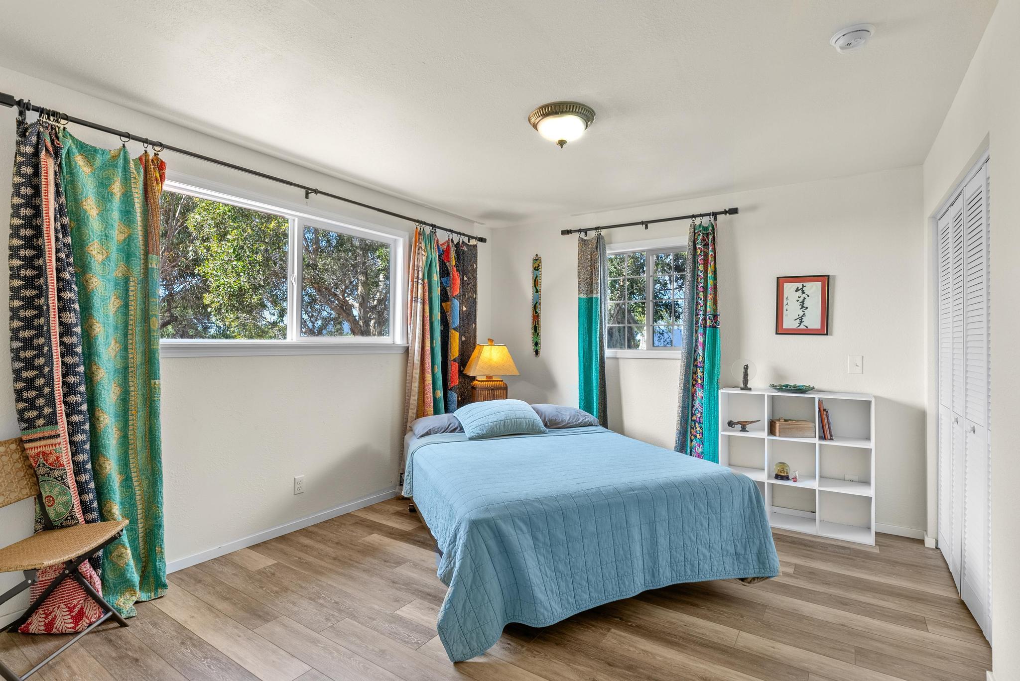 Welcome to this stunning upscale home, offering 3 bedrooms, 2 bathrooms, and 2 private acres in a peaceful setting with spectacular ocean views. Built in 2020 and enhanced with recent luxurious updates, this property blends modern comfort with timeless elegance. The open-concept interior features 9-foot ceilings upstairs, creating a bright ambiance throughout. Classic French windows in the living room frame breathtaking ocean views, while a stunning Shou Sugi Ban (burned wood) accent wall at the entry adds a distinctive artistic touch. The all-new kitchen is a chef's delight, showcasing butcher block countertops, quality appliances, tile floors, and a uniquely crafted island. Upstairs, the dream master suite offers abundant space, an ensuite bath, and a tiled walk-in shower. Downstairs, two additional bedrooms await–one light and bright with southern exposure, the other opening to a huge, covered patio. A full bath with a tiled shower, a laundry room, and a large interior storage room completes the lower level. Upstair Lanai alteration and some Interior improvements completed without permit. Outdoor living is equally impressive, with a new 24' x 12' lanai upstairs–perfect for private dining and a covered porch downstairs. The 2 acres of gently sloping land are beautifully landscaped, dotted with tropical flowers, fruit trees, and a mature macadamia orchard. The garden invite you to cultivate your own piece of paradise. Practical upgrades include a solar hot water heater, a new metal roof for rainwater catchment, and a reliable water system featuring a 10,000-gallon tank paired with a 5,000-gallon poly tank. Storage is abundant, with a 14' x 12' tool storage room and a large exterior shed. Located in a quiet neighborhood of well-maintained homes, this property offers easy access to shopping, fishing, and gardening. Green and Black Sand Beaches nearby- a true haven for island living. Virtual Tours Available!