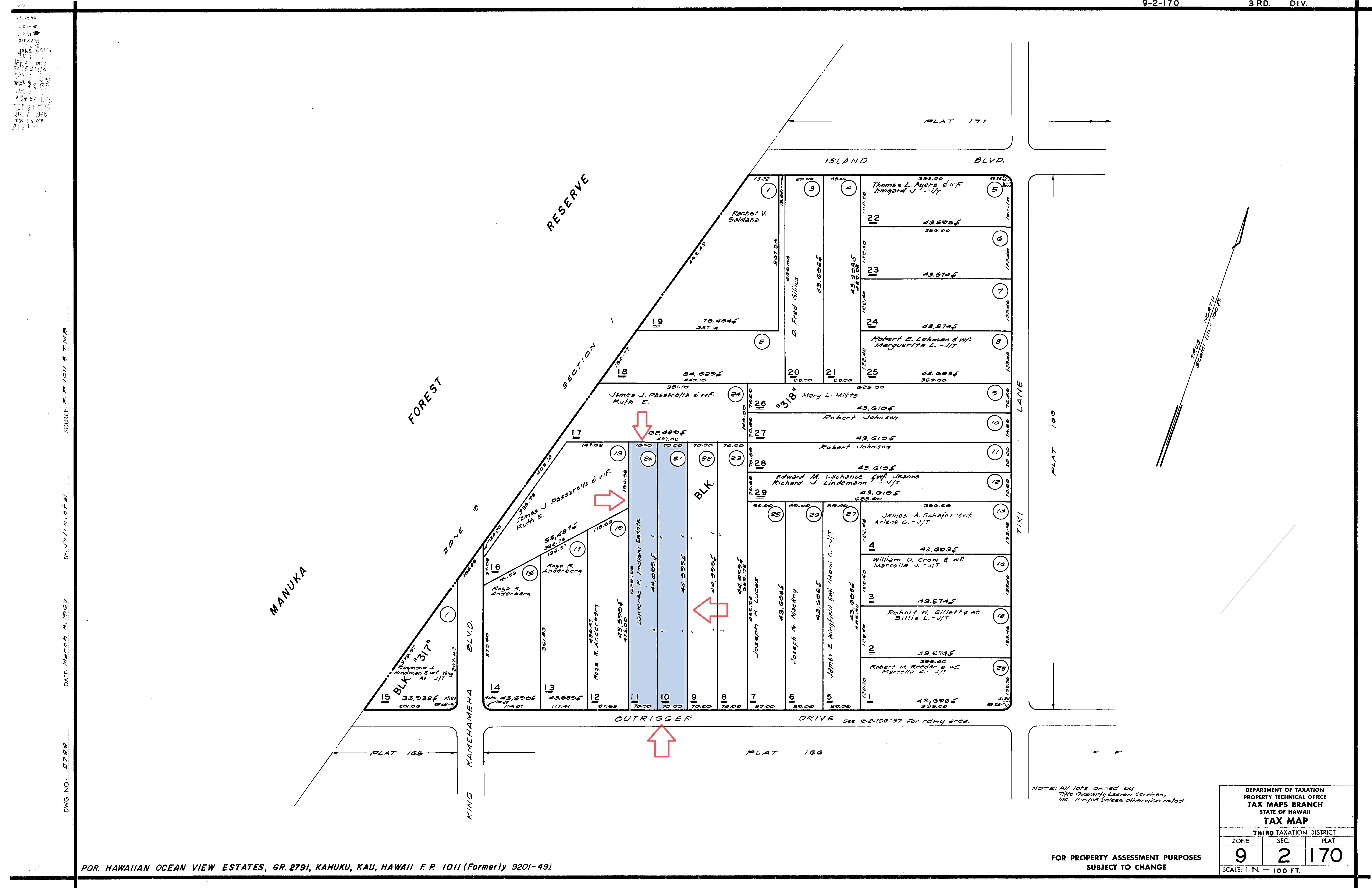 Welcome to 92-2417 Outrigger Drive, a wonderful 'estate caliber' place for your Hawaiian Oceanview life. Own these two side by side acre lots at a nice price in Hawaiian Ocean View Estates (HOVE) above South Point on the Big Island of Hawaii. These lots are Kipuka (islands of forest) and are decently wooded in native old-growth Ohia trees, Pukiawe, Koa, and A'Ali'i. Comes with Aleppo pines, and other assorted ornamentals. This property has some features that belong in a national park! Manuka NAR is your neighbor 500’ away at the end of Outrigger Drive. Elevation is approximately 3780-3840 feet ASL. Dimensions are rectangles for each lot, approximately 629’ deep and 70’ wide, totalling 140 foot frontage on Outrigger Drive. The 2 TMKs included are 3-9-2-170-10 & 11. This 2 Acre package has a previously cleared (in 2003) house pad area with driveway. Build new, be green, and go net zero with solar power. Ocean View has several commercial areas by Hwy 11 with grocery and hardware stores, restaurants, post office and Laundromat. Visit the nearby Black Sand beaches of Punaluu or Honomalino, or the spectacular Green Sand Beach at South Point. Hawaii Island is truly a land of contrasting beauty, satisfying your quest for tropical pleasures. Come buy this enchanting paradise today. The property is approximately a one hour drive to Kona. Refer to MLS# 724572.