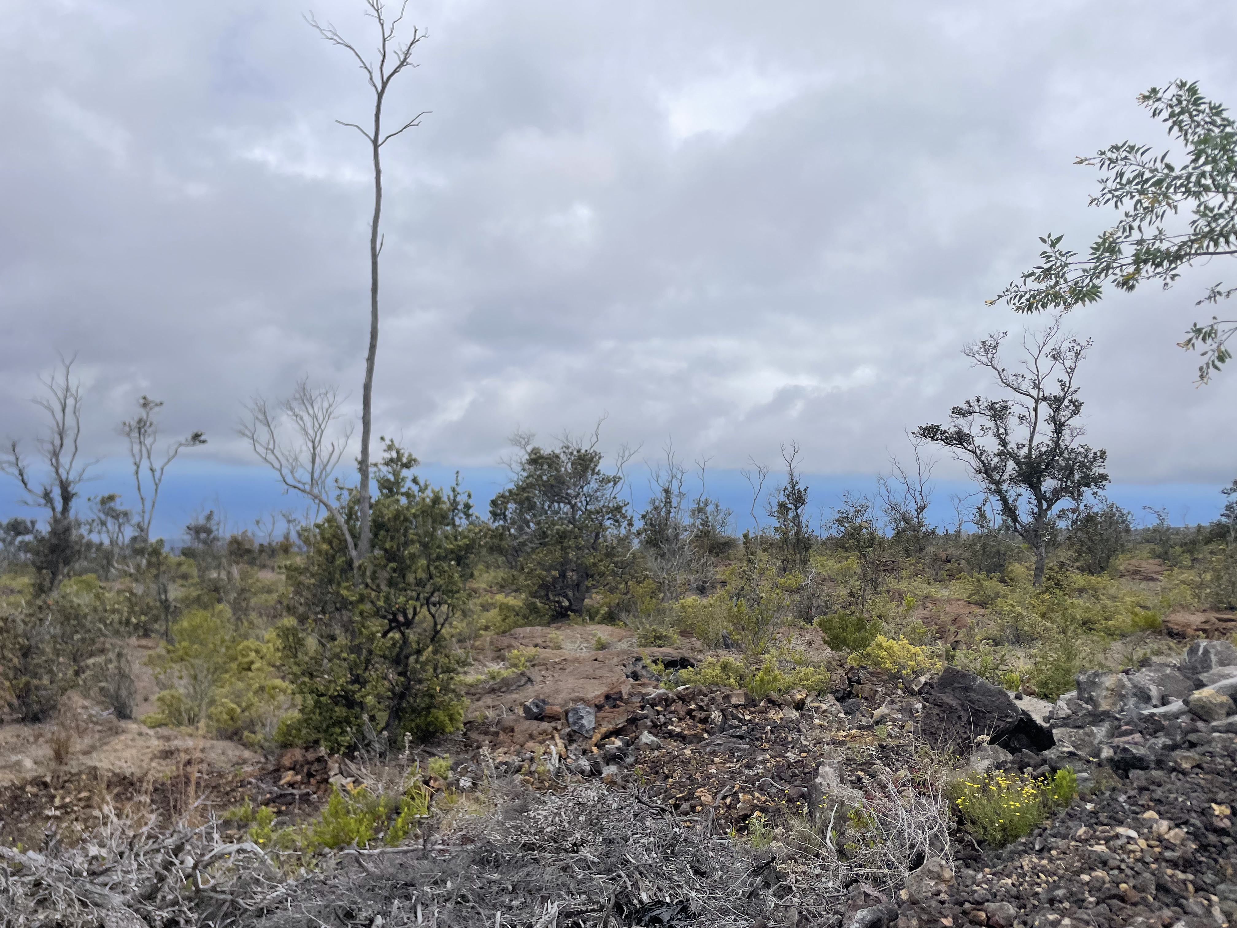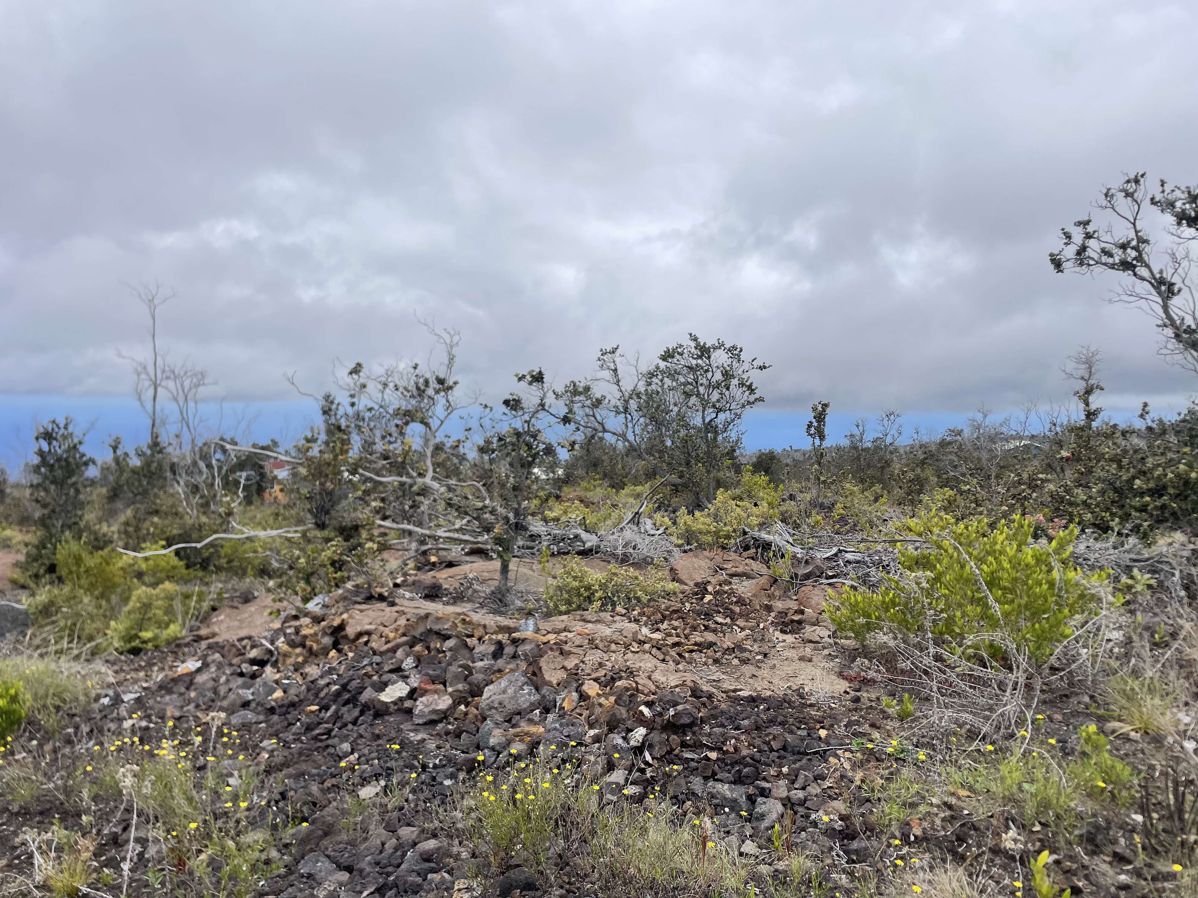 This sale is for 3 adjacent acres sold together. Groundwork and grading has been done to create a driveway and a house pad which overlooks the beautiful Ka'u coastline and horizon. Gently sloping, the property is easy to navigate as it is pahoehoe. Vegetation includes small ohia trees, Christmas berry bushes, ohelo berries, and ‘akia berries. Located at an elevation of 4100 ft, evenings are cool and the star-gazing is spectacular.