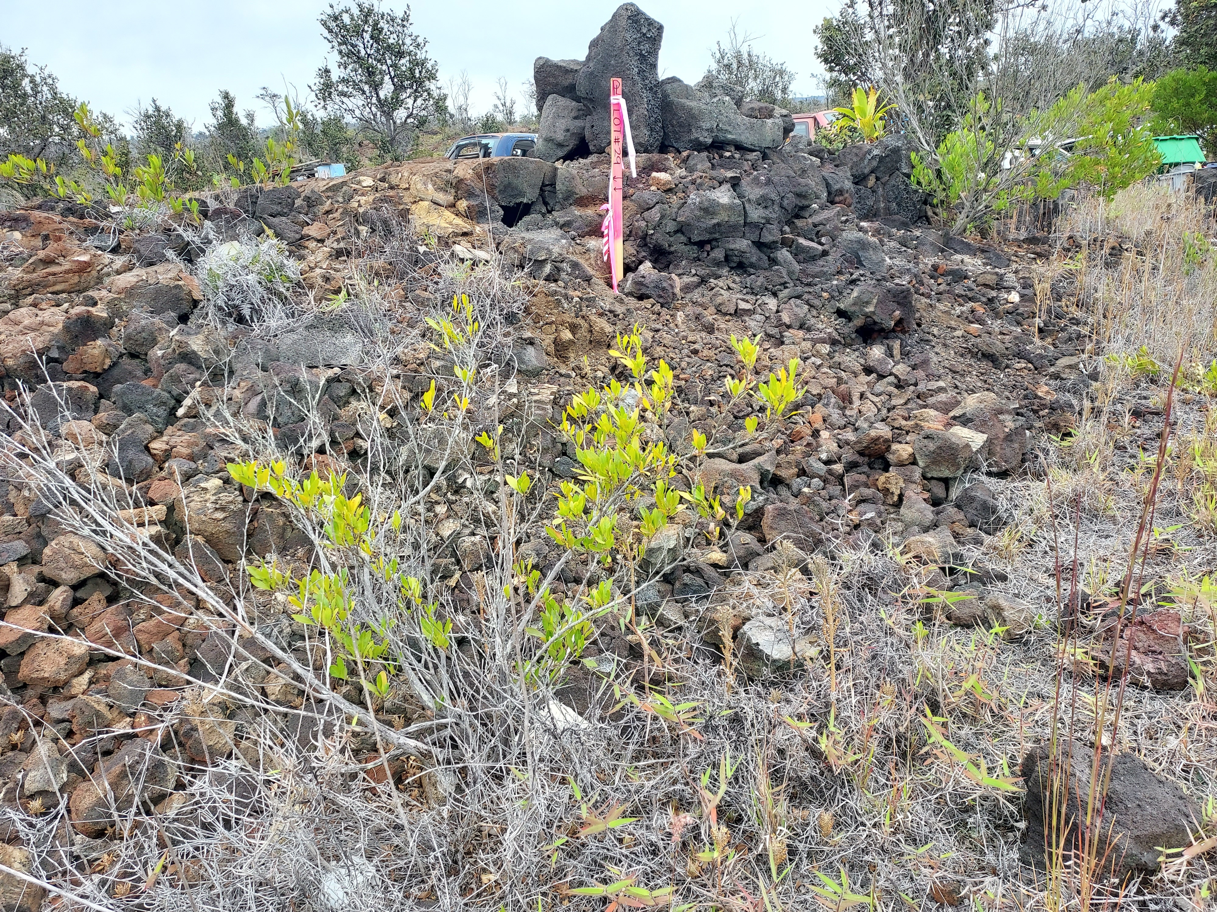 A BEAUTIFUL ROCKY LOT ALREADY STAKED AND READY TO BUILD. LOT IS LOCATED A FEW STREETS FROM THE TOP OF THE SUBDIVISION ON GOOD PAVED ROAD. SMALL OHIA TREES WITH RED LEHUA BLOSSOMS ADORN THIS PROPERTY. A GORGE AT THE BACK OF THE PROPERTY WITH THE BOUNDARY LINES BEYOND ON THE FLAT SURFACE. RECENT K-1 STAKING COMPLETED AND ALL BOUNDARY PINS ARE VISIBLE. AN OFF GRID LIFE STYLE OPPORTUNITY. SHORT DRIVE TO THE TOWN, POST OFFICE, RESTAURANT, STORES AND HARDWARE. SUBDIVISION IS LOCATED BETWEEN HILO AND KONA. ONE OF THE MOST AFFORABLE LOCATIONS ON THE BIG ISLAND. $25.00 TRANSFER FEE AND $155.00 YR ROAD MAINTENANCE FEE. GO TO WWW.HTTPS://HOVEROAD.COM FOR MORE INFORMATION
