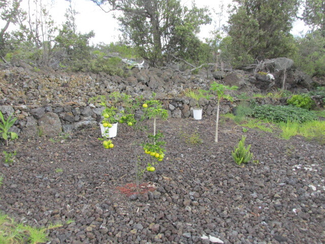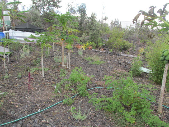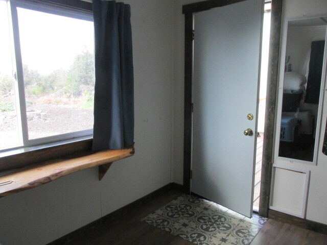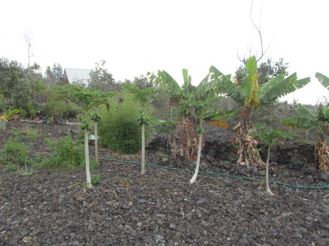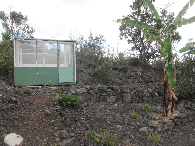 A great little home with 1 bed 1 bath - with a possible 2nd bedroom with a little work. Multiple buildings are enjoined by decking and are built to code. Kitchen / living room is open living. Separate bedroom has excellent water views. Bathroom building is clean, white and bright with full tub/shower and 2 showerheads. Fourth building is storage, but can be converted to a 2nd bedroom with a little work. Very well built with windows for natural light. A fifth building is storage - garden tools, etc. Extensive garden areas - including papaya, banana, avocado, pineapple, potatoes, tomatoes and apples. There are potted dates and bamboo. Encircling the home are lilikoi, orange, tangerine, mulberry and lots of different herbs. Home is on 2 acres, fully fenced with gate at the street. Each acre is 70 x 623 and it is not a combined lot. Power is by solar panels. Water catchment with gutter collection is approx 2300 gallons. Large area dozed. Rock walls are interesting and make great raised beds. Close to town and the highway via Aloha Blvd. Come see what Ocean View has to offer!