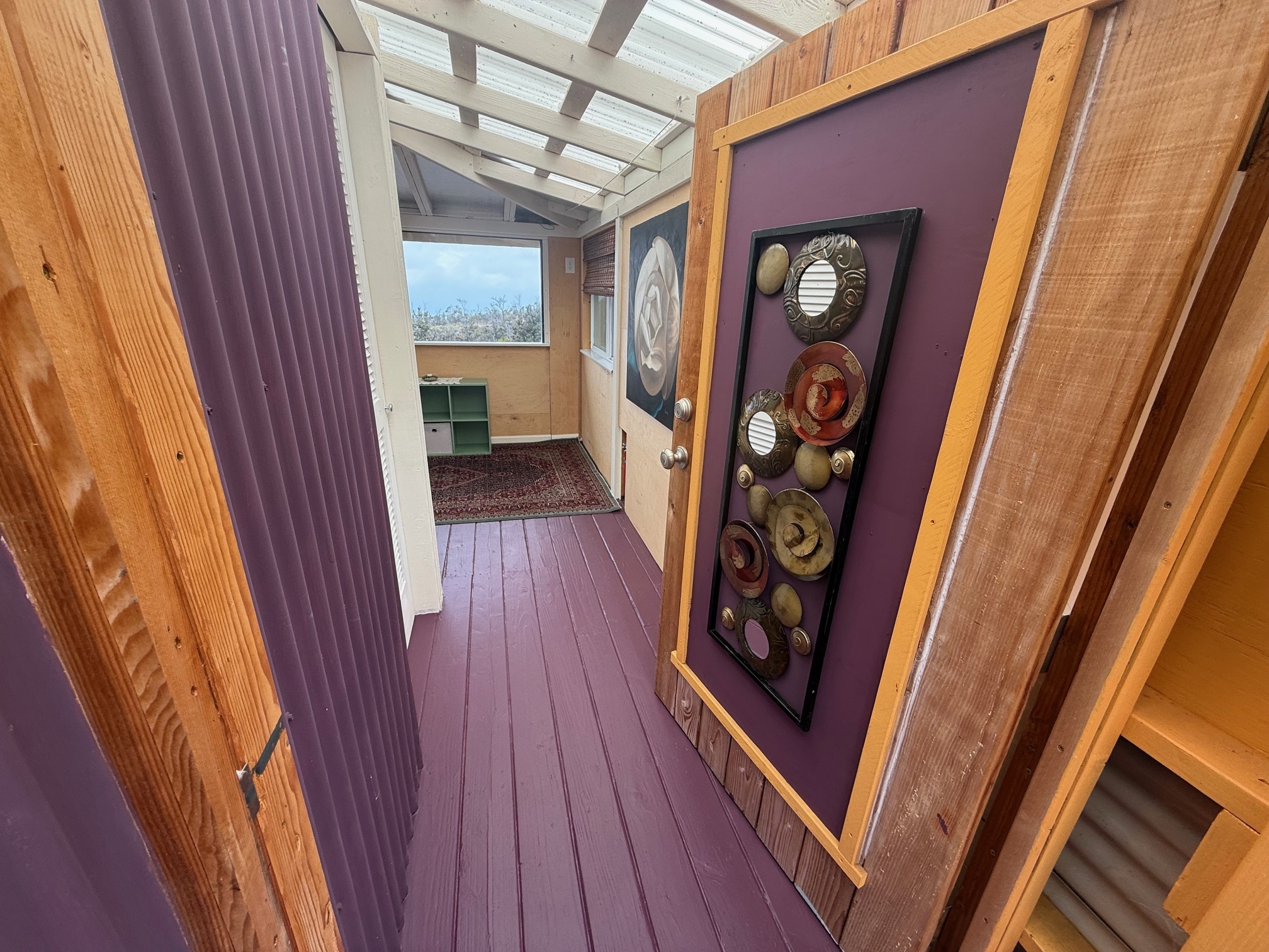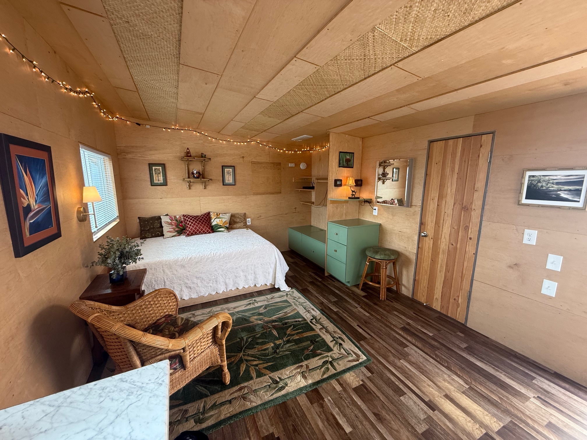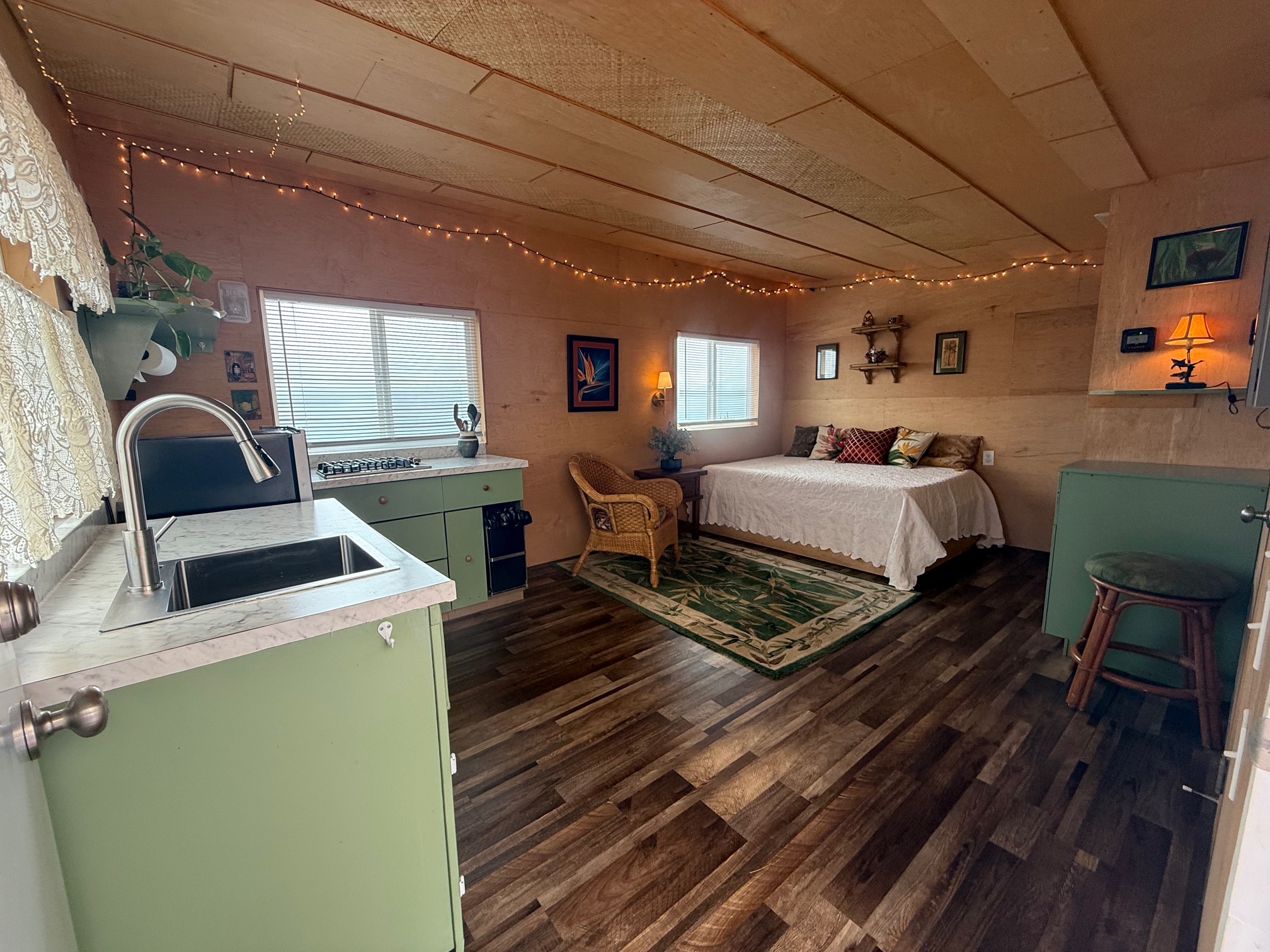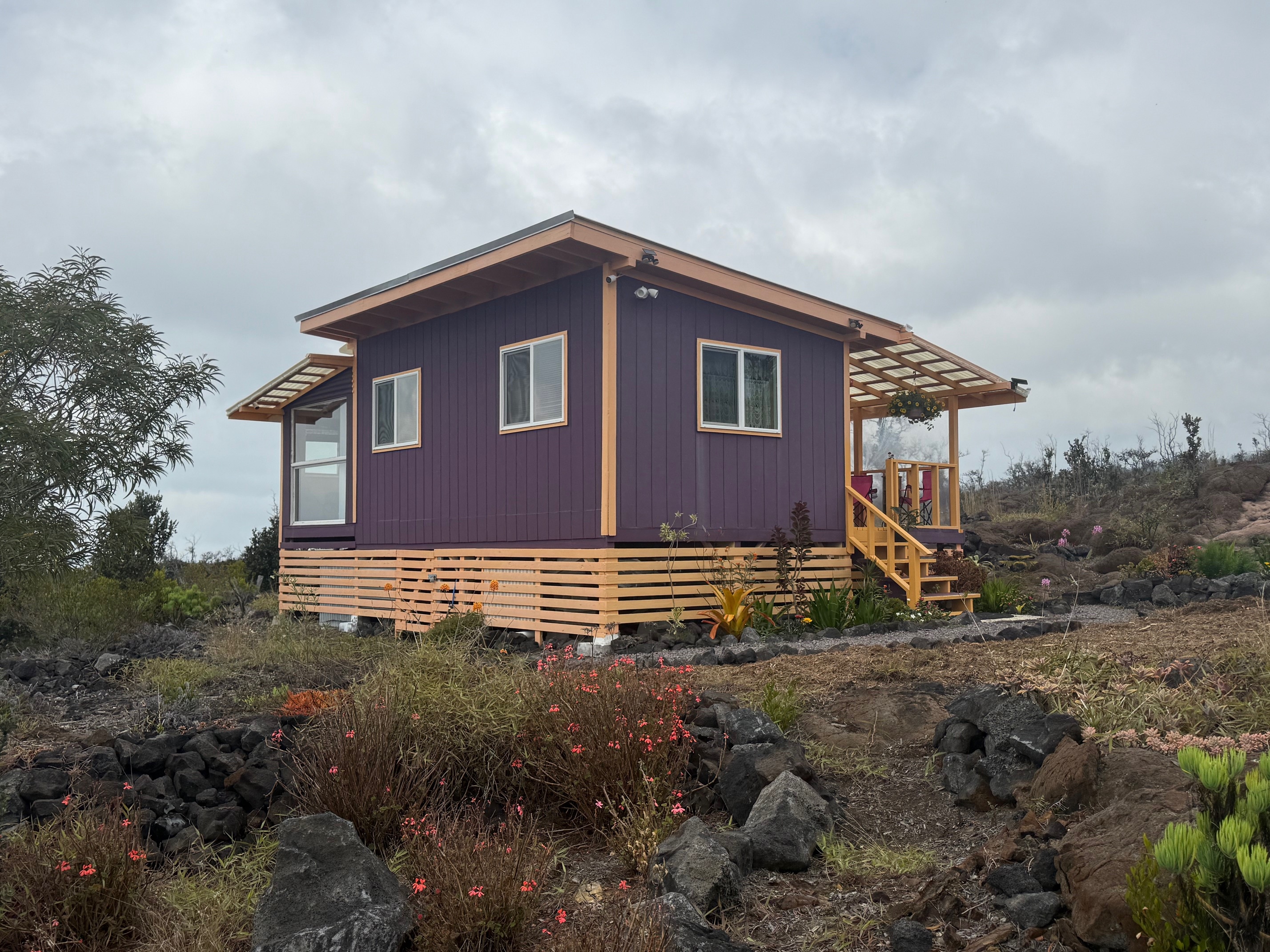 The Main Living Area is 256 sq ft. The Guest Room/Office/Art Studio Adds an Another 188 sq ft and the Lanai 56 sq ft.