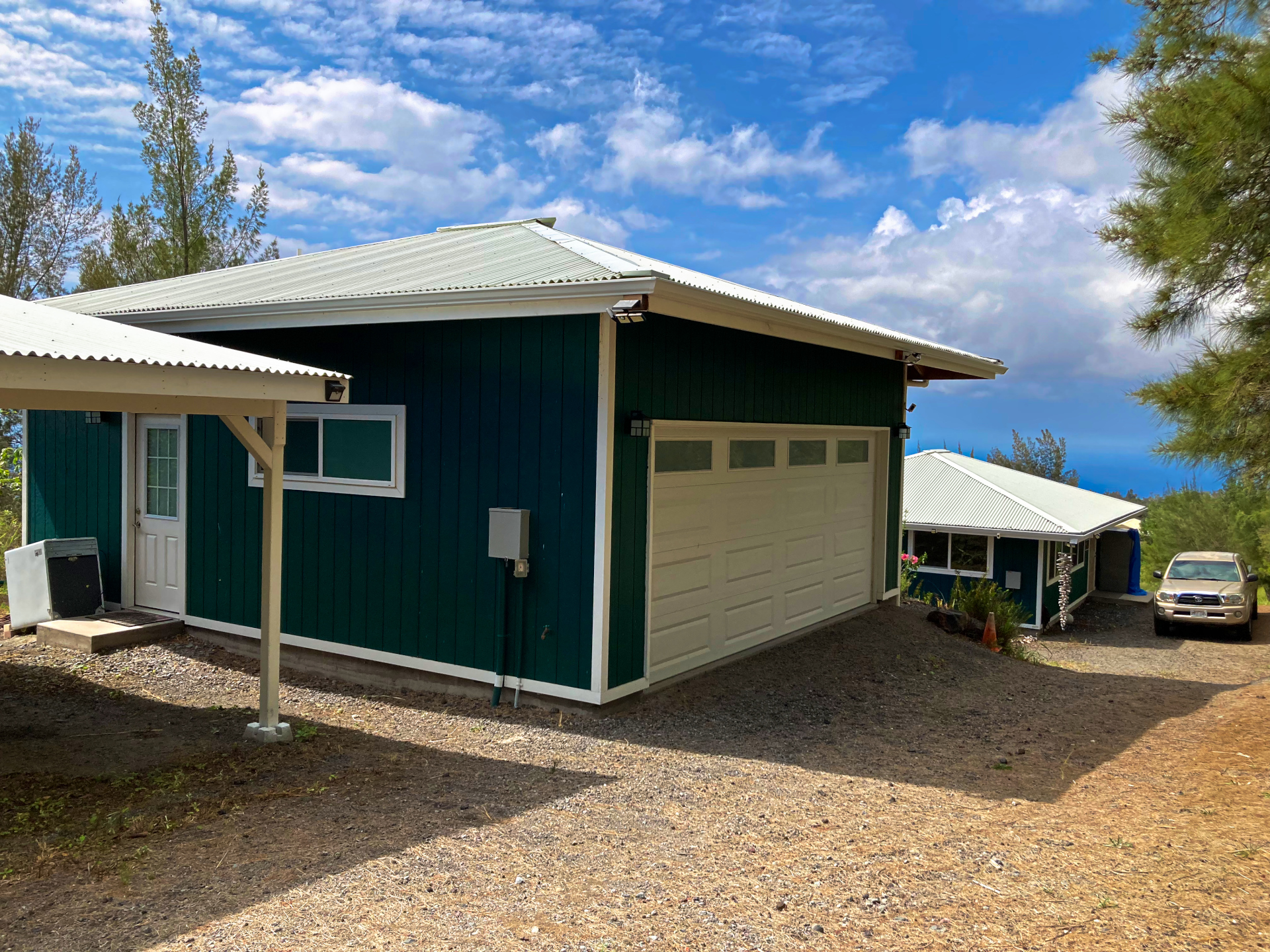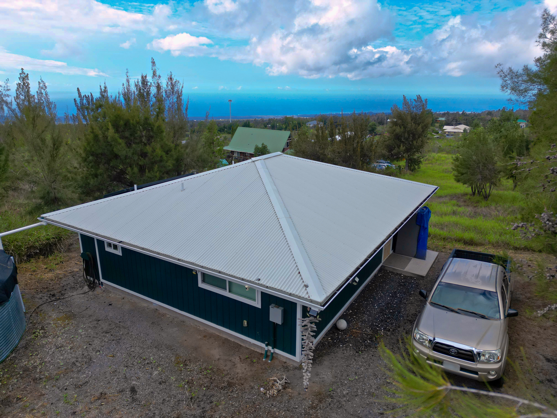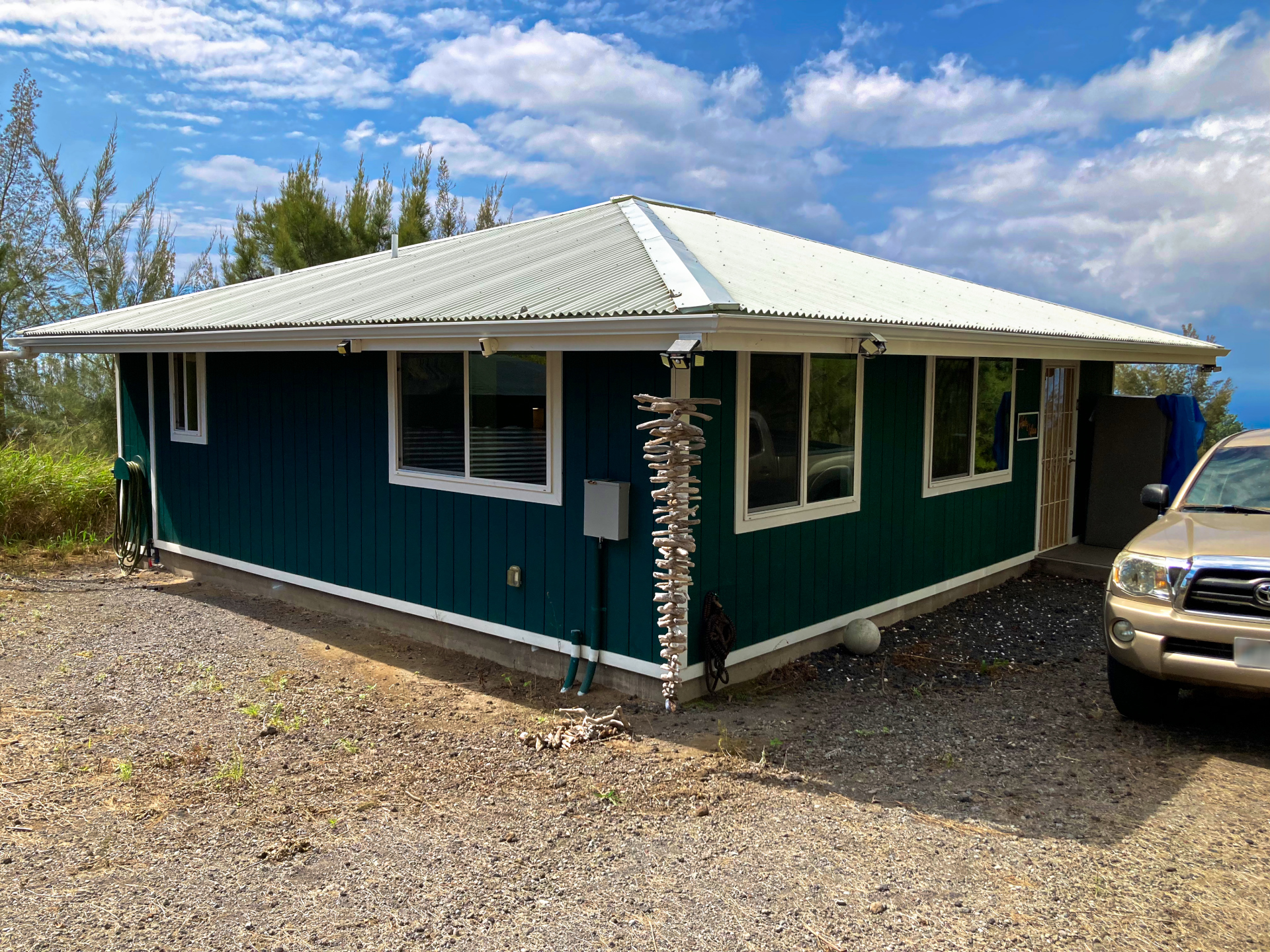The landscaped yard features a fruiting avocado tree, papaya, banana, dragon fruit, hibiscus, and ti plants. Take in ocean and coastline views, including colorful sunsets, from this well-kept property.