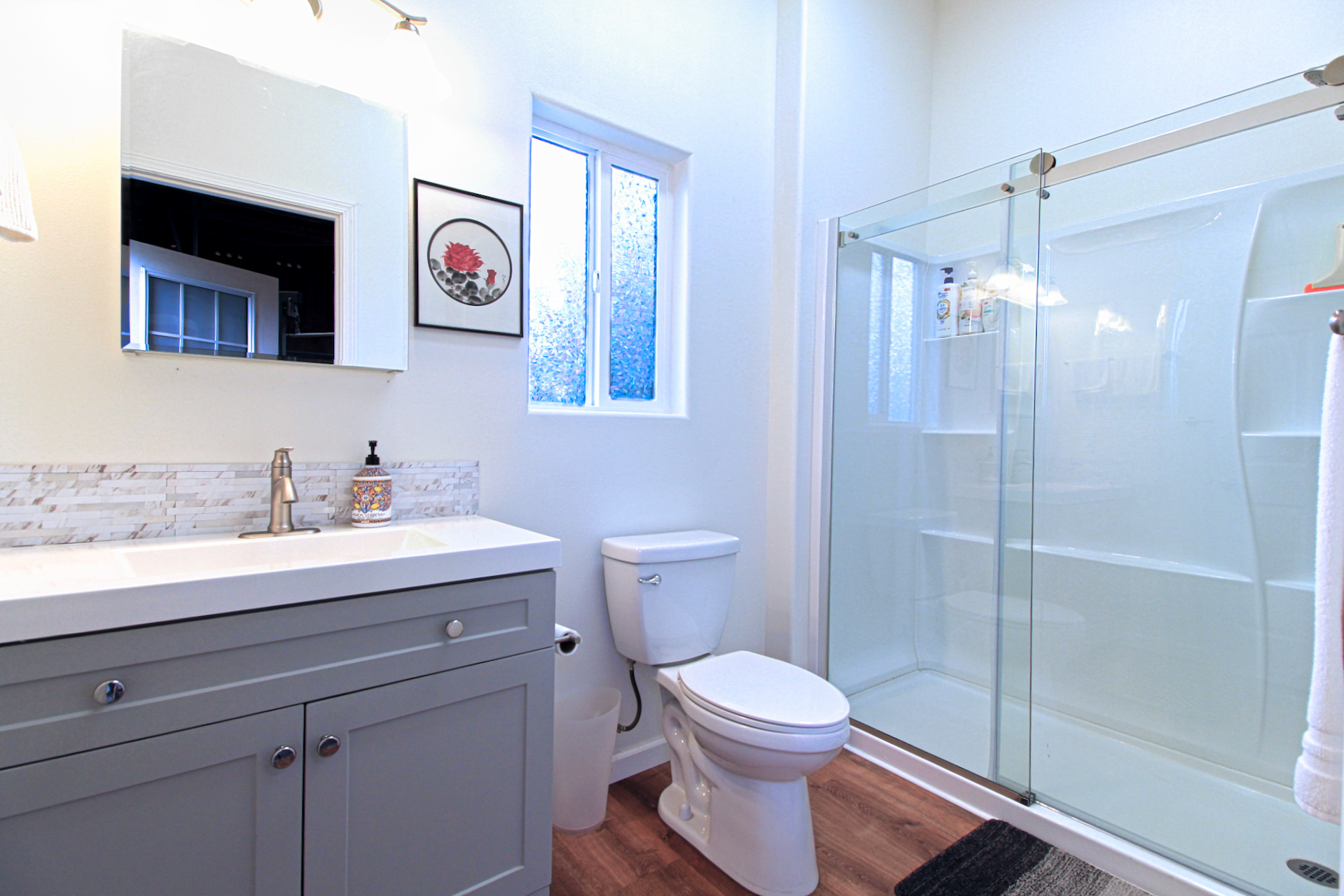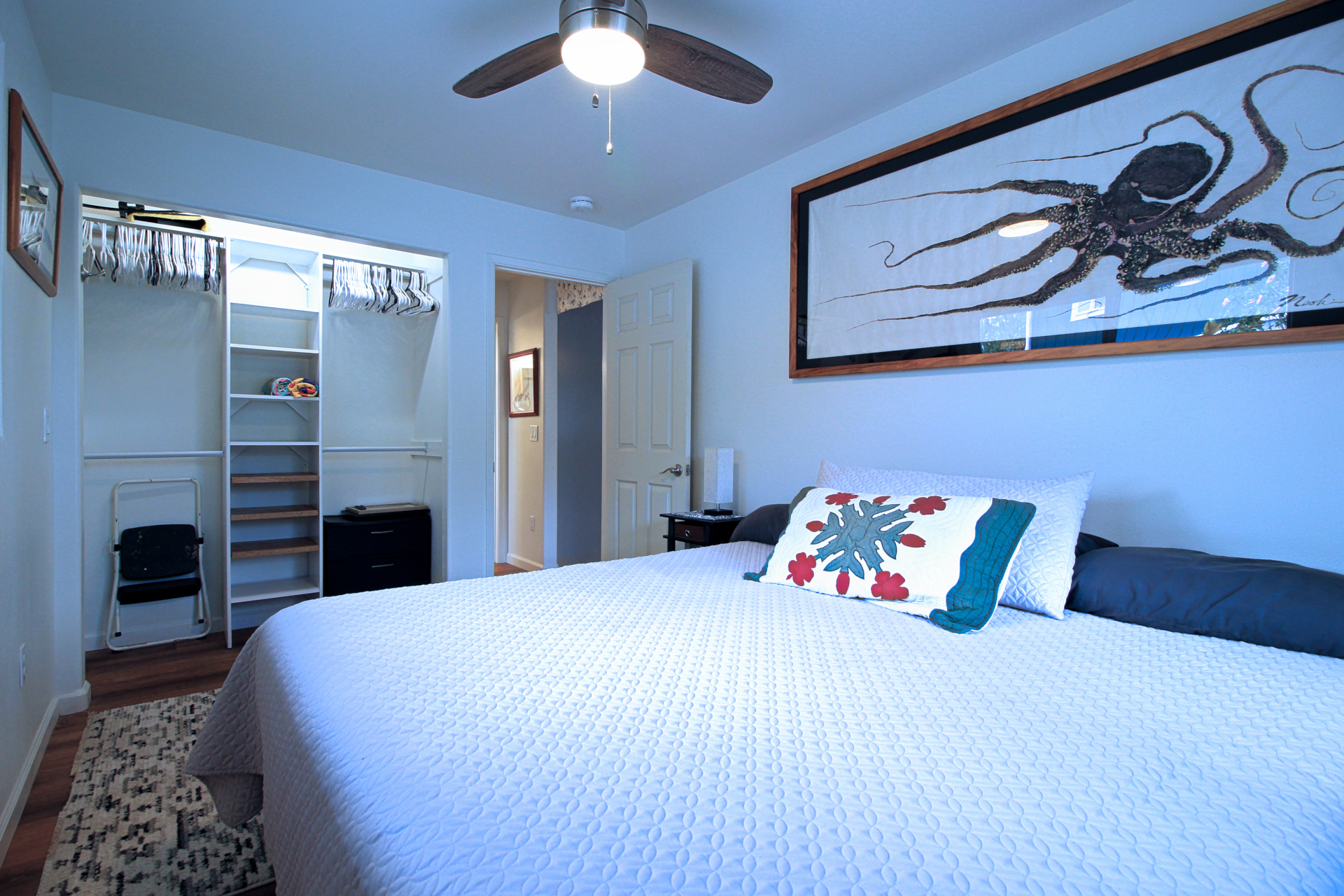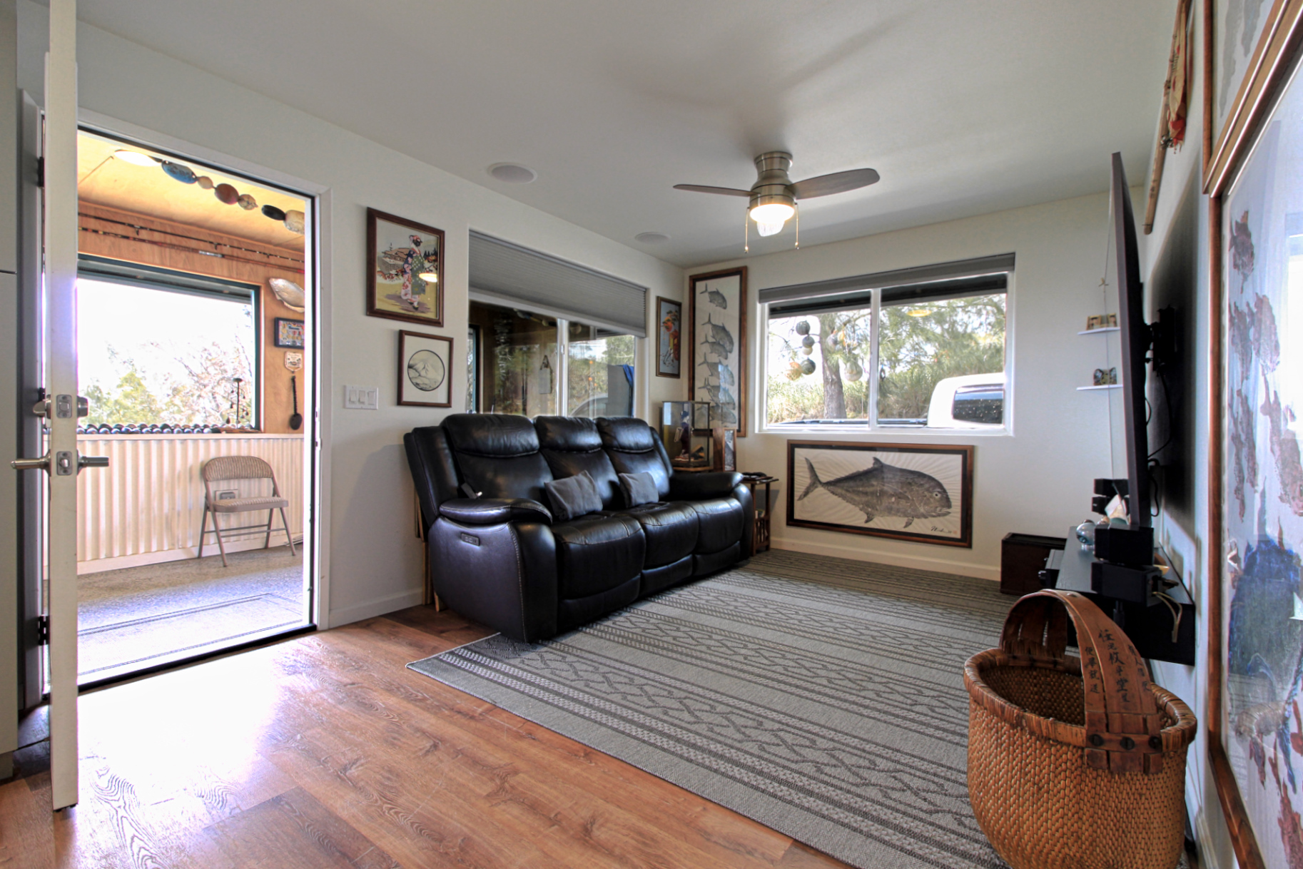 Built in 2021, this thoughtfully designed 1 bed / 2 bath home in Hawaiian Ocean View Estates offers a perfect blend of comfort, function, and modern island living. The open kitchen features quartz countertops, stainless steel appliances, and soft-close cabinetry. Cordless cellular window shades add a clean, contemporary touch throughout.