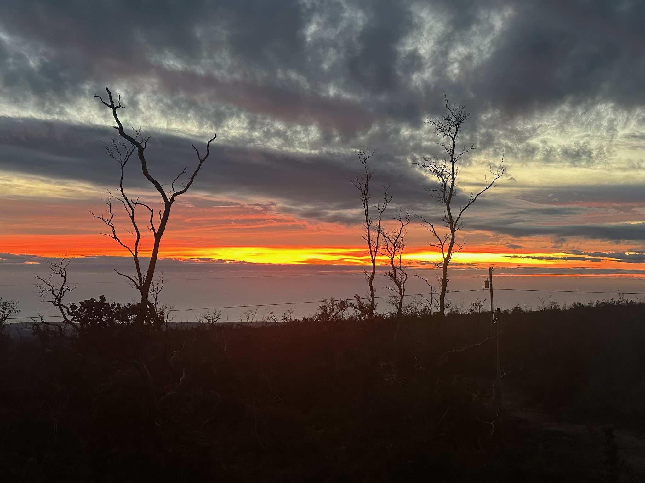 Ditch the humidity and step into the cool air of Koa Lane. The wide acre has been cleared with easy access. This thoughfully designed home features 2 private sleeping areas, 1 modern bathroom and delivers a massive ocean view with a direct line of sight to the South Point coastline. Built in 2015, the structure is optimized for immediate living: a full stainless kitchen, stackable laundry, large lanai for star gazing or enjoying a barbeque. The gentle slope of the lot provides a natural "stadium view" that cannot be blocked. Welcome to a high-tech cabin in a quiet forest setting. No fluff, just a solid build, a full wide acre with plenty of privacy. - Elevation: Approx 2,800 - 3,000 ft (Cooler climate/No A/C needed). - Connectivity: Starlink Dish included/mounted. Great cell phone reception in this area. *Electric power *Rainfall at this elevation to ensure tanks are full *Move in ready! -