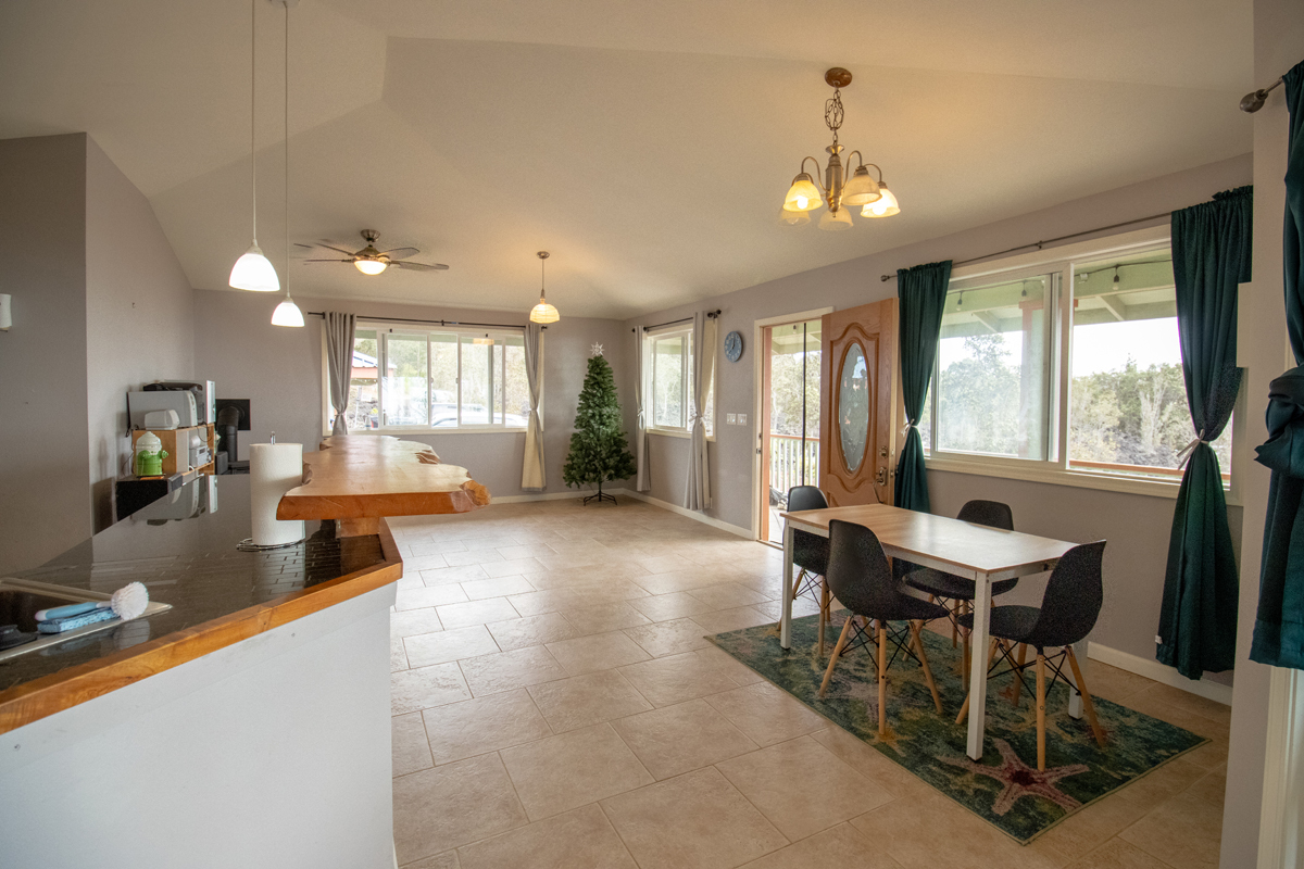 This motivated seller offers a move-in-ready, 3-bedroom, 2-bath HPM open floor plan home, a true gem in Hawaii Ocean View Estates equipped with leased photovoltaic. Perfectly situated on a desirable wide lot, the home boasts spectacular ocean and sunset views from living areas and lanai.