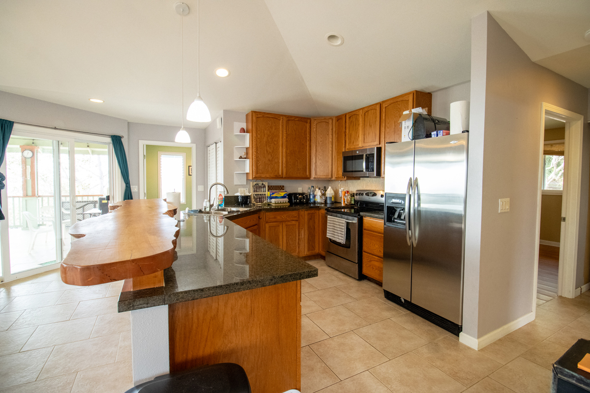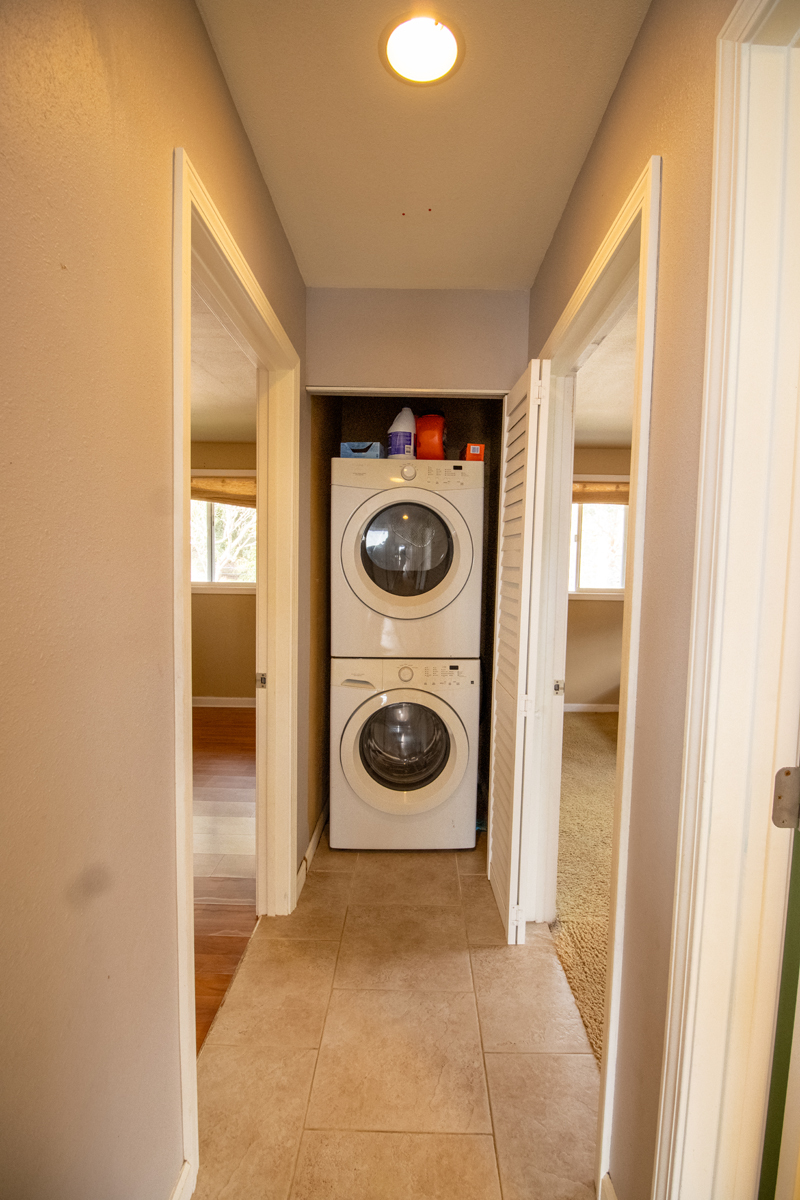 Amenities include a closeted washer and dryer and a large two-car detached garage housing a new water heater and a UV system for the recently updated catchment tank. A fenced dog run is along the back.