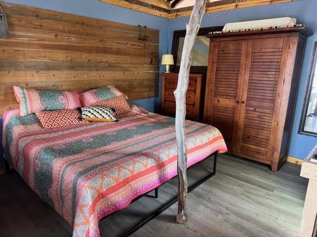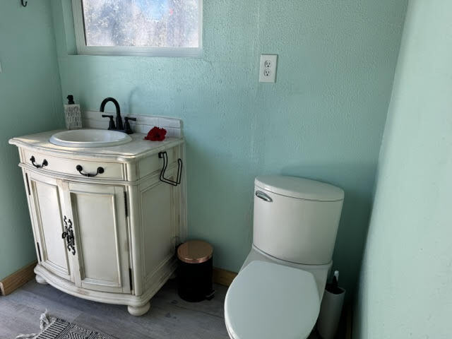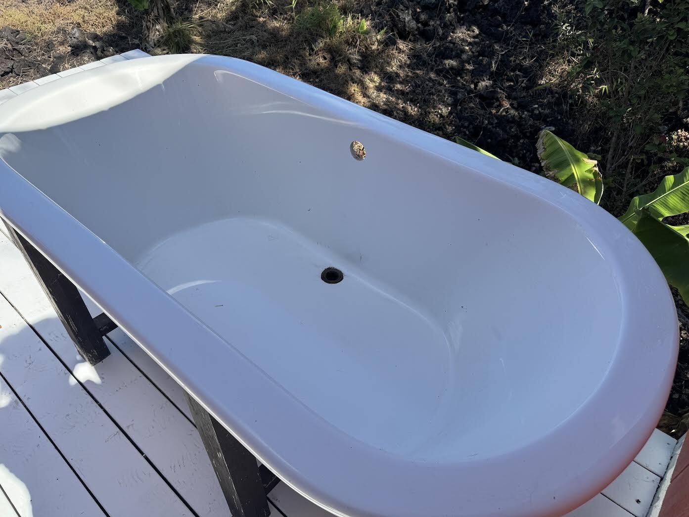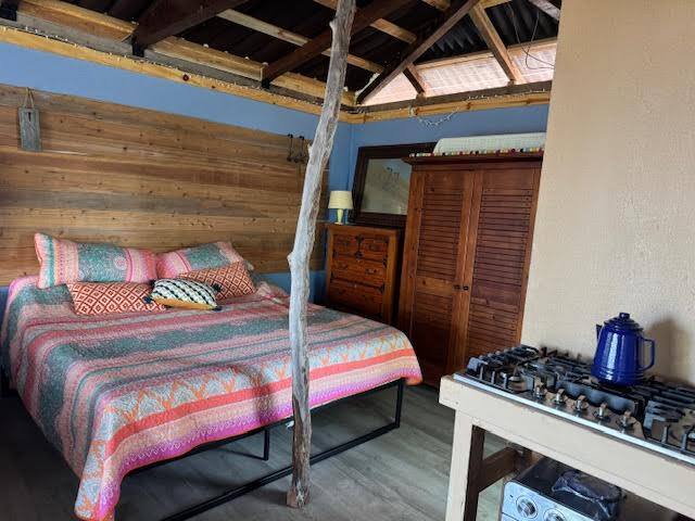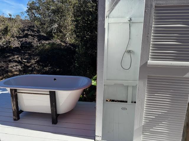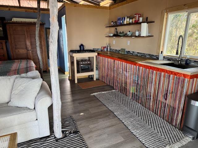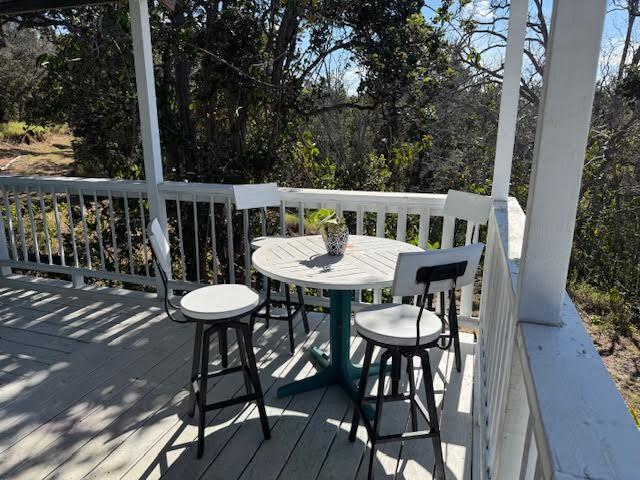 Furnished and move in ready! Lovely cabin in a quiet and serene setting with sunrise and ocean views. One acre terraced parcel with room for another home or structure on the upper level. Kitchen has a five burner gas cooktop and stainless steel farm sink.   The bathroom has faux marble countertops, toilet.