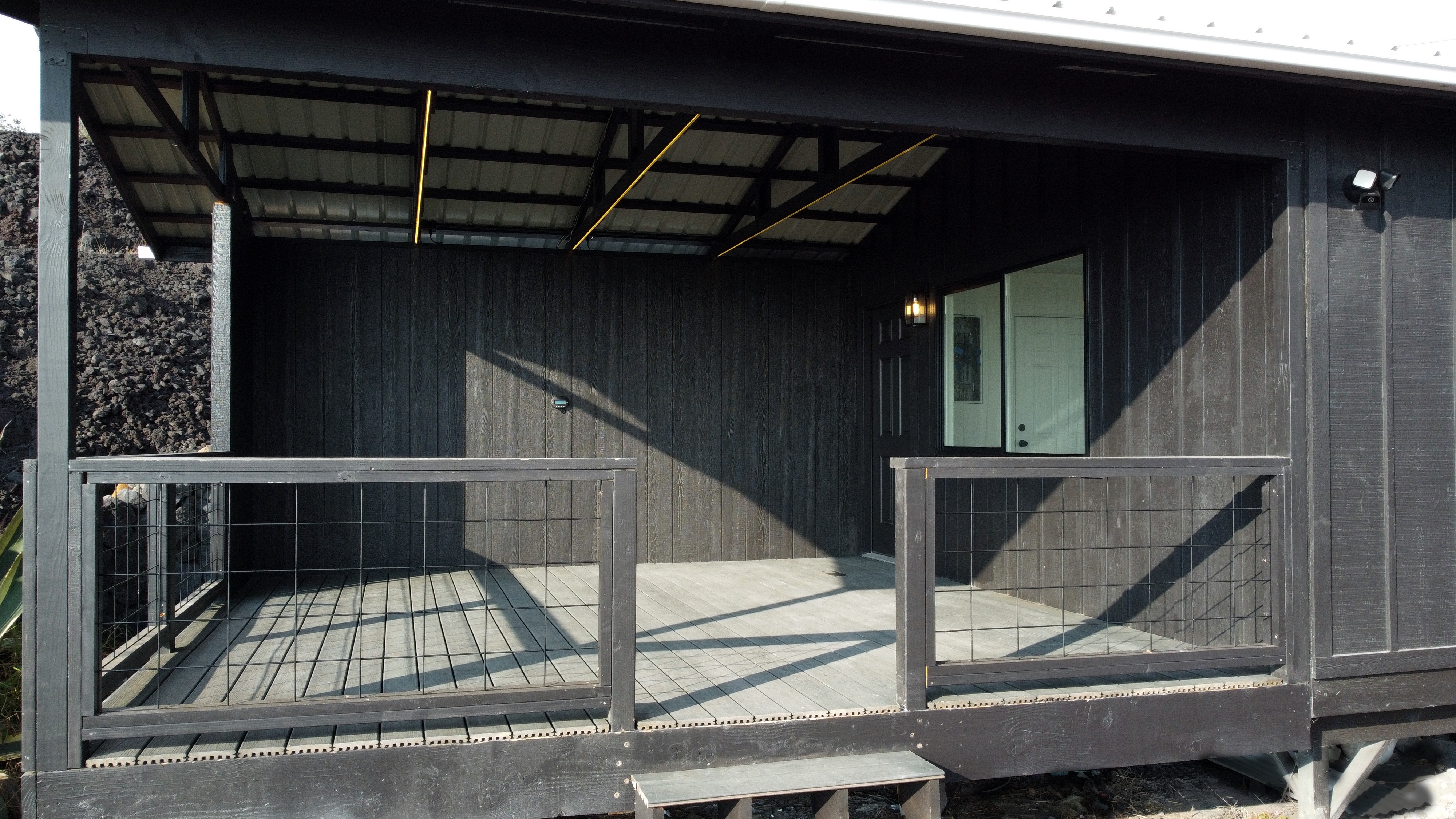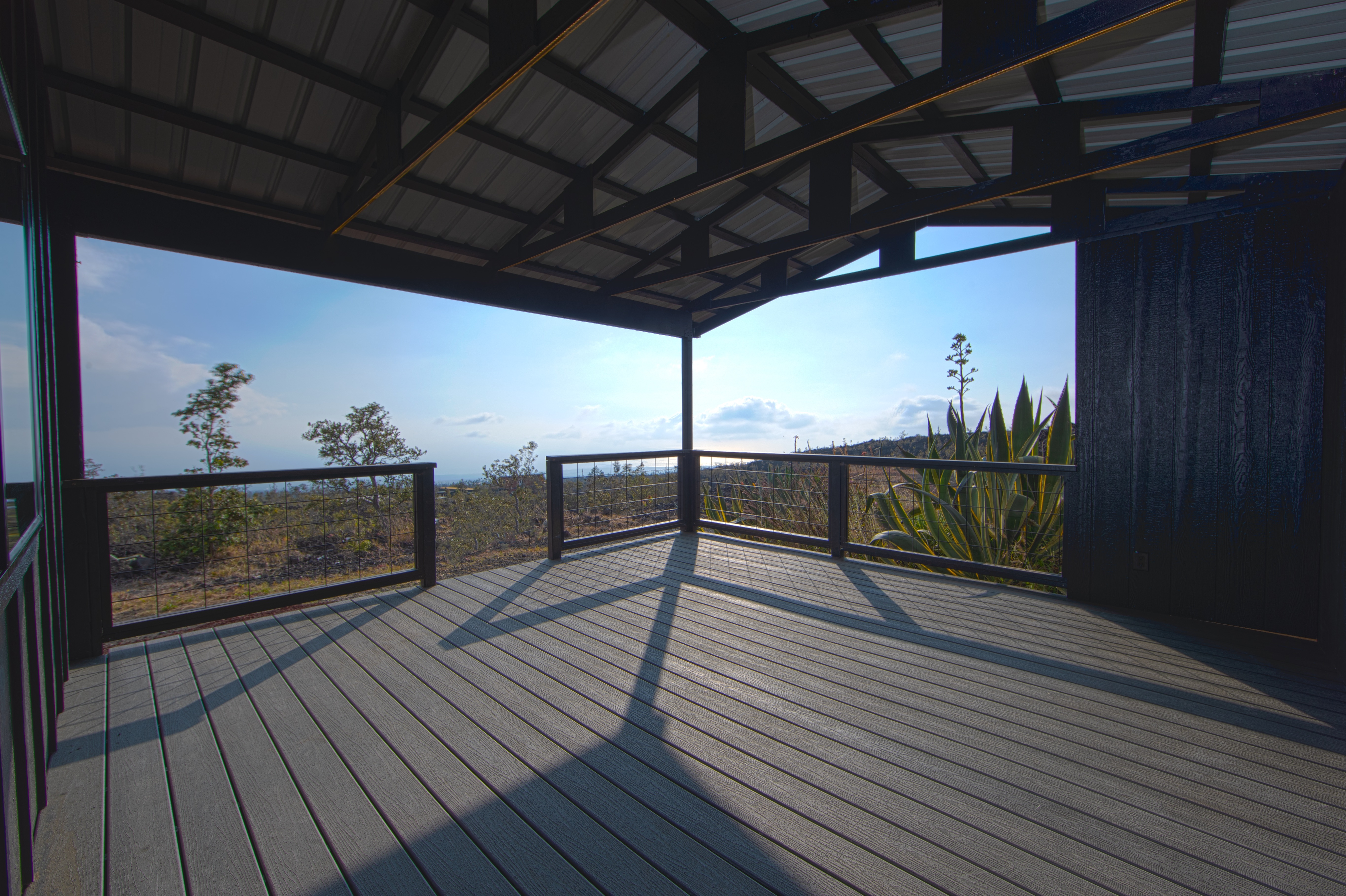 Beautifully remodeled off-grid 1 bedroom, 1 bath home on a very private 1 acre lot. The property has been substantially improved to enhance habitability, durability, and long-term usability. Recent remodel includes a new roof, new flooring, new insulation, new plumbing, new electrical, new drywall, new solar batteries, an added large living room window, and brand new spacious covered lanai (porch). The interior is bright, modern, and comfortable, with sweeping ocean views from the living room, bedroom, and lanai. The kitchen has been updated with stainless steel appliances, and the bathroom offers a clean modern design. Embrace authentic island outdoor living: a clawfoot tub and rainfall shower set among tropical landscaping and a volcanic rock wall. The 256-sq-ft covered lanai (porch) with Trex decking provides an ideal space to enjoy sunrise and sunset ocean views. The property is fully self-sufficient with an Outback solar system, water catchment system, high-speed StarLink internet, and security cameras, offering a blend of modern convenience and off-grid independence in the Ka?u district. Property includes unpermitted structures and is offered as-is. Buyer to verify all details. Sale due to owner relocation and change in circumstances