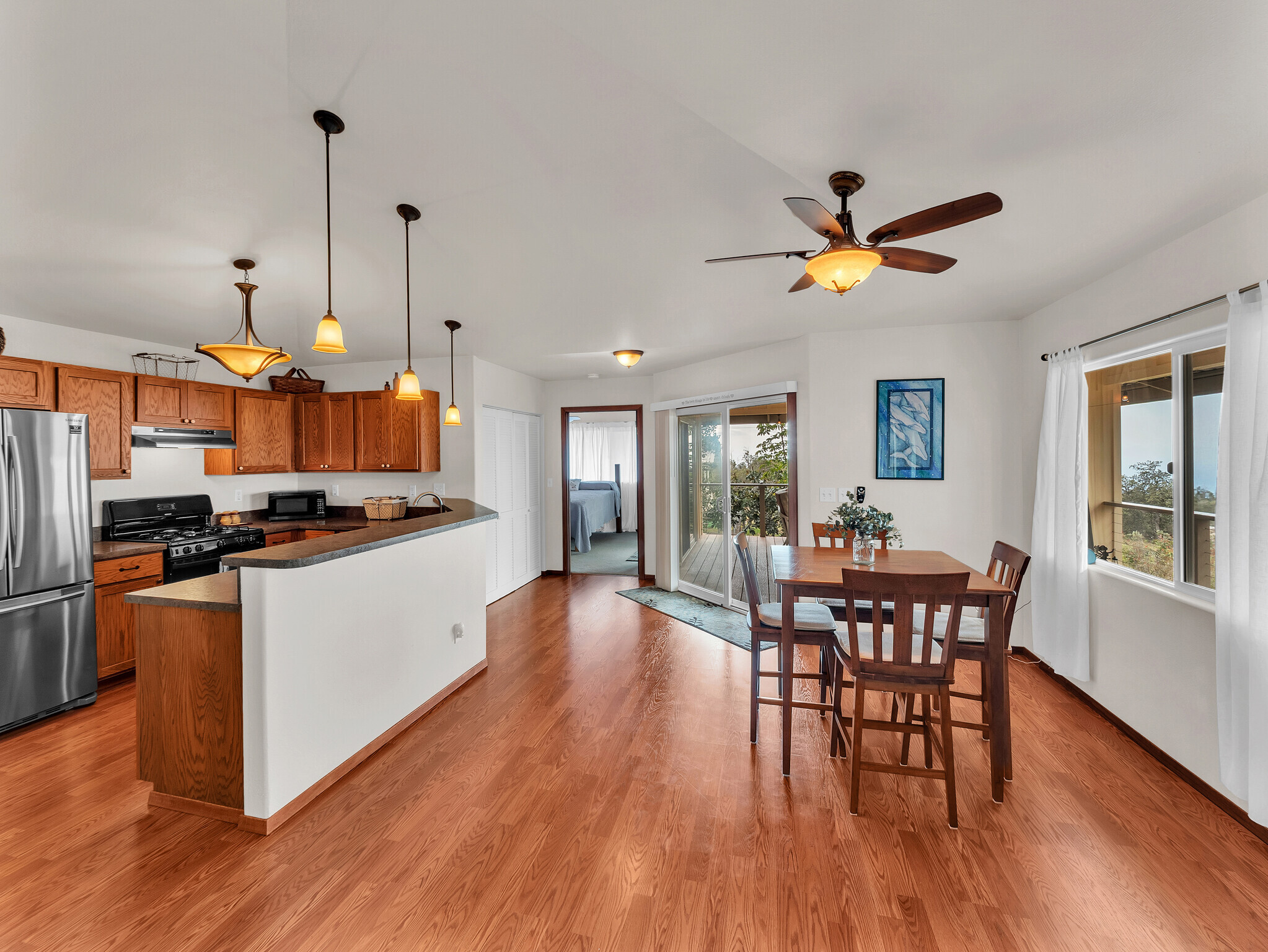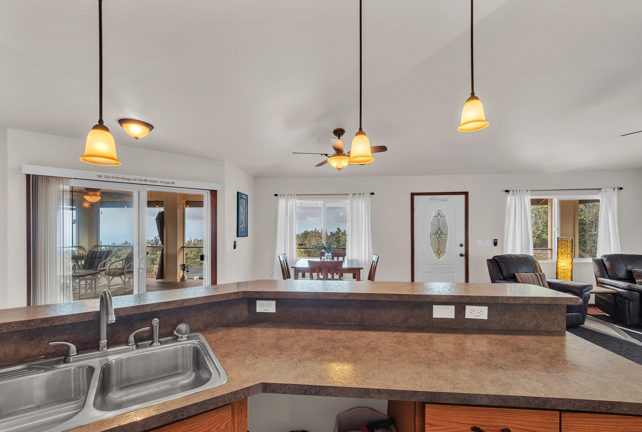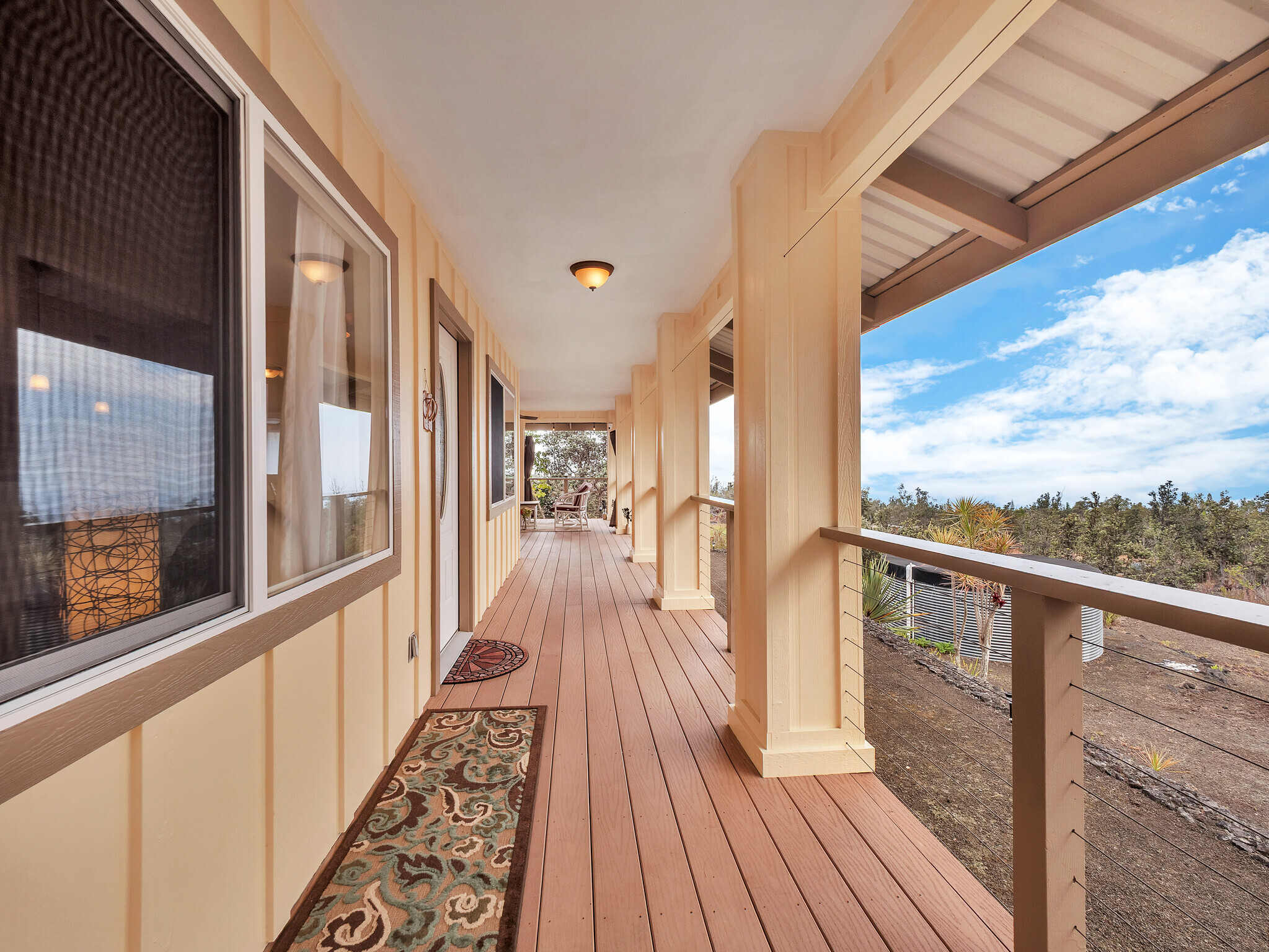 Turnkey 3-bedroom, 2-bathroom home located in Hawaiian Ocean View Estates. This well-maintained residence sits on a full one-acre lot with thoughtfully designed landscaping that enhances privacy and usability. Enjoy expansive ocean views with breathtaking sunrise and sunset vistas from the spacious Lani .The Lani railing is built with durable rust prof marine grade wiring, great for safety while offering a beautiful ascetic touch. The home offers a functional floor plan ideal for full-time living or a second residence. Conveniently located within the subdivision with easy access to main roads, local amenities, and the natural beauty of the surrounding area 92-9145 Leilani Parkway 1 acre lot behind home is also for sale MLS # 727492