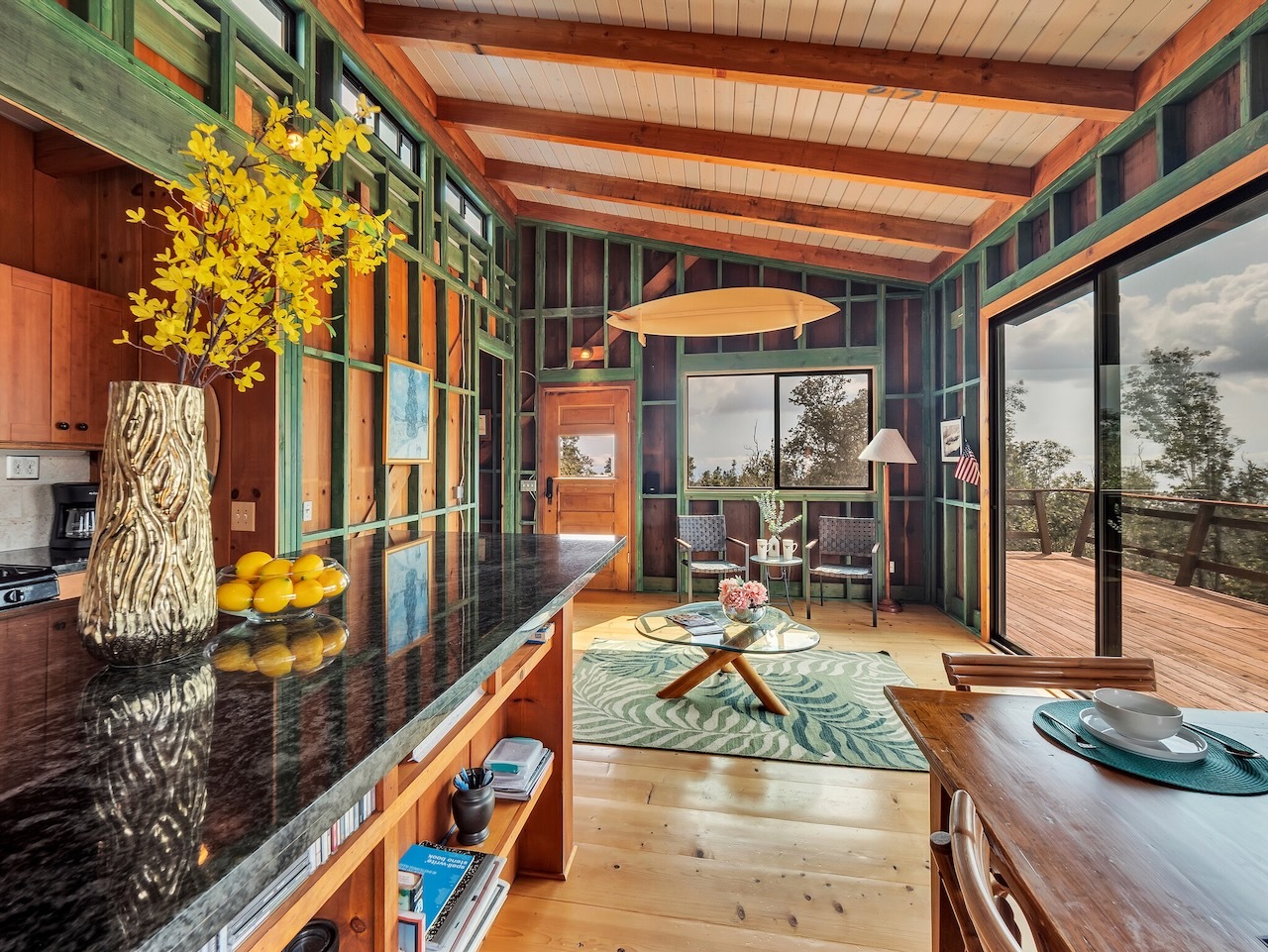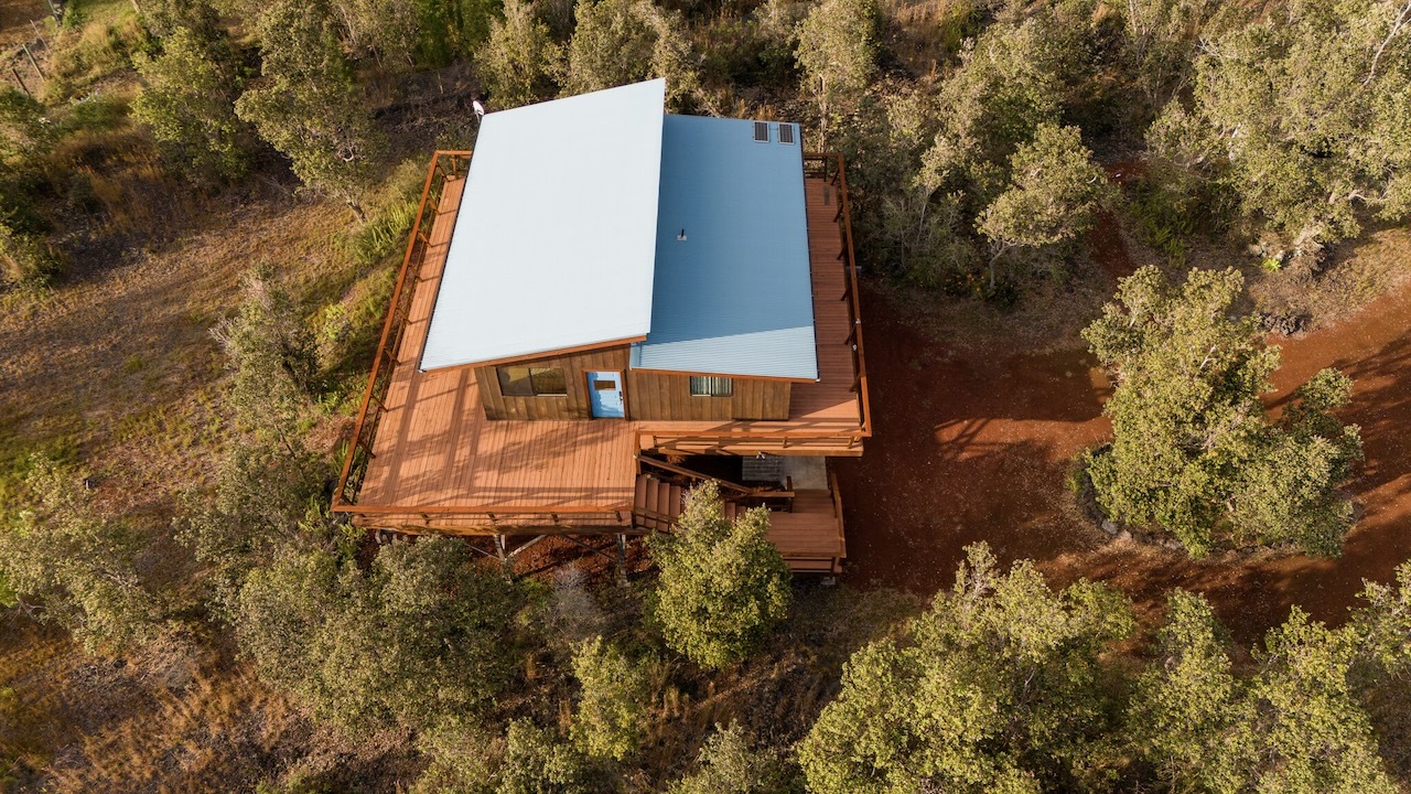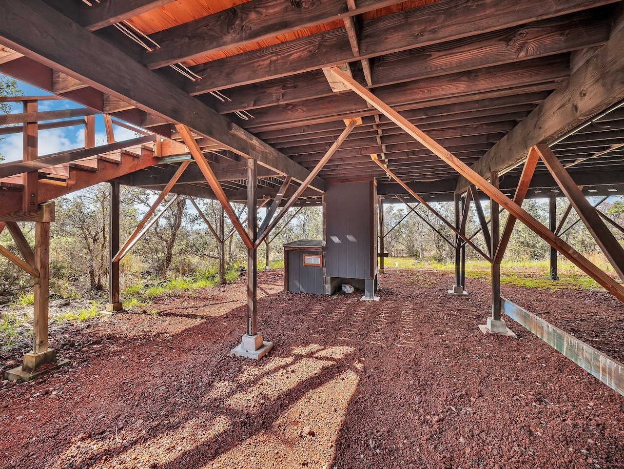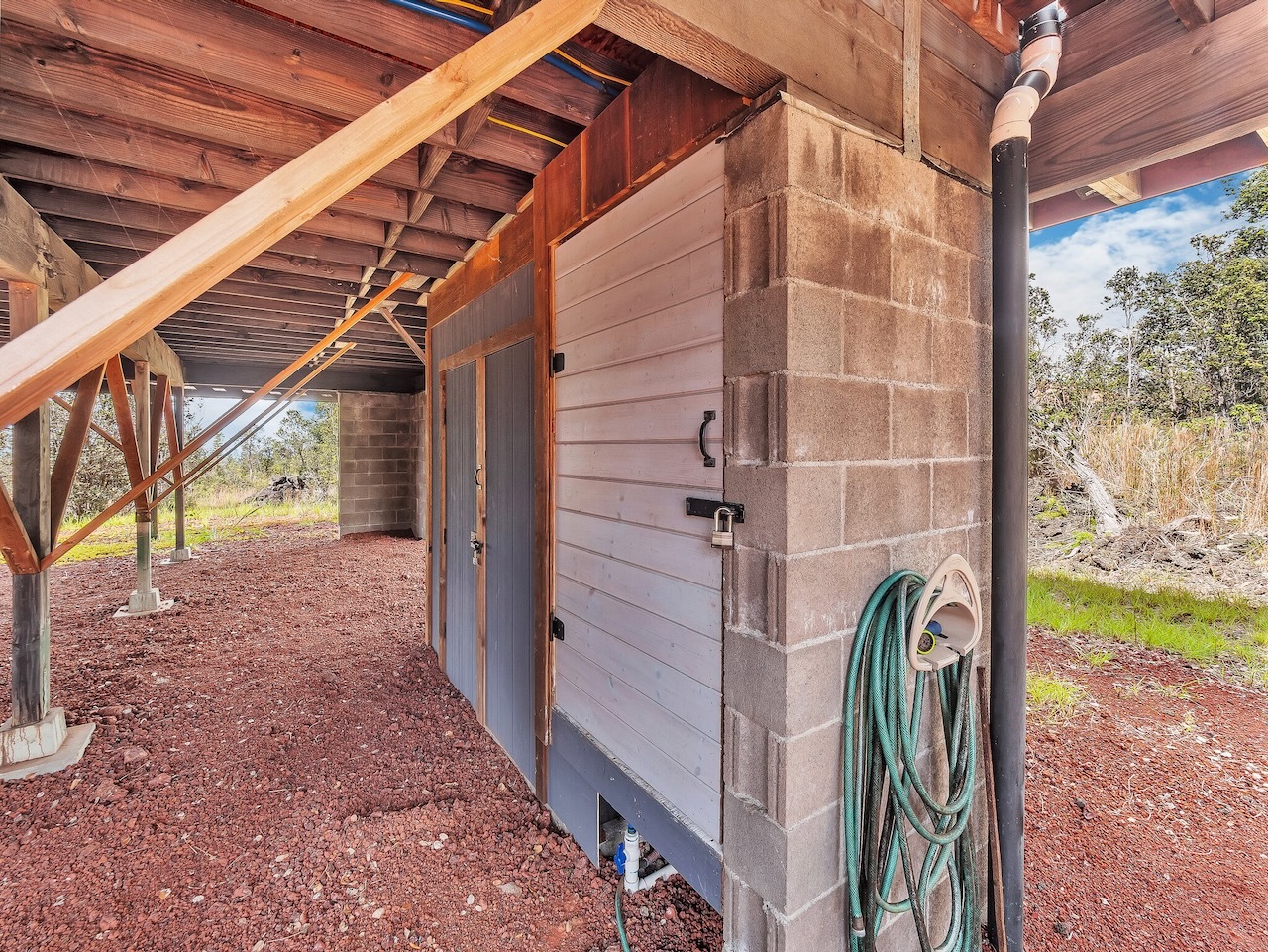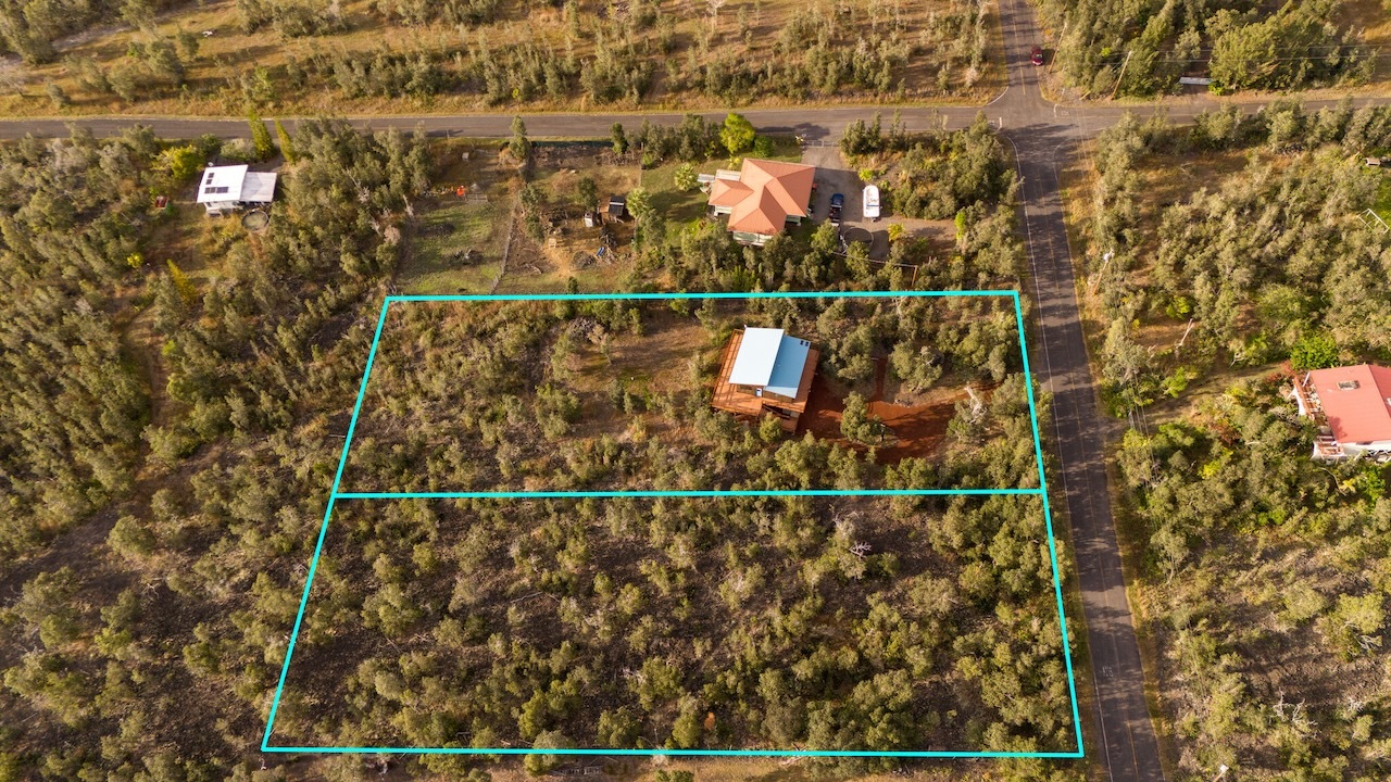 Beautifully crafted and full of character, this exceptional home offers privacy, ocean views, and old Hawai?i charm in a highly desirable area of Ocean View. Built with old-growth Northern California redwood–naturally termite resistant–the home features a one-of-a-kind front door reclaimed from a 1905 Victorian home in Manhattan Beach. An impressive Tiki (The God of Light) greets you upon entry. Inside, soaring ceilings and a spacious living area create an open, airy atmosphere. Soft pine flooring sourced from Northern CA and hand-milled in Hawaii adds warmth and authenticity throughout. The kitchen features a large island ideal for gatherings. Built-in shelving and two pedestal sinks in the bathroom add both charm and functionality. Enjoy stunning ocean views from the expansive wrap-around deck–recently repaired and painted–perfect for sunsets, entertaining, or simply taking in the lush, green surroundings. The redwood siding has been recently stained, and a new driveway gate enhances privacy and curb appeal. Set among old-growth ?Ohi?a trees in a quiet, peaceful setting, this off-grid property offers self-sufficient living with power supplied by a gas generator. The SSPP has been paid in full. The home is thoughtfully positioned for privacy while remaining part of a highly sought-after Ocean View neighborhood. The bathroom is currently accessed from the exterior, though it could easily be renovated to allow interior access from both bedrooms, offering future flexibility. Gas, groceries, restaurants, hiking, and beaches are nearby–offering convenience without sacrificing tranquility. A truly special offering combining craftsmanship, serenity, and island living. Property is sold together with the adjacent lot, actively listed as MLS 726865. $310k price includes both lots.