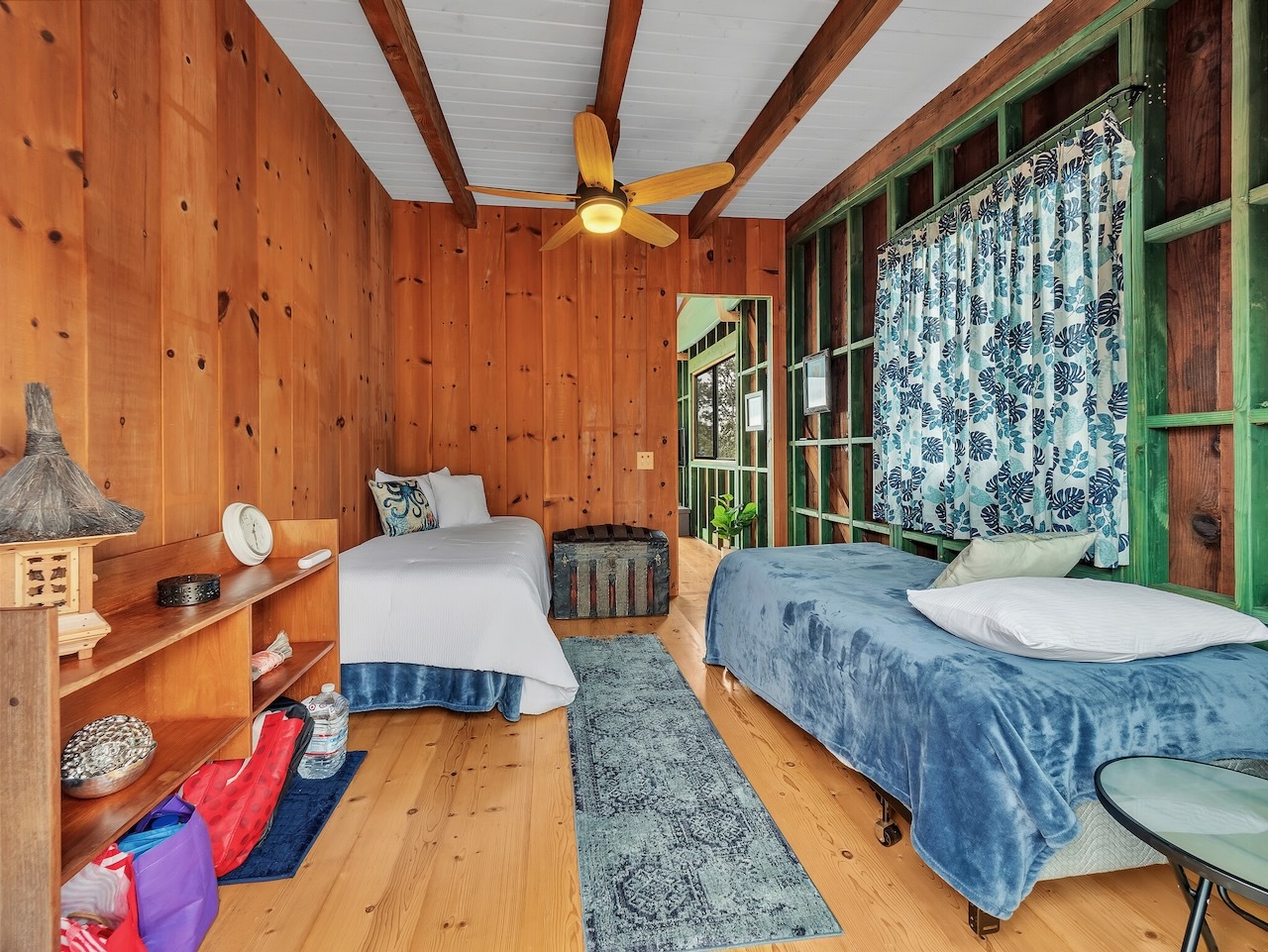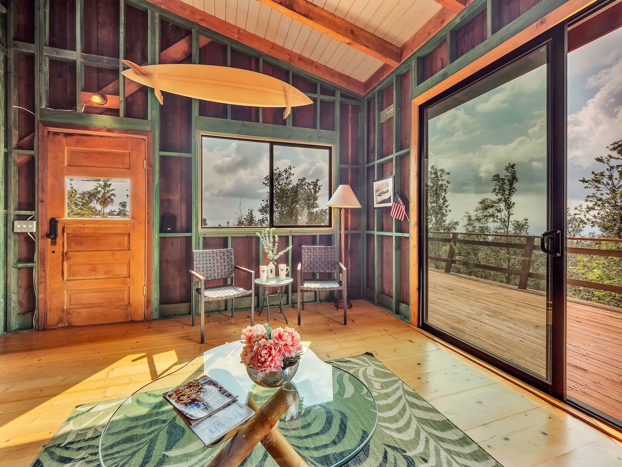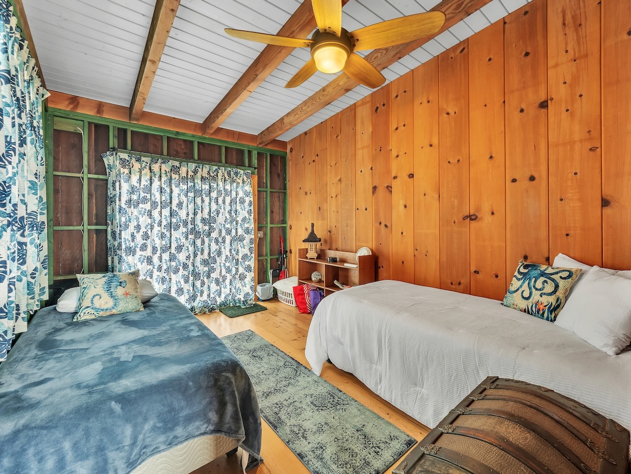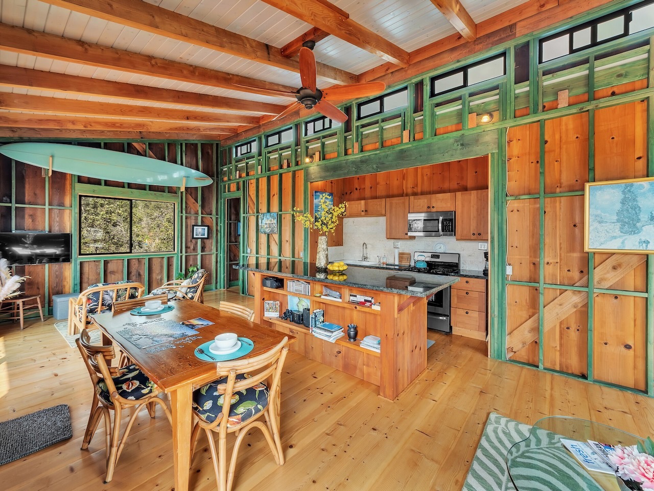 Beautifully crafted and full of character, this exceptional home offers privacy, ocean views, and old Hawai?i charm in a highly desirable area of Ocean View. Built with old-growth Northern California redwood–naturally termite resistant–the home features a one-of-a-kind front door reclaimed from a 1905 Victorian home in Manhattan Beach. An impressive Tiki (The God of Light) greets you upon entry. Inside, soaring ceilings and a spacious living area create an open, airy atmosphere. Soft pine flooring sourced from Northern CA and hand-milled in Hawaii adds warmth and authenticity throughout. The kitchen features a large island ideal for gatherings. Built-in shelving and two pedestal sinks in the bathroom add both charm and functionality. Enjoy stunning ocean views from the expansive wrap-around deck–recently repaired and painted–perfect for sunsets, entertaining, or simply taking in the lush, green surroundings. The redwood siding has been recently stained, and a new driveway gate enhances privacy and curb appeal. Set among old-growth ?Ohi?a trees in a quiet, peaceful setting, this off-grid property offers self-sufficient living with power supplied by a gas generator. The SSPP has been paid in full. The home is thoughtfully positioned for privacy while remaining part of a highly sought-after Ocean View neighborhood. The bathroom is currently accessed from the exterior, though it could easily be renovated to allow interior access from both bedrooms, offering future flexibility. Gas, groceries, restaurants, hiking, and beaches are nearby–offering convenience without sacrificing tranquility. A truly special offering combining craftsmanship, serenity, and island living. Property is sold together with the adjacent lot, actively listed as MLS 726865. $310k price includes both lots.
