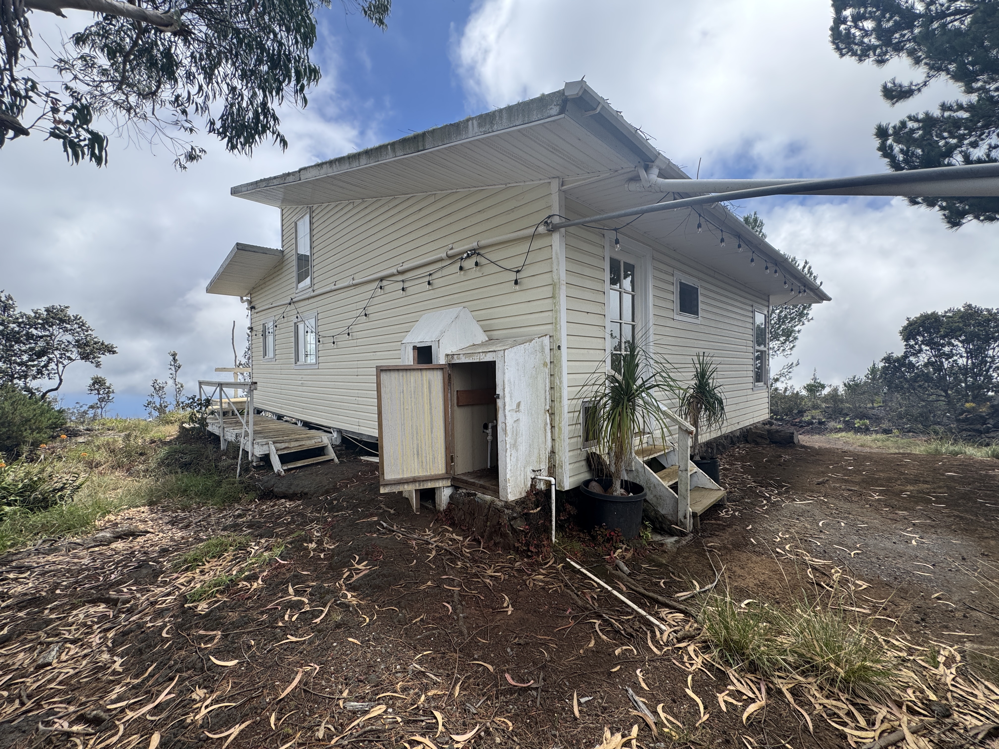This property features Ohia trees among scenic lava rock and a gated entrance for added privacy. The unpermitted home offers great potential to build your ideal retreat. Portions of the front stairs and side lanai are unsafe and may present a hazard; all visitors must exercise caution. Seller and sellers agents assume no liability.