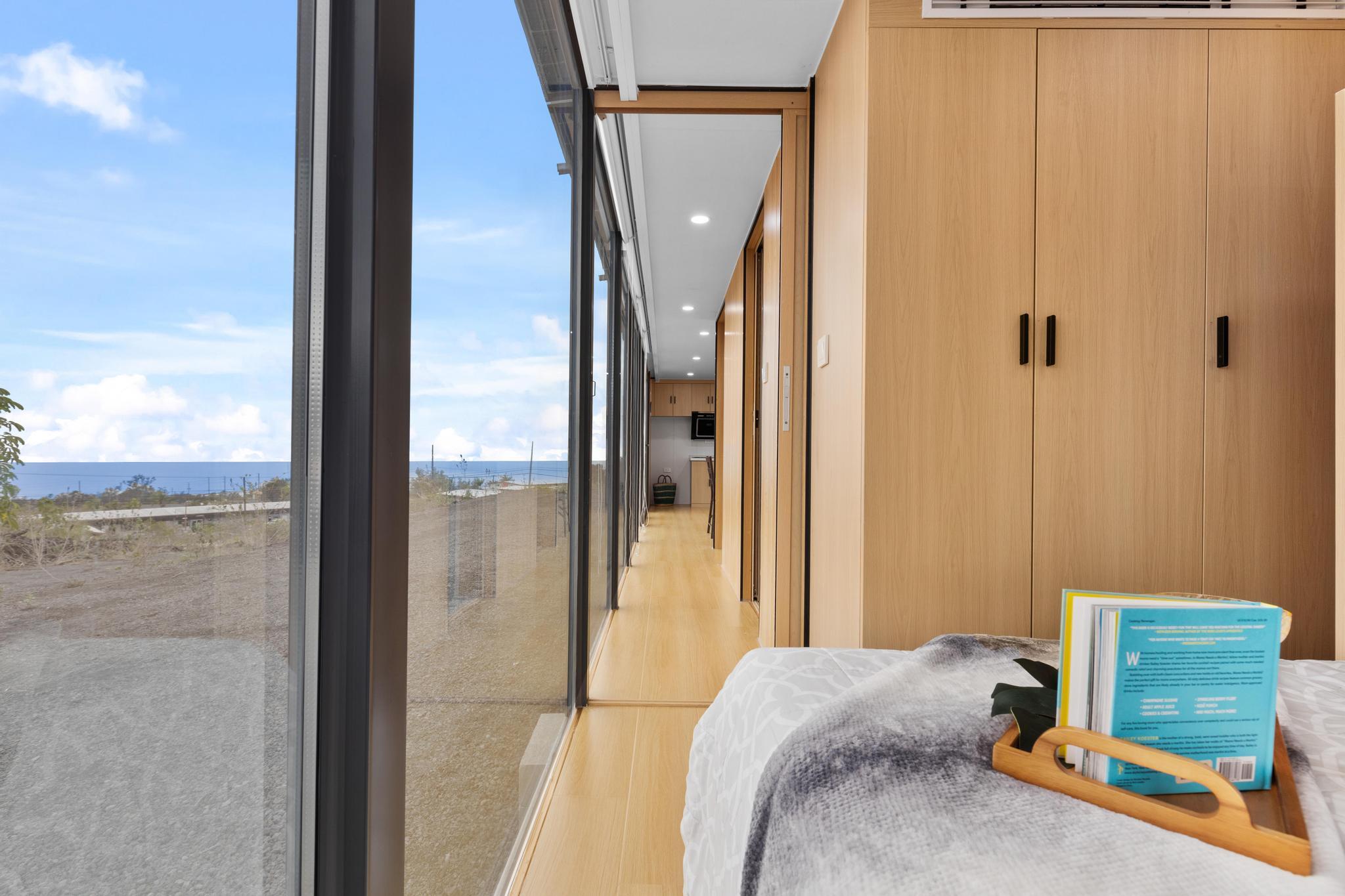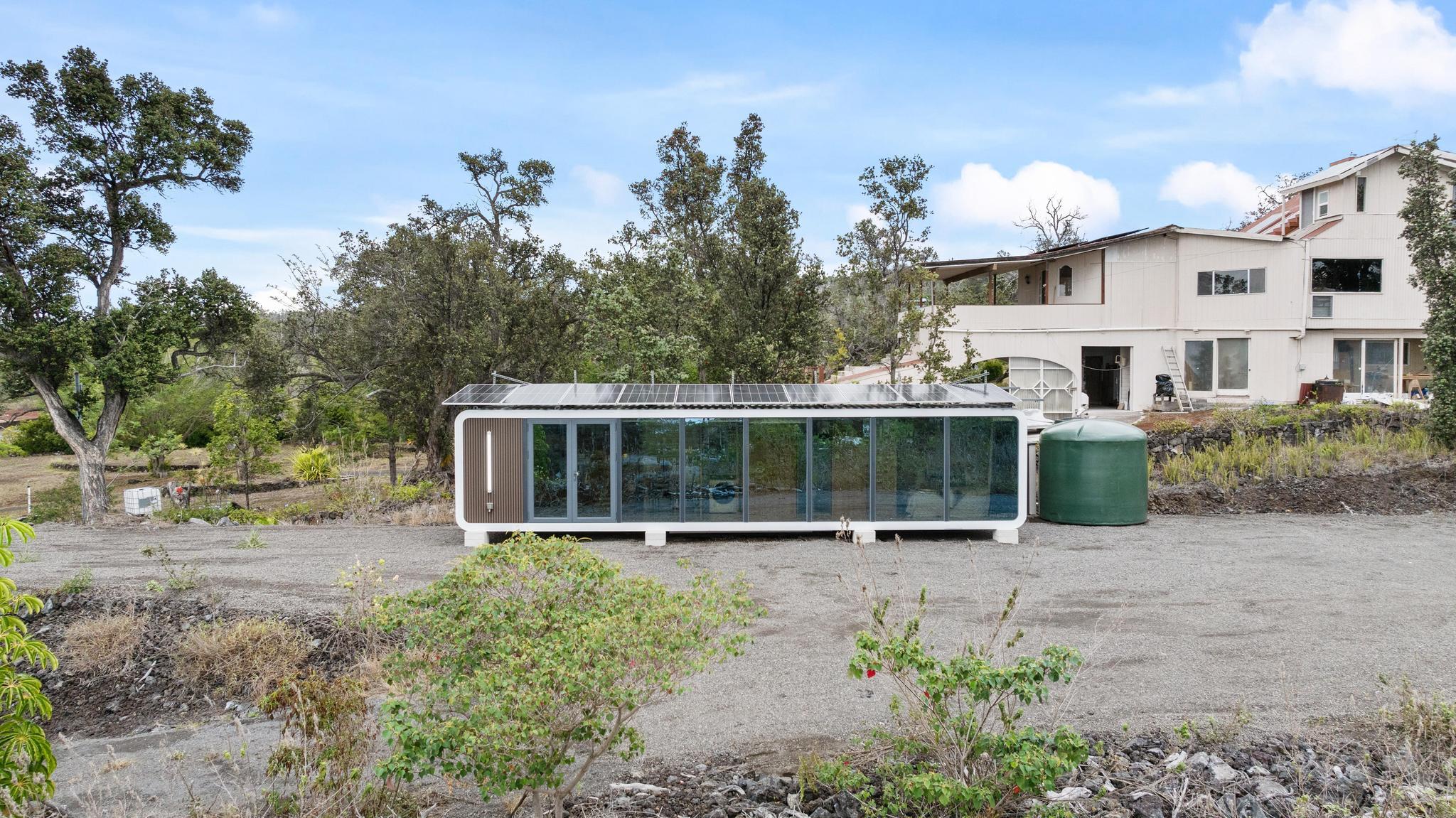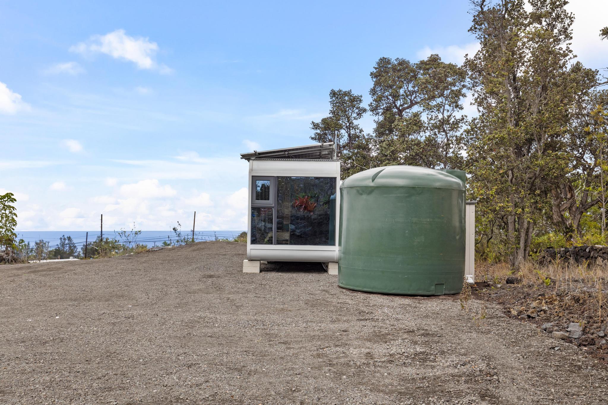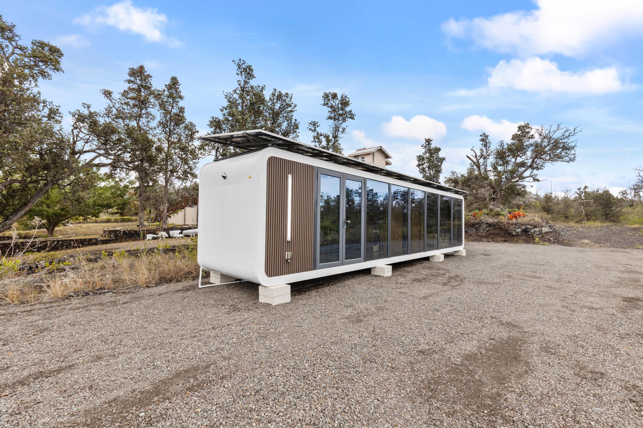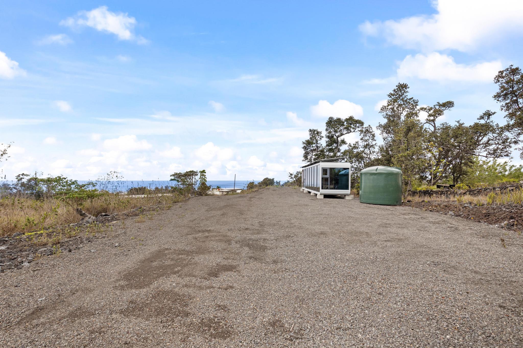 Live in 1 bedroom & 1 Bathroom at this "King of the Hill" -- Vacant LOT with OCEAN VIEWS GALORE!! Build your dream home with views of ocean and coastline while living in modular modern home! This 1 acre vacant lot is located close to town. Graded and ready to build! You can live on site, includes an amazing modern modular home. Home has laminate flooring, modern design wall panels, kitchen, washer & dryer, split air condition system, gorgeous bathroom & separate bedroom w/ strategic space. MUST SEE !!! Contemporary home has huge windows for viewing ocean. Close to Ocean View Town Center, shopping areas and restaurant! View to see the potential!