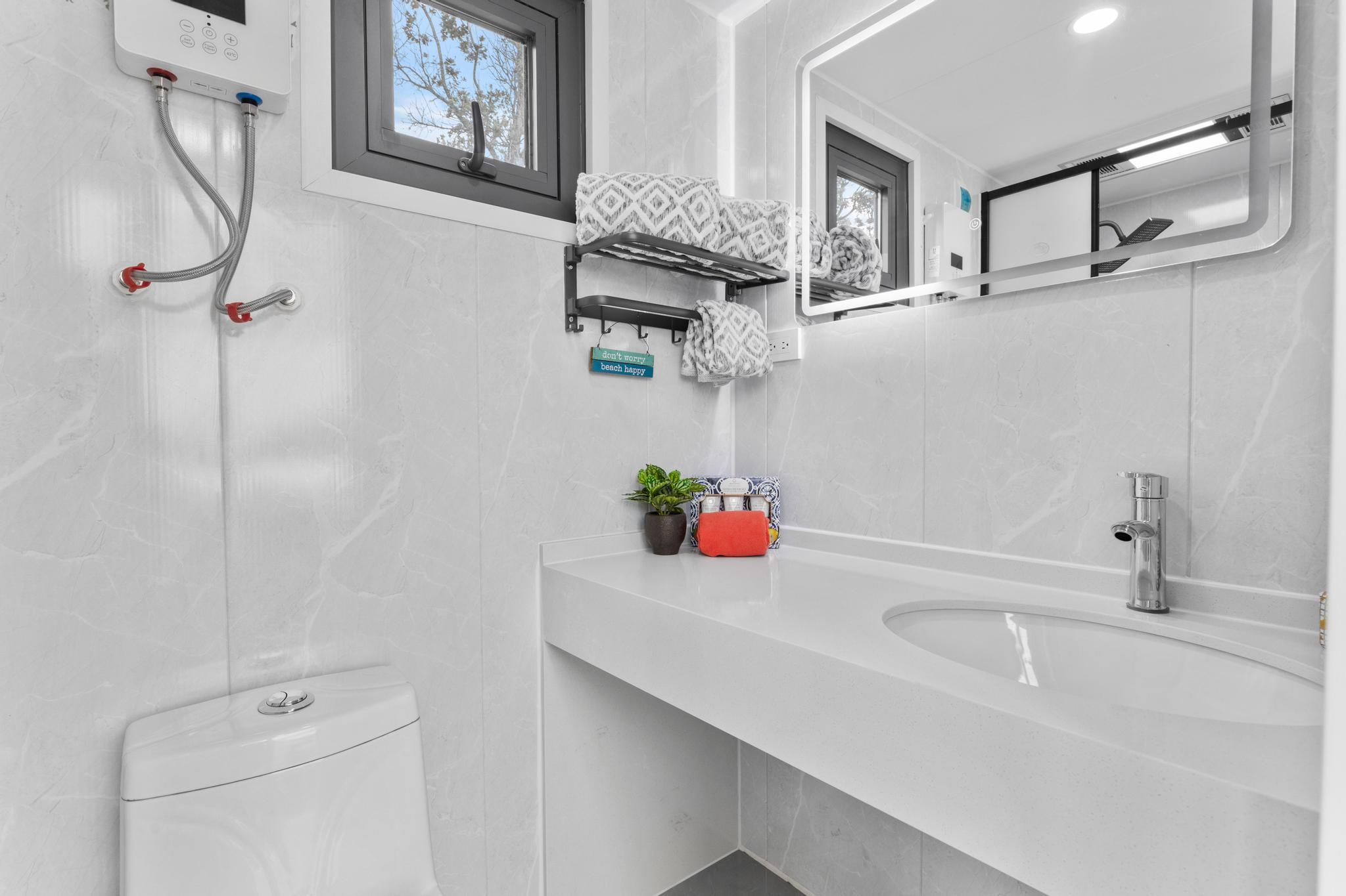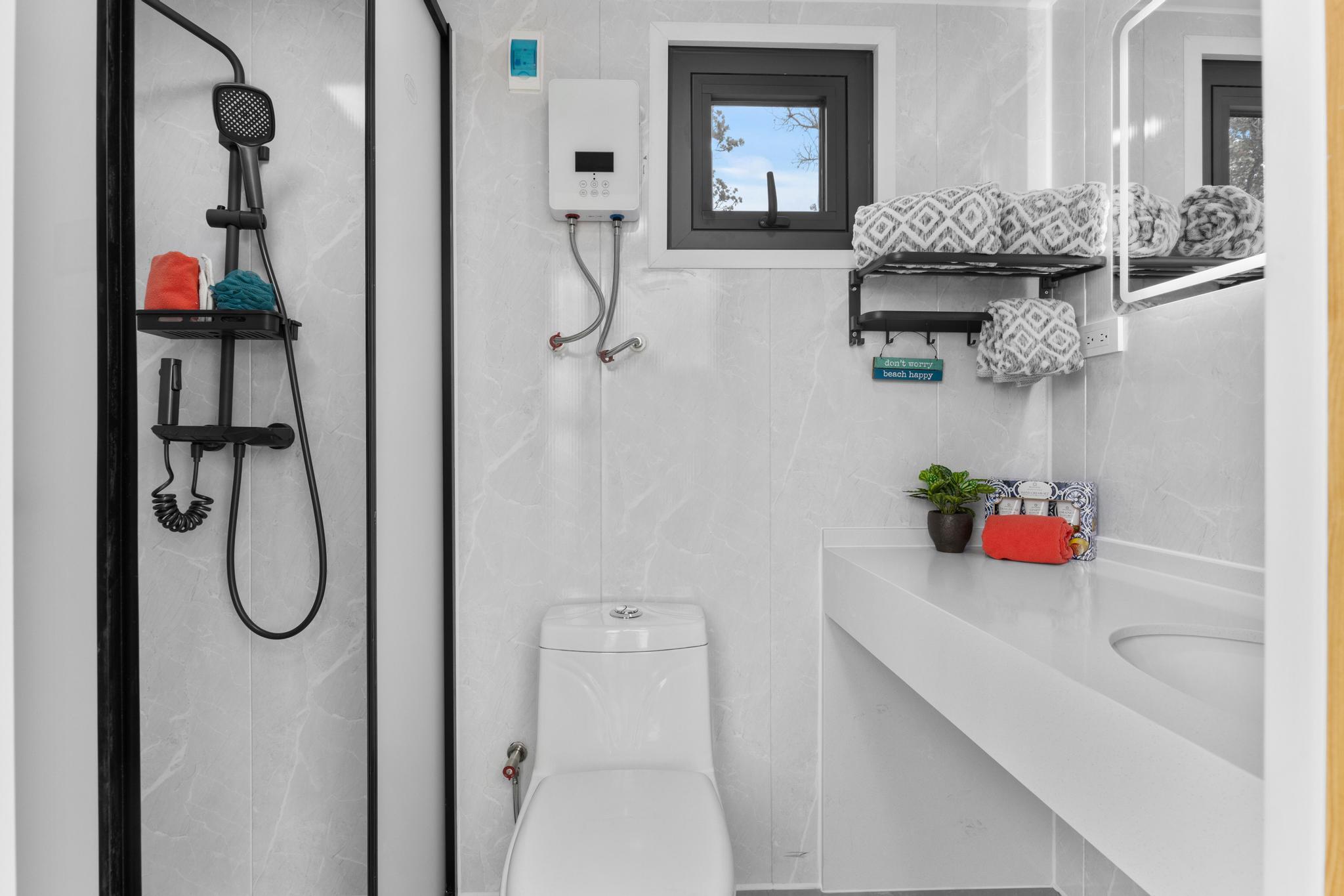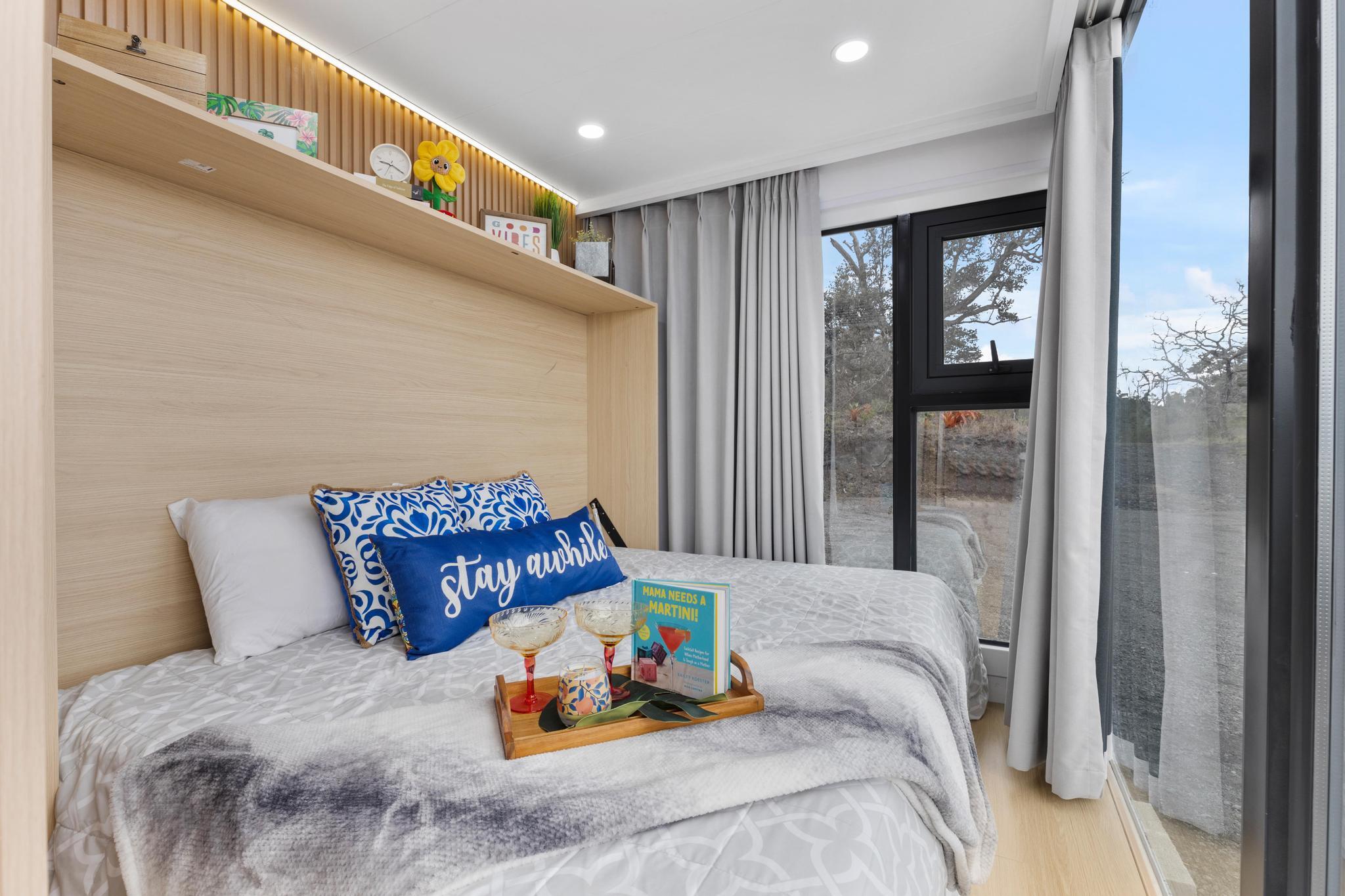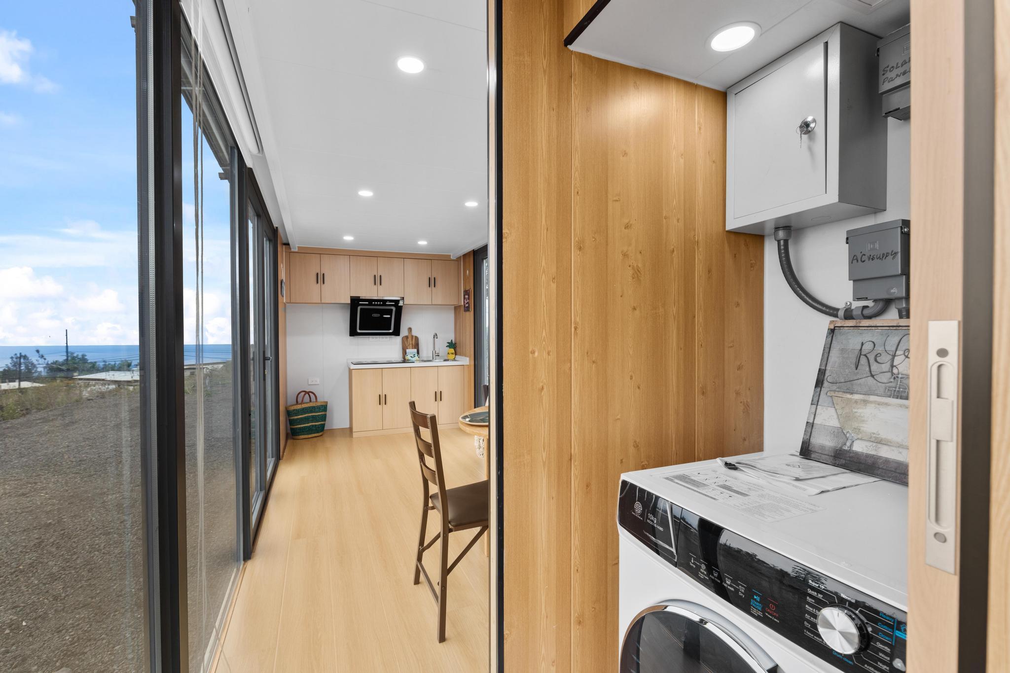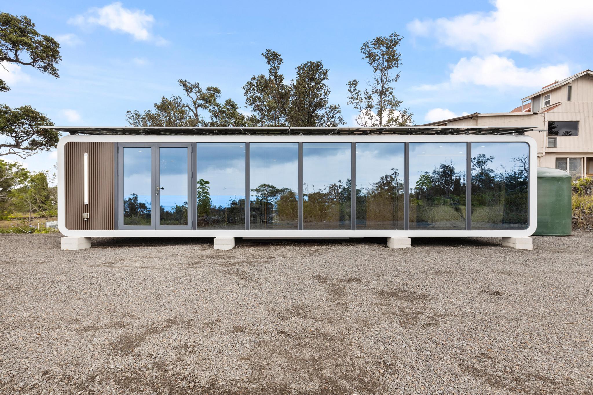 Live in 1 bedroom & 1 Bathroom at this "King of the Hill" -- Vacant LOT with OCEAN VIEWS GALORE!! Build your dream home with views of ocean and coastline while living in modular modern home! This 1 acre vacant lot is located close to town. Graded and ready to build! You can live on site, includes an amazing modern modular home. Home has laminate flooring, modern design wall panels, kitchen, washer & dryer, split air condition system, gorgeous bathroom & separate bedroom w/ strategic space. MUST SEE !!! Contemporary home has huge windows for viewing ocean. Close to Ocean View Town Center, shopping areas and restaurant! View to see the potential!