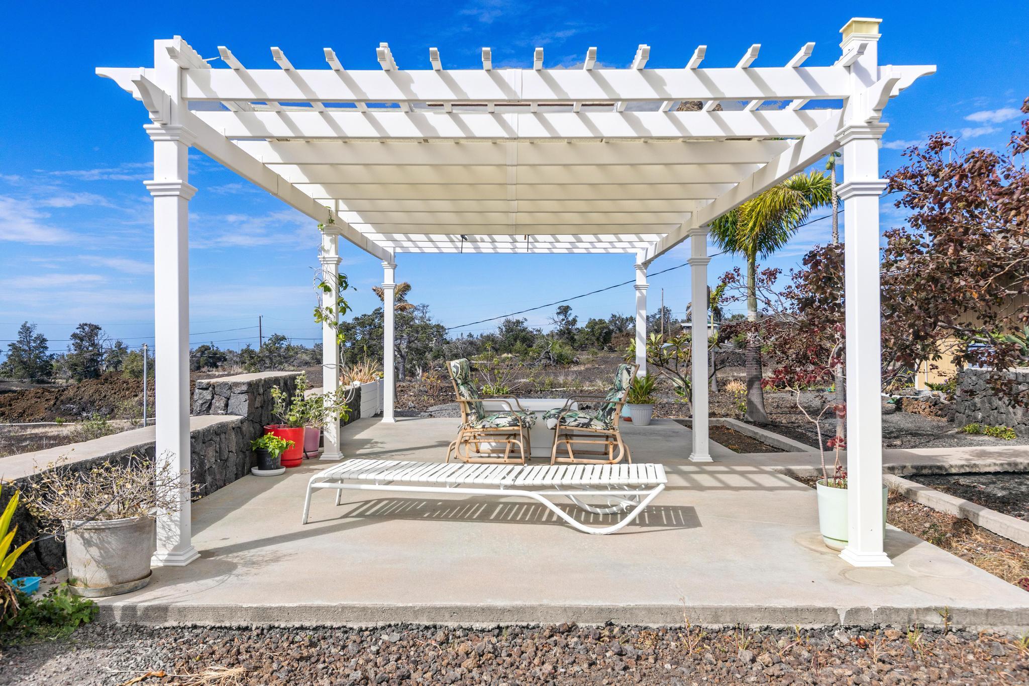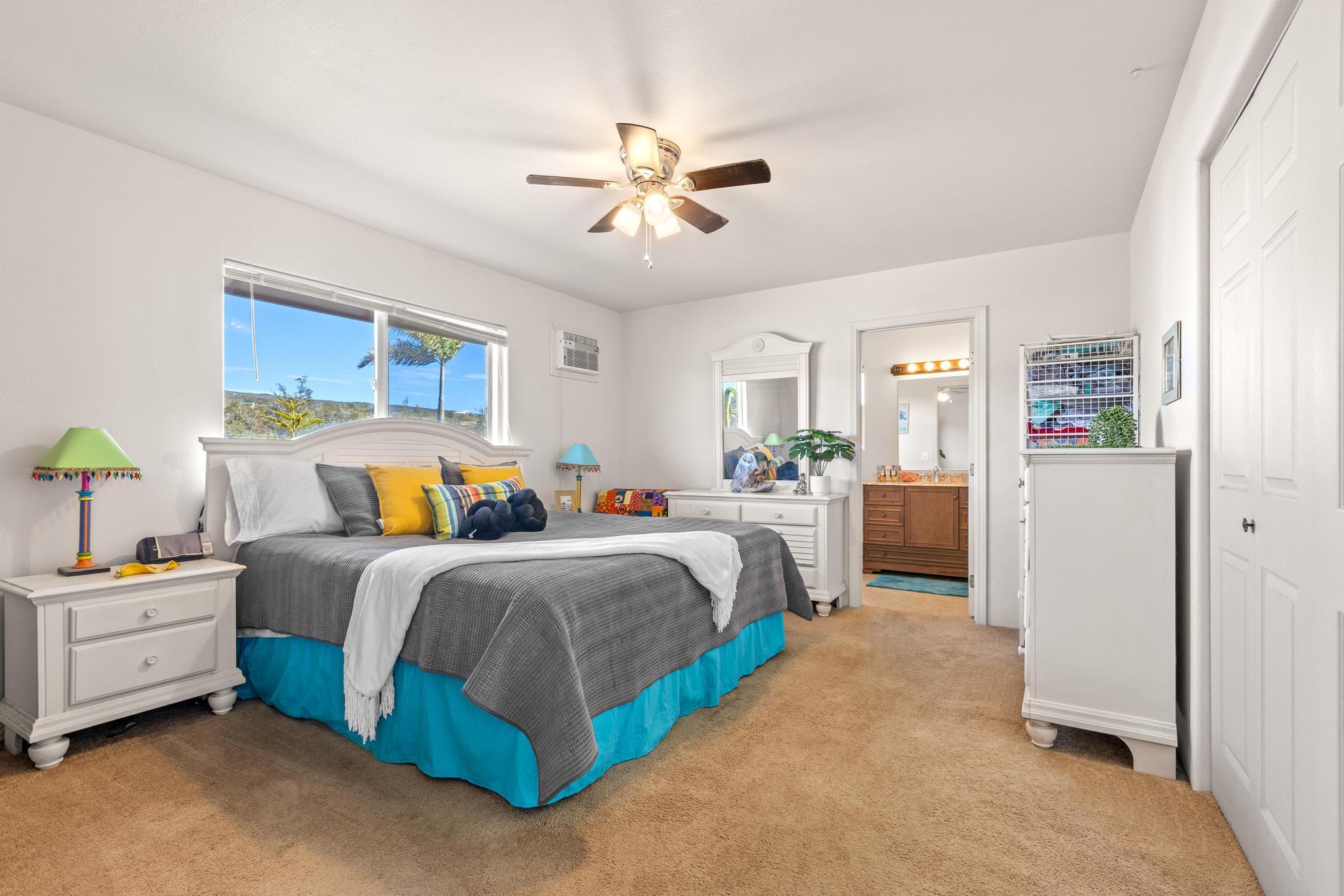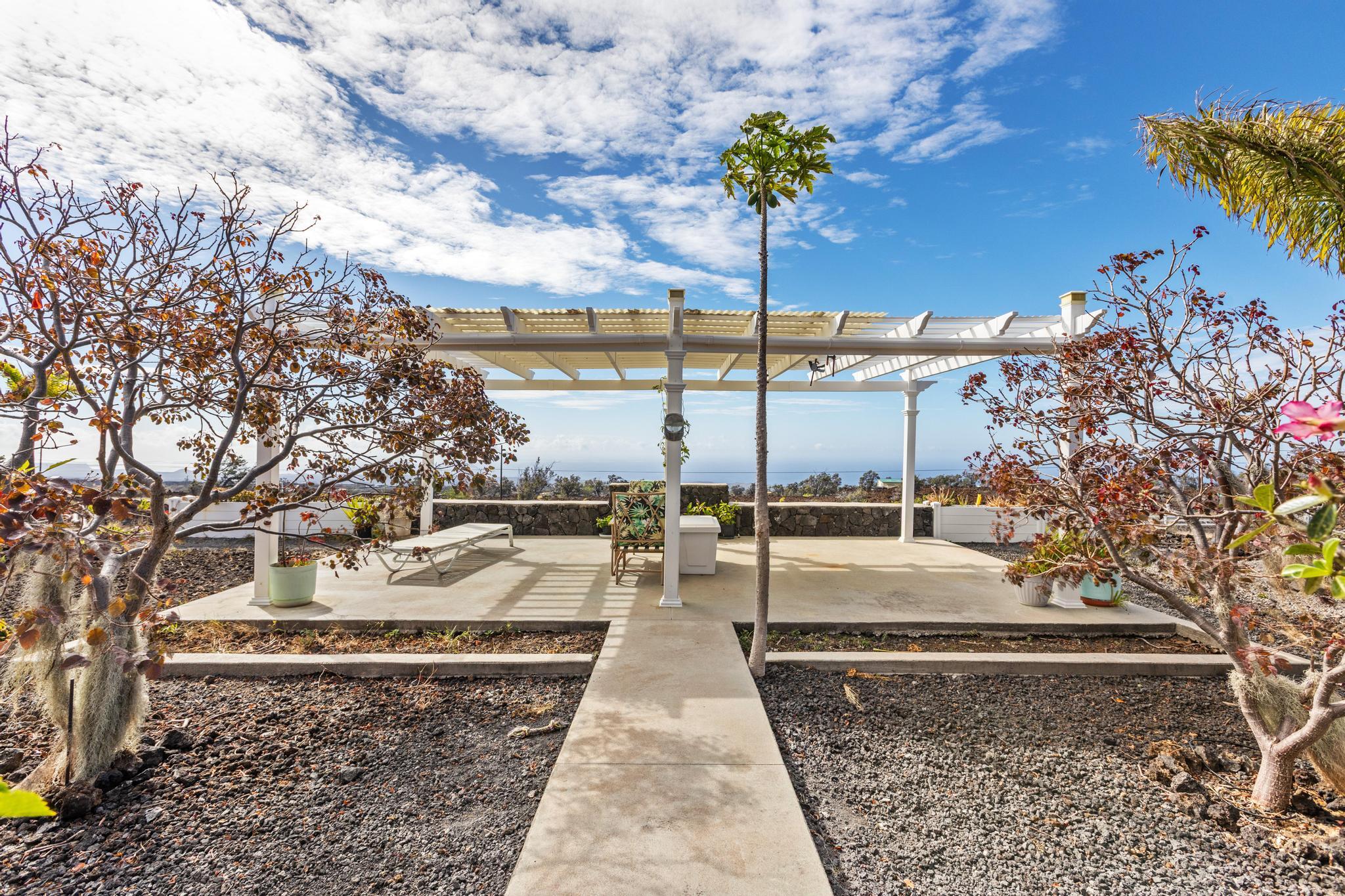Unbelievable OCEAN VIEWS of coastline! Home is 3 acres and "King of the Hill" where you enjoy sunsets, cocktails and bbq with family and friends. Make this your get away home, second-vacation home or primary home! Open concept home with 3 bedroom and 2 bathroom. Part of the garage has been converted into an enclosed room with a closet -- use as a hobby room or extra spare bedroom. Has new stove, dishwasher, washer and dryer. Installed new irrigation system. Enjoy the affordable and country life to start your island living in Hawaii! Owner built an unpermitted HUGE storage for $30,000 -- use for parking, park your boat or work man shop. Also a green house for sustainable living! Ocean View Community is becoming to be an established burgeoning community! It has food market, ACE Hardware and food venues for this growing community.