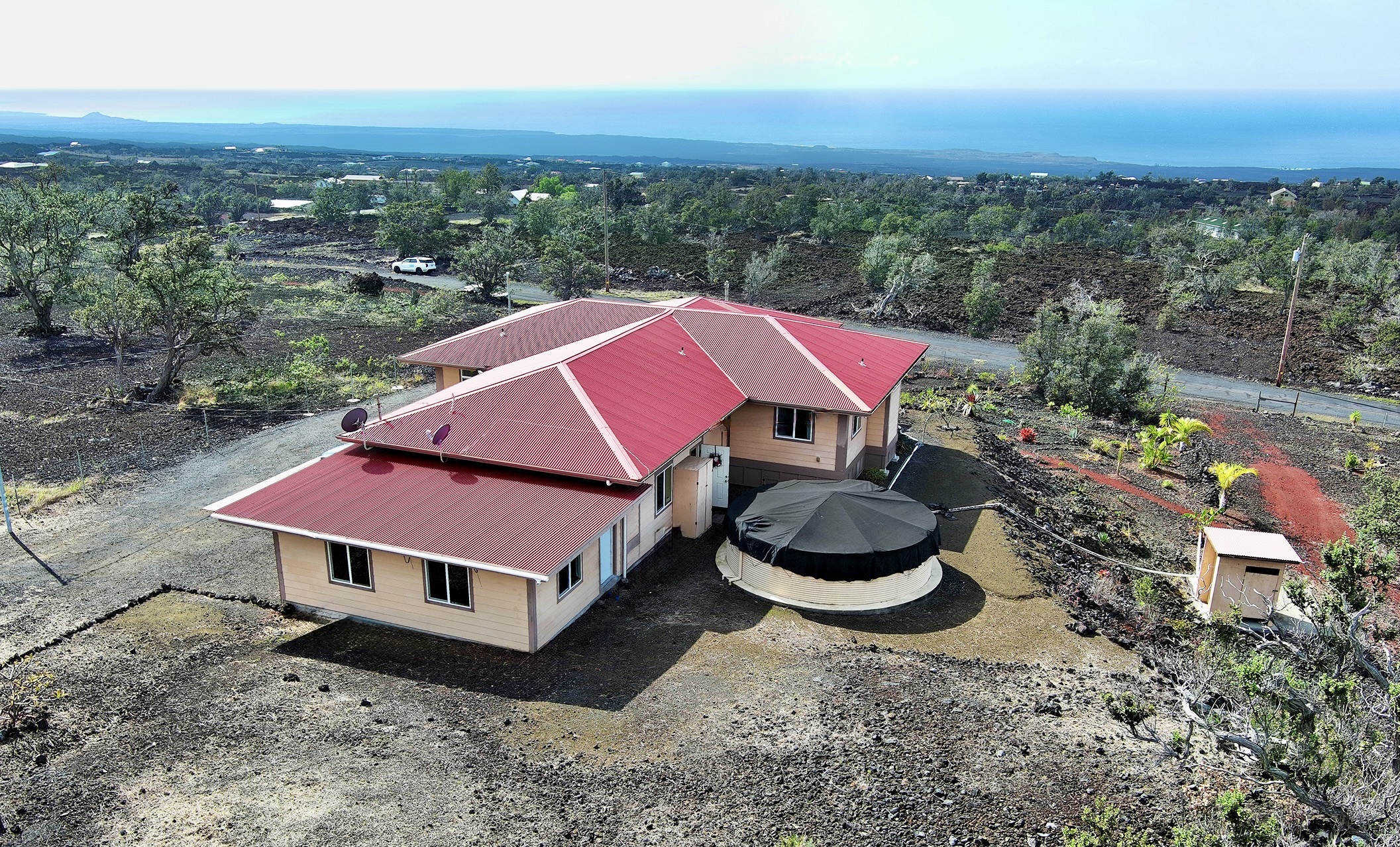 ~ Conveniently located near grocery stores, gas, restaurants, & other essentials & just about an hour and 15 minutes from Kona – this property offers the best of privacy, space, & accessibility.