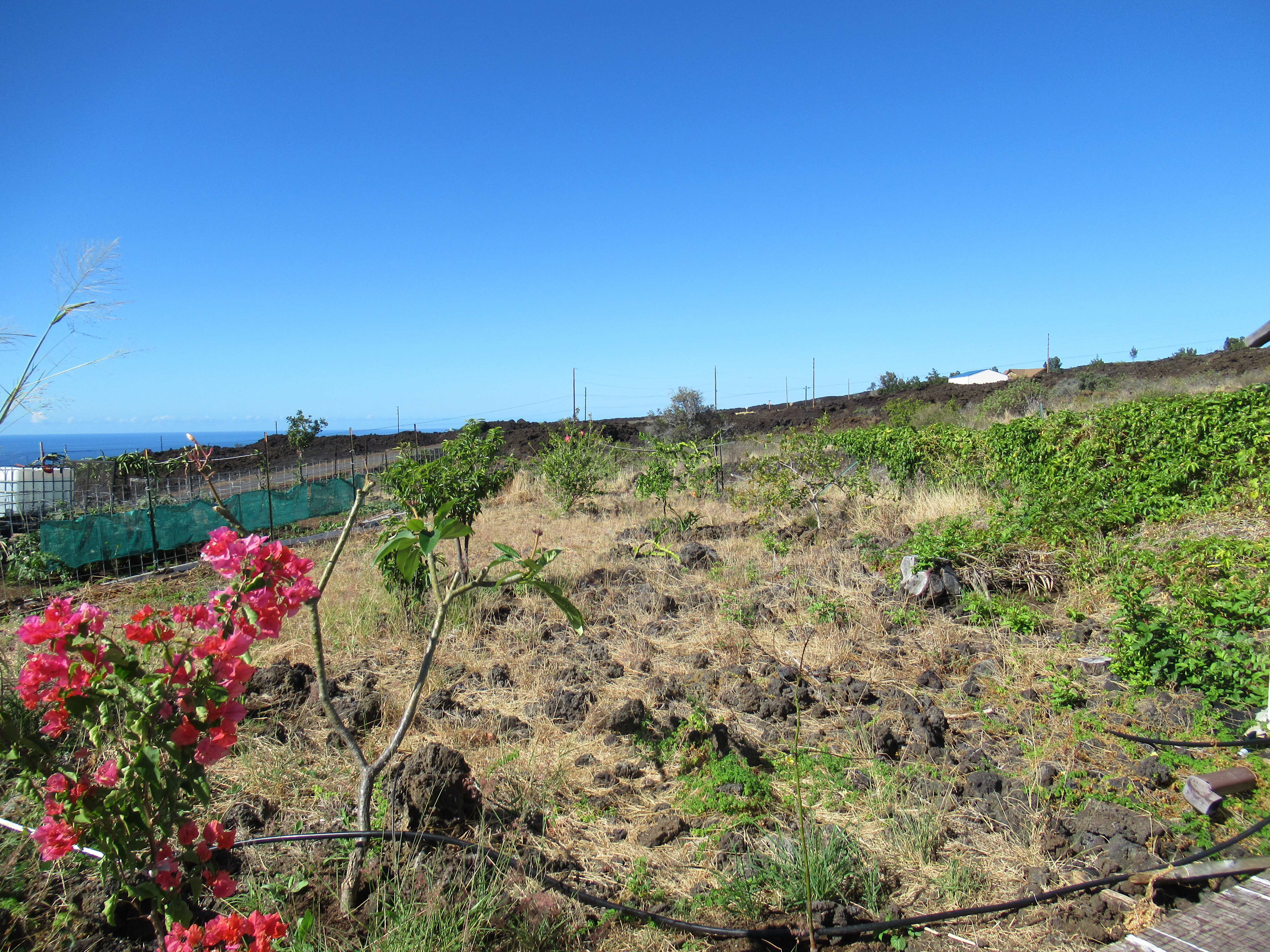 Exceptional property ! Near the bottom of Ranchos. 3 wide acres, completely dozed. 2 story home. Downstairs is open with a kitchen, laundry, bath and sitting area. Upstairs are 2 generous bedrooms and bath with a Lanai. spectacular views of the Ka'u coast all the way to South Point. Uses Propane for on demand water heater & the stove/range. Solar power and generator complete the power. This is a Gardener's Dream. Extensive mulching. Fruit trees include Mandarin Orange, Mango, Papaya, Soursap and Citrus. The main garden area is fenced. A plethora of Herbs , tomatoes, peppers Lilikoi and more. Irrigation is supplied by approx 350 gallon water cubes. Structure is not permitted. This is a really must see!! Wonderful living on the leeward coast of the Big Island of Hawaii.