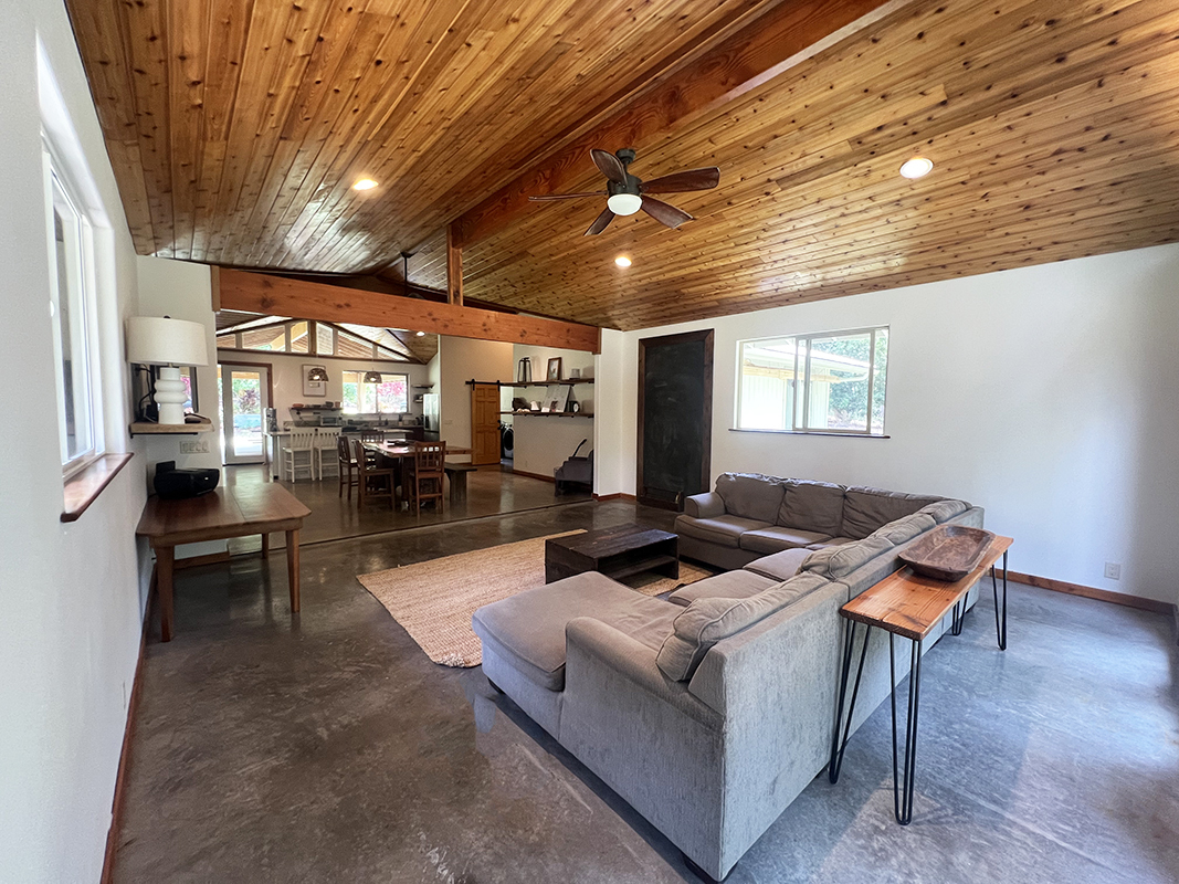 Custom Home, Built with Love and Nestled in on Five Lush Acres. Offered Turn-Key Furnished! Tucked away in a peaceful Hawaiian forest, this well-maintained 4-bedroom, 2-bathroom home sits on five acres, blending privacy with natural beauty. One acre of the property consists of thriving macadamia nut trees, and a variety of fruit trees. Fruit and Citrus Trees Include: ~Mango ~Avocado ~Lime ~Finger Lime ~Lemon ~Orange ~Tangerine ~Starfruit ~Banana ~Lychee ~Lilikoi Inside, the open-concept design allows natural light to fill the living spaces, showcasing the stunning surroundings. The spacious kitchen is both functional and stylish, while the living and dining areas provide a welcoming space for both relaxing and entertaining. The master suite is a true retreat, featuring a large soaking tub, a walk-in shower, and a walk-in closet – offering a perfect balance of comfort and convenience. It’s a peaceful spot to unwind after a busy day. Outside, the property offers plenty of room to roam, garden, or simply enjoy the tranquil tropical setting. A small workshop/shed provides extra storage or space for hobbies and projects. The home is equipped with a 20,000-gallon water tank, ensuring a reliable supply of water. Located just 5 miles from the town of Na'alehu where you will find an Ace Hardware, Local Credit Union, Post Office, numerous coffee shops, and the world renowned Punalu'u Bakery. Just a short distance from South Point and the famous Green Sand Beach. Whether you’re looking for a year-round home or a serene retreat, this property offers a perfect combination of Modern Living and the Natural Beauty of Hawaii.