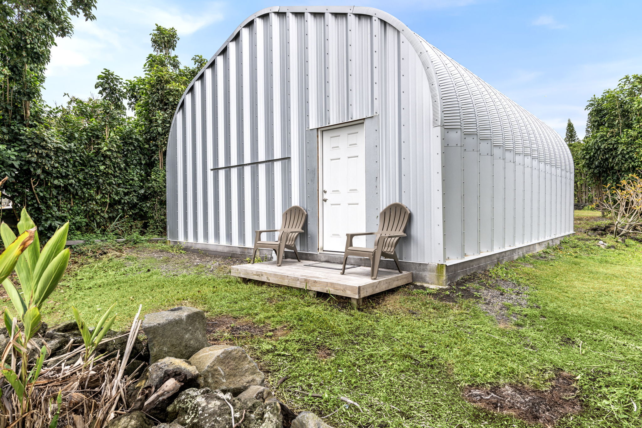 Price includes adjacent side lot TMK 3-9-4-6-44 (total of .9182 acre/40,000 sq. ft.) with a 775 sq. ft. shop on a concrete pad, installed in 2024/2025. It includes a workbench, room for a vehicle and more.