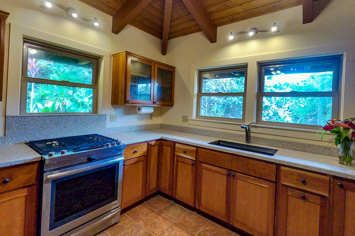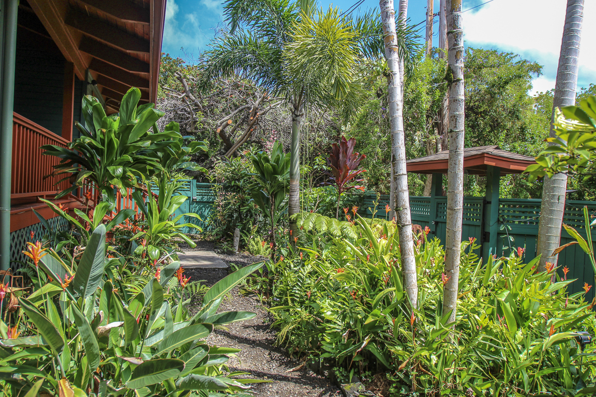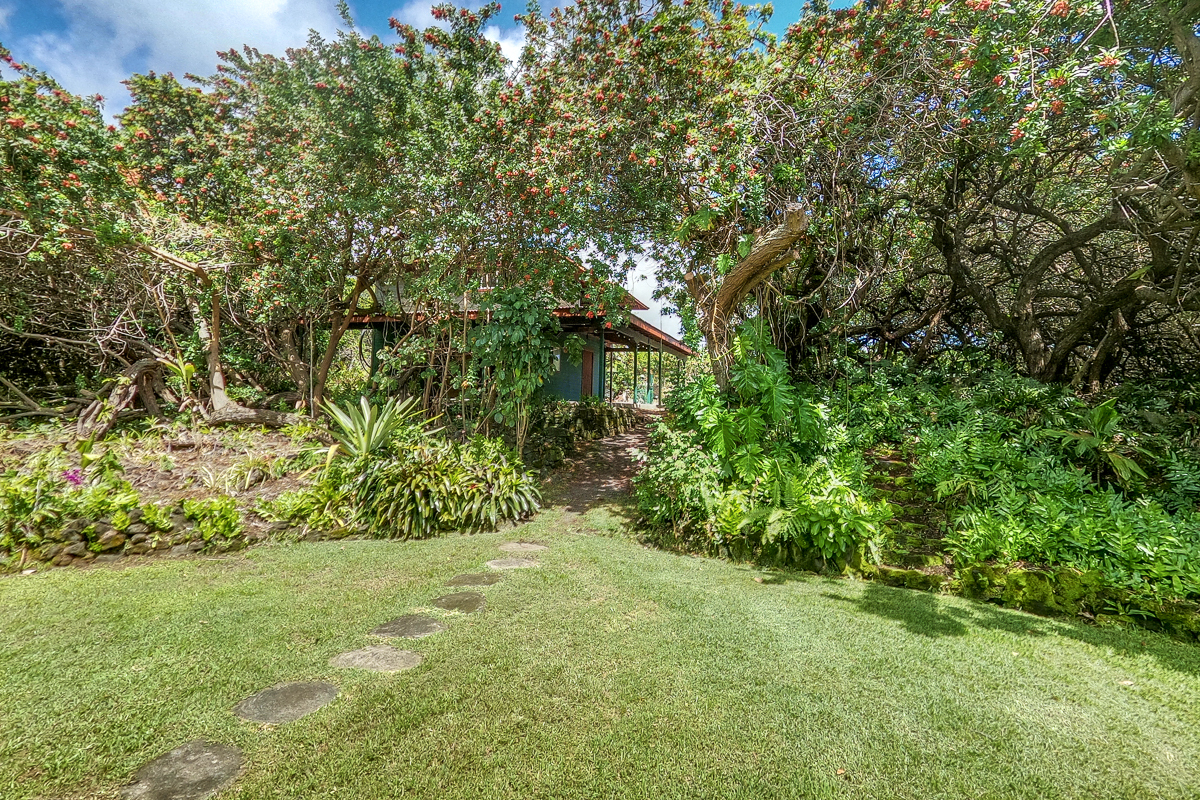 - Fruit trees including avocado, mango, citrus, coffee, plus dragon fruit, vanilla vine & native Alate'e trees & Lauae ferns.