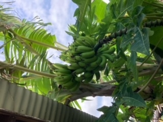 * Fruit trees - banana, papaya and pineapple plants, also flowering plants