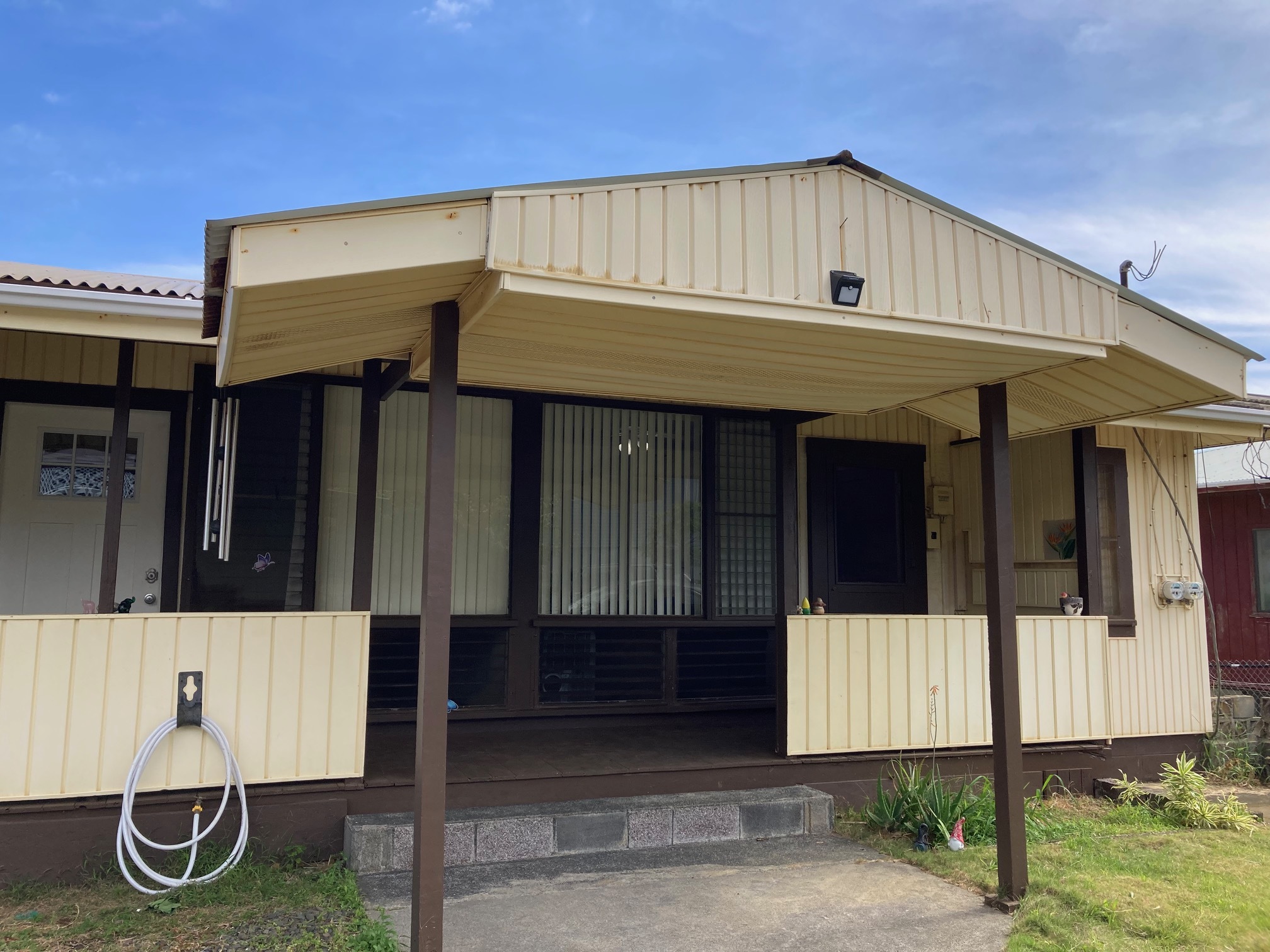 Na'alehu town - In a popular neighborhood in the former plantation town of Na'alehu, this home has been restored to a duplex with two separate entrances, along with two bedrooms and one bath in each unit. Current owner has done many upgrades and repairs. Live in one and rent the other or rent both sides. Currently there is a tenant in the second unit on a month to month basis. Check out these great features!