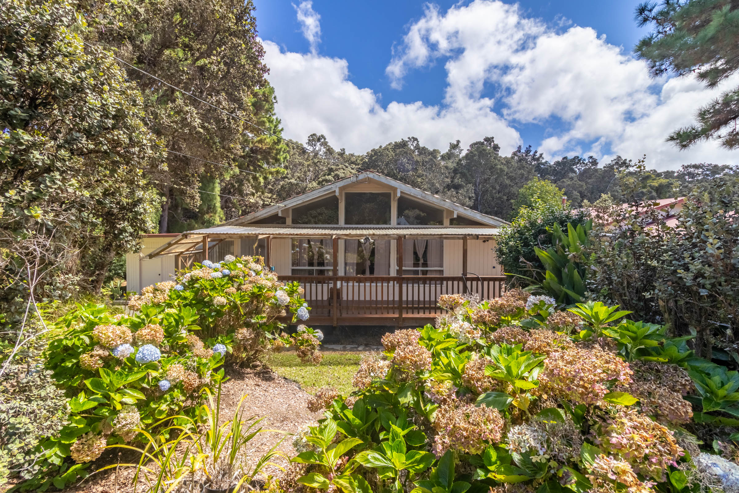 Enjoy life on the "sunny side" of Volcano. Hawaii Volcanoes National Park is just across the highway for endless hiking & viewing pleasure. Kilauea Military Camp, serving Starbucks coffee at the Java Cafe completes your stroll to the Post Office. Lava Lounge is there for your enjoyment with live entertainment, breakfast - lunch & dinner next door. Also bowling with garden burgers and beer. Plenty of fun just a stroll or bicycle ride away. Smooth paved / wide county maintained roads and friendly neighbors exhibit pride of ownership.