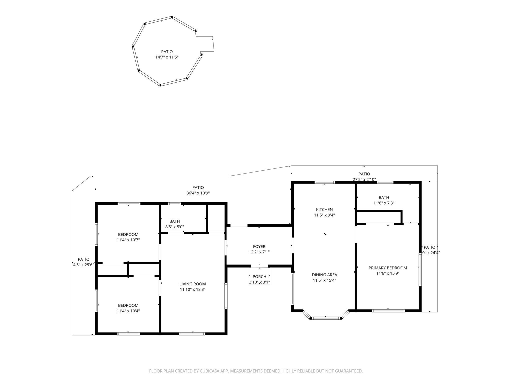 Across the foyer is a cozy living room, flanked by two additional bedrooms and a second full bath–ideal for guests, family, or flexible use.