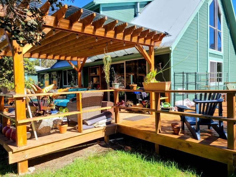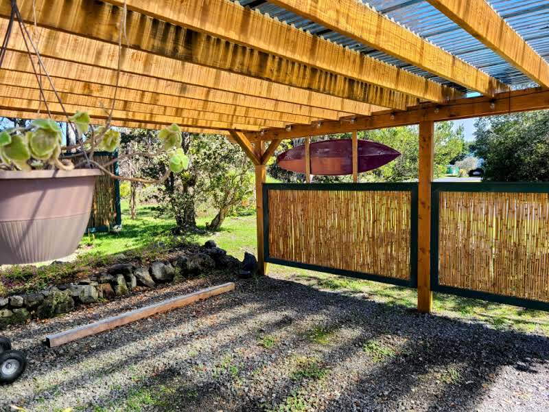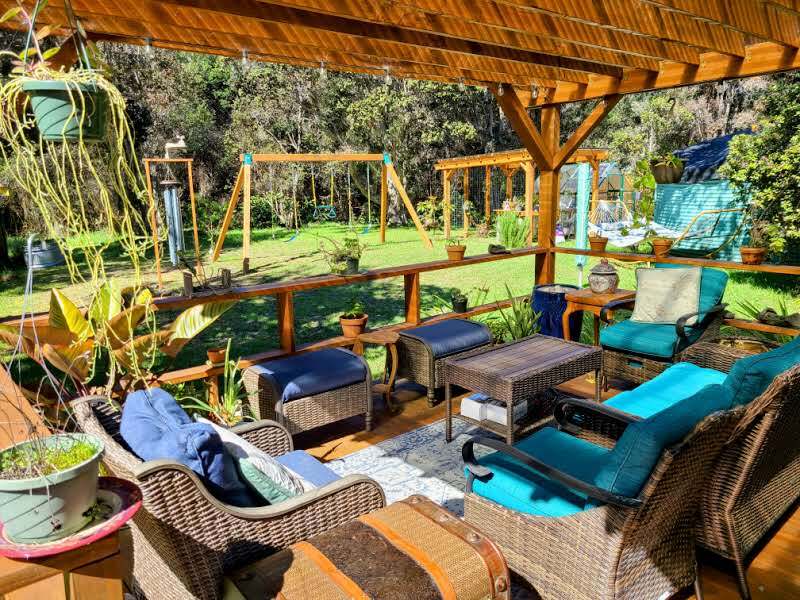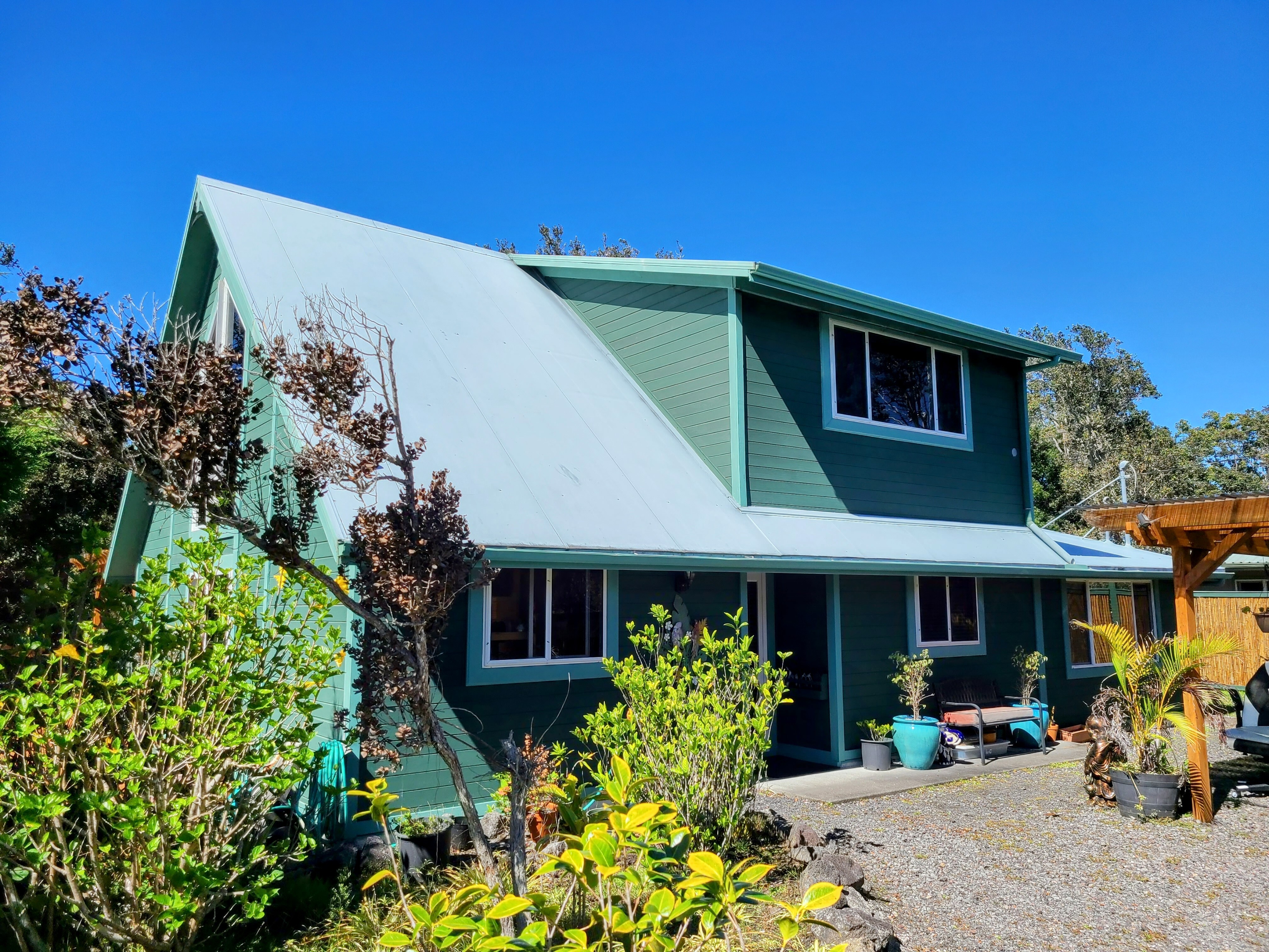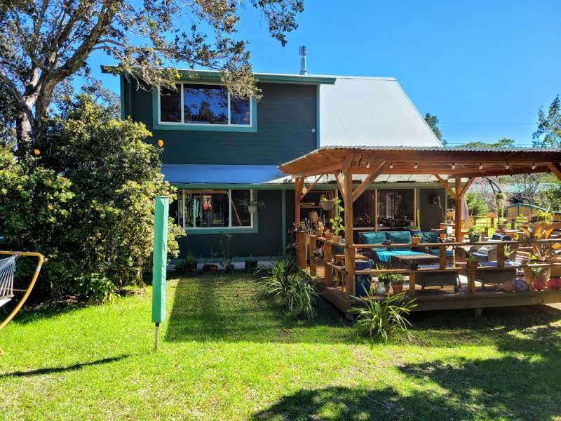 Tucked into the serene Volcano Golf Course community on the dry side of Volcano, this home offers a perfect blend of comfort, style, and island living. Inside, it’s bright, clean, and well maintained, featuring warm tongue-and-groove pine throughout. The main living area boasts high ceilings and large glass windows that fill the space with natural light and create a strong connection to the lush outdoors. The open kitchen, dining, and living areas flow seamlessly around a gas fireplace, making the space both functional and inviting year-round. The home has three bedrooms plus additional flex space that works perfectly as an office or extra bedroom, along with an upstairs loft that adds versatility for work, hobbies, or relaxation. Step outside to a backyard that’s both peaceful and usable–fully landscaped with mature trees and tropical plantings, yet open enough for children or pets to play freely. Enjoy a 256 sq ft back patio, 344 sq ft side deck, a 9x10 gazebo, greenhouse, storage shed, and a carport. Recent upgrades include exterior and roof paint, expanded living areas, and additional covered and open lanai space, enhancing both function and curb appeal. Volcano Village is just minutes away, offering local restaurants, cafes, art galleries, a winery, farmers markets, plus a bowling alley and recreation center for year-round fun. You’re also just minutes from Hawai?i Volcanoes National Park, with hiking trails, lava tubes, and breathtaking scenery. Kea?au and Hilo are under 30 miles for shopping, services, and airport access. Lava zone 3 and flood zone X.