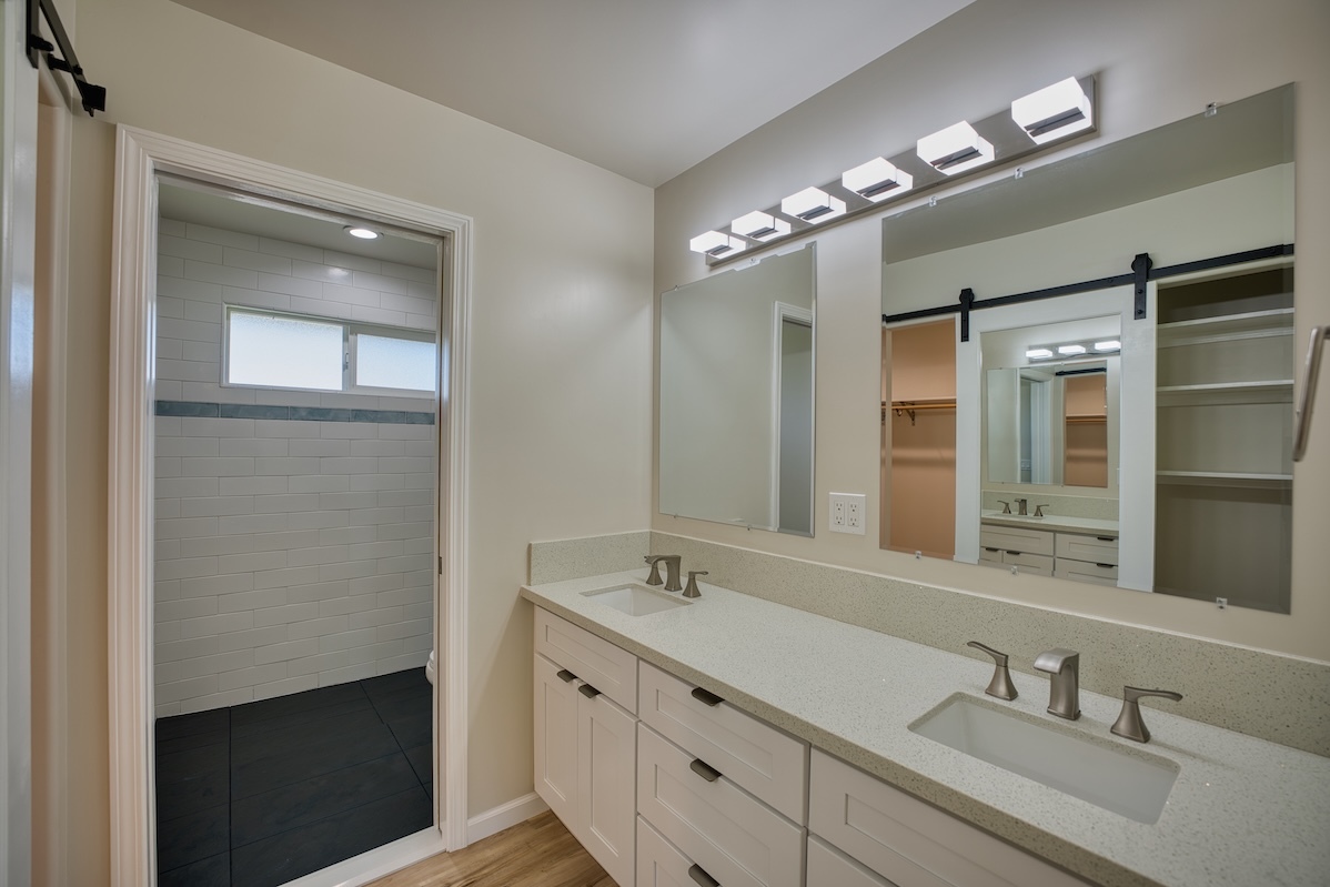 Retreat to the private primary suite with sound-insulated interior walls, a linen closet, walk-in closet, and ensuite bath complete with a walk-in shower, double vanity, and full-length mirror.