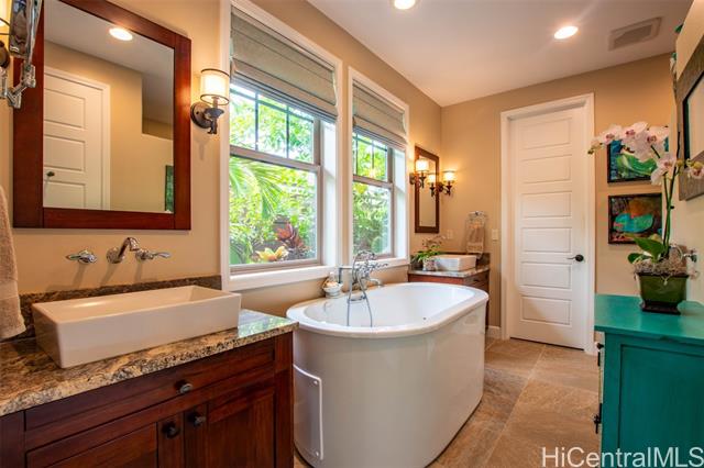 This well maintained Kona home features inviting indoor-outdoor living, with lanai and bedroom floors fully tiled. The wrap around yard boasts a lush tropical garden setting with low maintenance artificial grass, and lovely sunrise views. This Chef's kitchen is enhanced by quartzite natural stone countertops and Crystile Wave backsplash walls. The upgraded Daikin 4-ton air conditioning system adds to the home’s overall comfort. Located in a desirable gated community near Keauhou Bay and Kailua-Kona amenities. This property offers privacy, convenience, and easy access to the coast, golf, pickleball, tennis, shopping, dining and the Outrigger hotel with Duke's Restaurant coming soon. Enjoy a relaxed island lifestyle in a comfortable and thoughtfully improved home. All comments, data is provided by seller or seller's representatives. Buyer to confirm all & hold all parties harmless from any discrepancy data in the mls and advertising. Limited Service–Data Entry Addendum signed by seller/s must be signed by buyer/s with Purchase Contract.