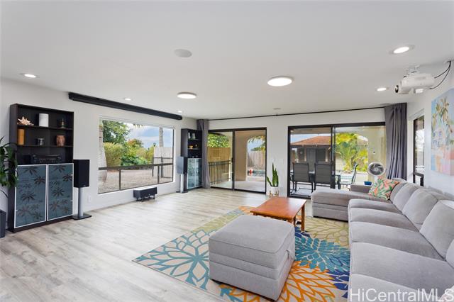 Offered on USA Homebids! Discover your private tropical oasis in the desirable Kona Acres community—an exceptional one-acre retreat with a main residence, pool house, and detached hosted vacation rental surrounded by lush landscaping and ocean views. The main home features 4/3 with new vinyl plank flooring, fresh paint, and upgraded recessed lighting. The spacious kitchen includes a reverse osmosis system, new refrigerator, and an open layout with pool views and ocean breezes. The living area highlights a home theatre with automated projector, retractable screen, and surround sound, perfect for entertaining. The primary suite offers a walk-in closet, ensuite bath, and private lanai, with two additional bedrooms down the hall. Enjoy a solar-heated pool surrounded by tropical greenery, papaya, loquat, white pineapple, and avocado trees. The pool house includes a private bedroom and bathroom. A fully remodeled detached 2/1 home, currently operating as a hosted short-term vacation rental. Combining ocean views, outdoor living, and investment potential, this property offers the best of island living. Bidding closes: 3/15 @ 6pm. Buyer and agent to perform due diligence.