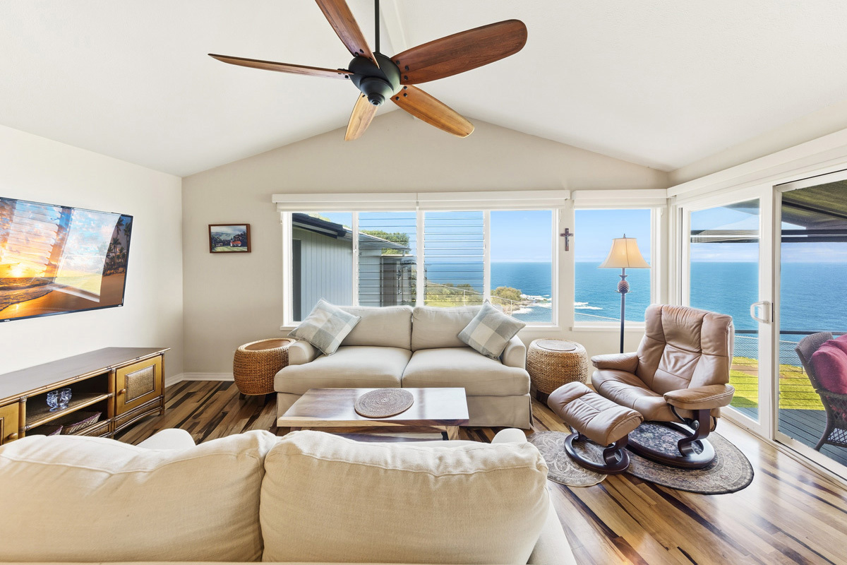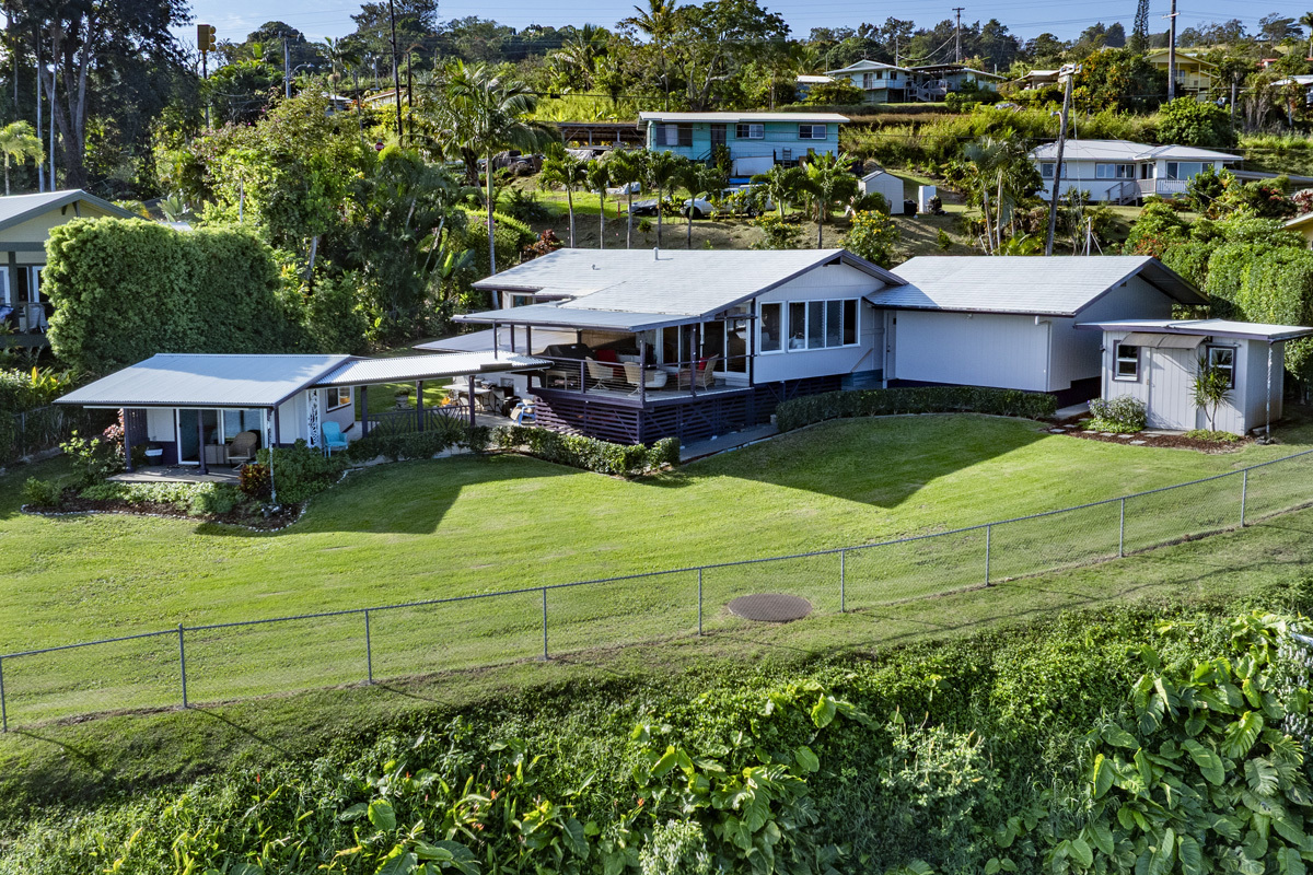 Welcome home to an open, unobstructed, panoramic view of the Pacific Ocean stretching endlessly to the horizon. Soaring above the coastline, imagine starting the day on one of your two covered lanais, with cool ocean breezes, and a serene view of Laupahoehoe point. A fully fenced, professionally landscaped yard, provides you absolute privacy, and a true feeling of have the cliffside view to yourself. The front of the home greets you with a custom rock wall and gated entry along the street, leading you to a Hicks Home that was completely remodeled in 2010, giving you the warmth of "Old Hawaii" blended with the custom upgrades of a modern luxury home. This home is being sold fully furnished, and completely turnkey. Just bring your suitcase, and start living your Big Island dream lifestyle now! Some of the upgrades from the 2010 remodel include: * Complete replacement of the electrical panel and wiring. * Complete replacement of the plumbing system with all copper piping used. * Conversion of the home from single wall to double wall. * Installation of an Aluminum Shingle roof with an expected lifespan of 50+ years. * Reconfiguration of kitchen layout. * Ironwood and imported Italian ceramic floors throughout the main home. * Replacement of all windows and doors. * Premium Trex Decking used for the lanai. The property has seen several recent updates, including: * Completely remodeled primary bathroom with tiled walk-in shower in 2014. * New refrigerator and hot water heater in 2025. * New gutters in 2025. * Tented in 2024. * Cesspool cleaned, inspected, and upgraded in 2025. * Custom bamboo cabinetry. * New metal roof on the cottage in 2020. * Custom window coverings. Located within close proximity to Fuel, the Post Office, Community Pool, and The Laupahoehoe Train Museum. The Papaaloa Store is less then two miles away, and Historic Laupahoehoe Beach Park is less then 3 miles away.