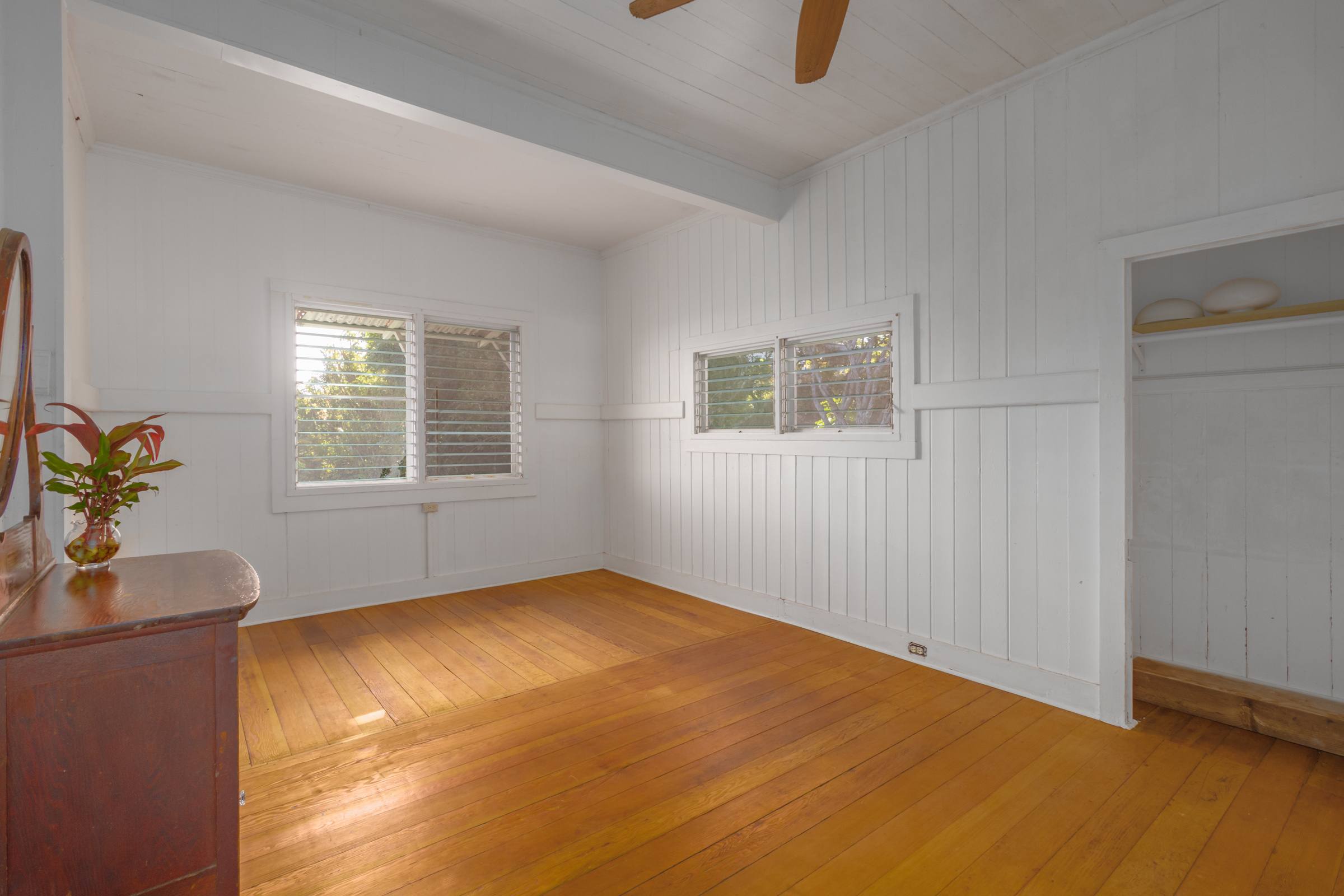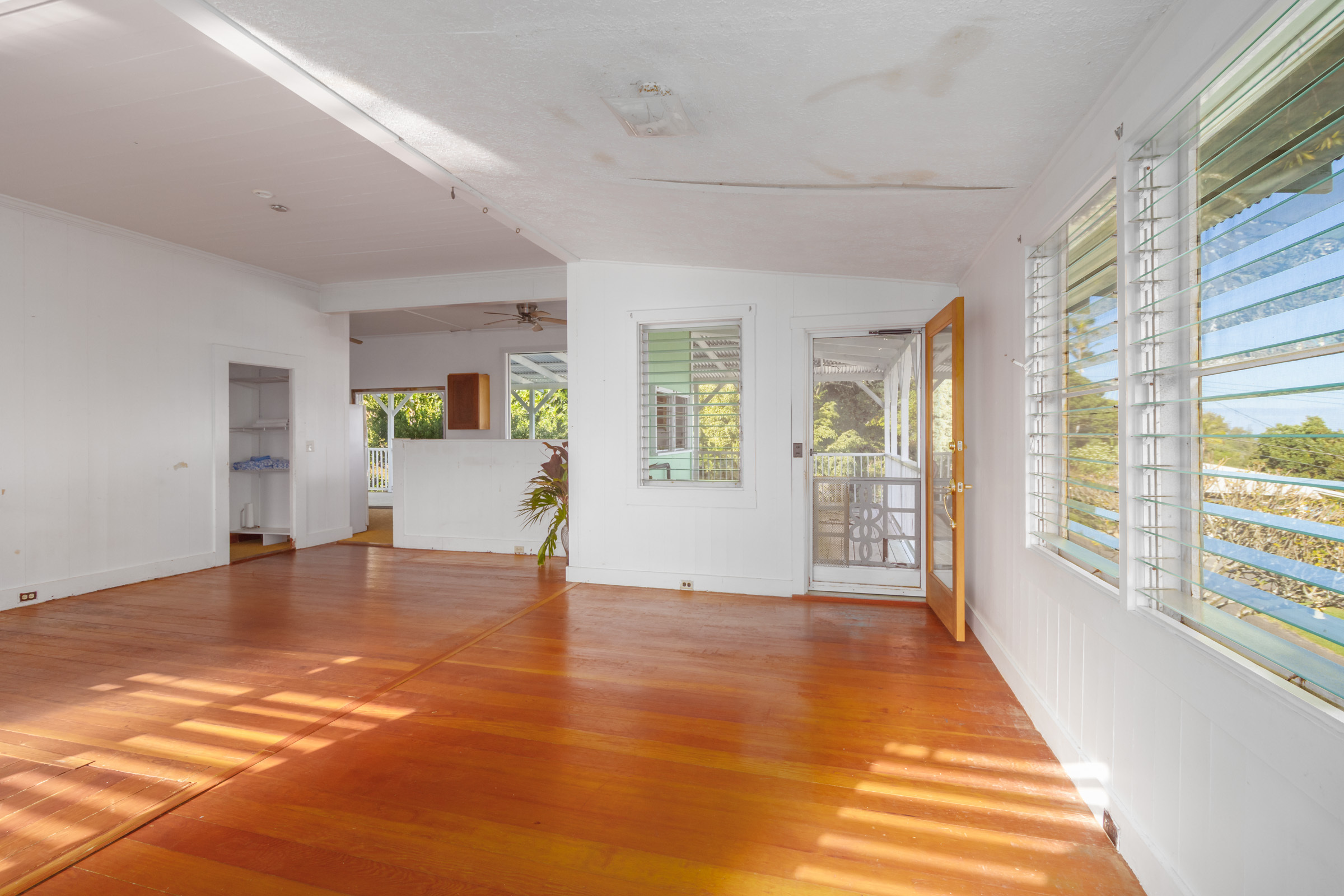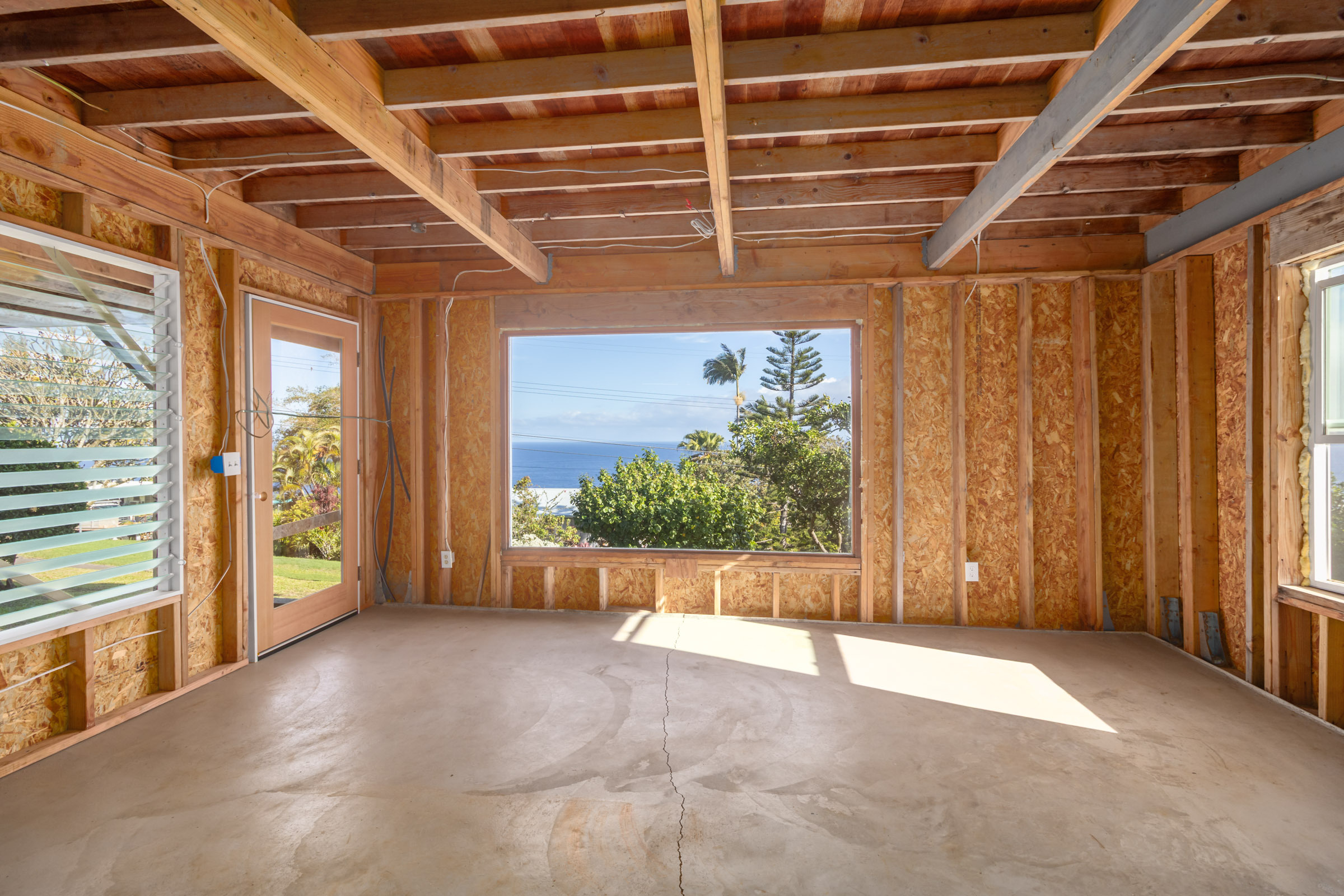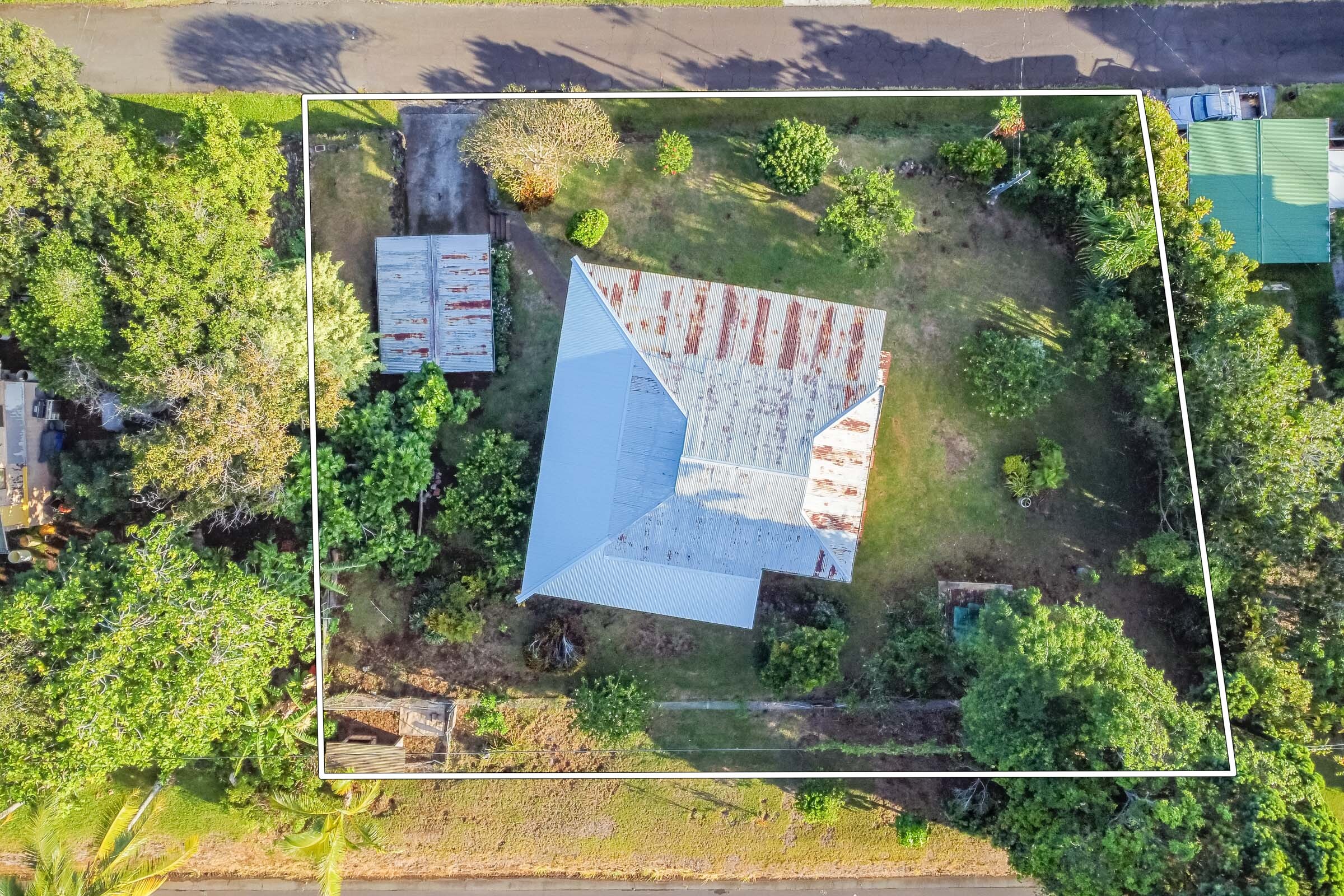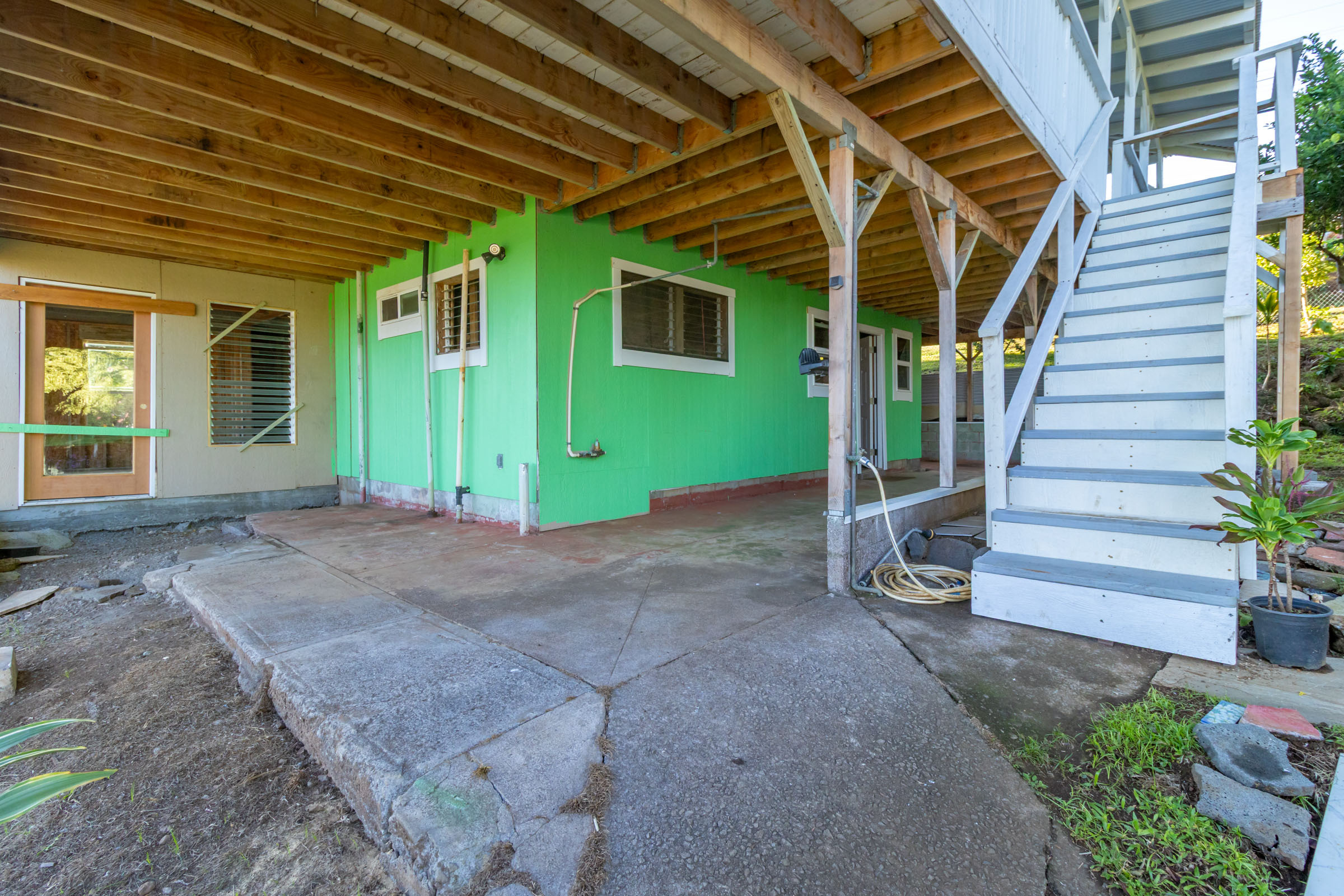 This classic Hawaiian plantation home overlooking Laupahoehoe Point provides sweeping ocean views above the Hamakua coastline. Relax on its expansive wraparound lanai and enjoy sunrise glow over the ocean, squalls move across the horizon creating rainbows, and whale watching. The house has undergone various renovations since it was moved onsite prior to 1960. The most recent raised the house two feet to full ceiling height on the lower level. Raising the house included removing and replacing the upper lanai, the interior and exterior stairways, and the lower-level walls which are now smart-sided 2x6 hurricane braced shear walls. Structural work on the lower level has been completed, leaving the interior to be finished to fit your lifestyle needs. County records reflect this home could host 4 bedrooms and 1.5 baths. The upper level has one bedroom, a full bath, and a spacious living/kitchen/dining area that opens onto the lanai for indoor-outdoor living. The lush yard has over 10 varieties of mature fruit trees including tangerine, ulu, Brazilian cherry, grapefruit, papaya, lemon, lilikoi and dragon fruit as well as avocados that fall from a neighboring tree. Enjoy native and exotic ornamentals such as plumeria, hau, hibiscus, ixora, ti plants, bromeliad, anthurium, and orchids with plenty of room for more. A 4-stall dog kennel sits in the SE corner of the backyard, and a covered carport fronts the street. Laupahoehoe is a small, vibrant community midway between Hilo and Waimea along Hwy. 19. It hosts a pre-k-12 school, public pool, library, playground, the Laupahoehoe Train Museum, Papa’aloa Country Store and Cafe with live music in the restaurant/bar, and Minit Stop gas station and convenience store. Laupahoehoe Point Beach Park is only minutes away.