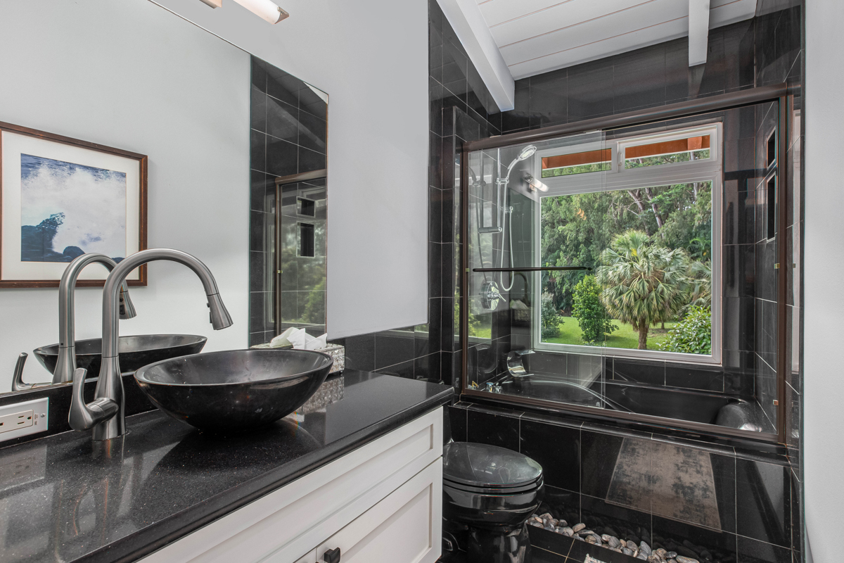The acreage includes mature lychee and longan, ~250 cacao trees, macadamia, citrus, avocado, mangosteen, and rambutan, along with over 40 palm varieties including 52 mature royal palms and lipstick palms. The grounds also feature hibiscus, orchids, heliconia, tea leaves, kukui nut, almond, and guava. The property is fully fenced with two separately gated entrances for residence and agricultural access, with a palm-lined driveway that extends to a cleared area of the property, offering a beautiful setting for future possibilities. Ten acres, along with equipment, can be leased to a local farmer. Home is fully furnished with luxury furnishings, including a Steinway-designed baby grand piano, and sold as-is. Homeowners are very focused on a quick sale, and price reflects this.